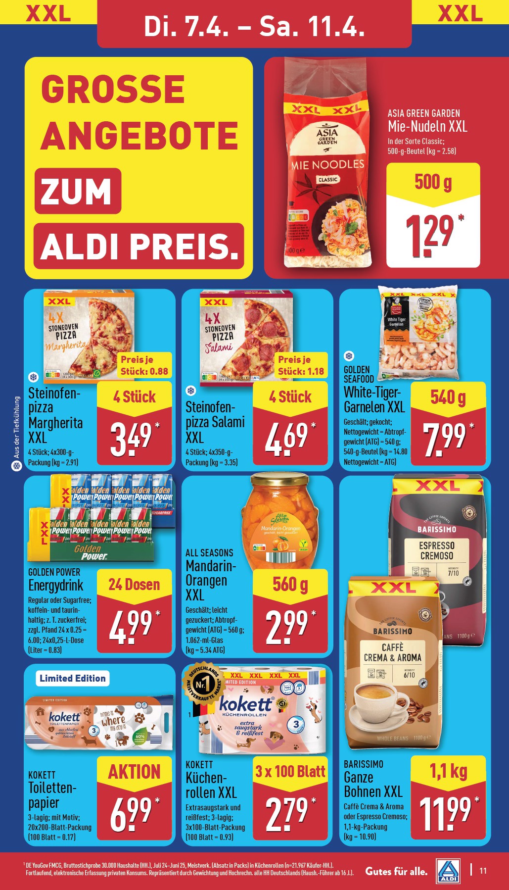 Ab dem 7. April bis zum 11. April lädt Aldi Nord wieder zu einer Spar-Offensive der Extraklasse ein. Unter dem Motto „XXL zum Aldi Preis“ finden Kunden zahlreiche Produkte in Großpackungen zu unschlagbar günstigen Preisen. Diese Woche ist die perfekte Gelegenheit, den Vorratsschrank aufzufüllen und dabei kräftig zu sparen. Die aktuellen Aldi angebote 07.04. – 11.04. 2026 Werbung umfassen eine breite Palette von Lebensmitteln, die ideal für den Großeinkauf sind. So gibt es beispielsweise den DIADEM Kristallzucker in der 2-kg-Packung für nur 1,59 Euro oder die beliebten Trader Joe’s Pistazien im 500-g-Beutel für 5,29 Euro. Diese Angebote sind nur für kurze Zeit verfügbar und solange der Vorrat reicht.