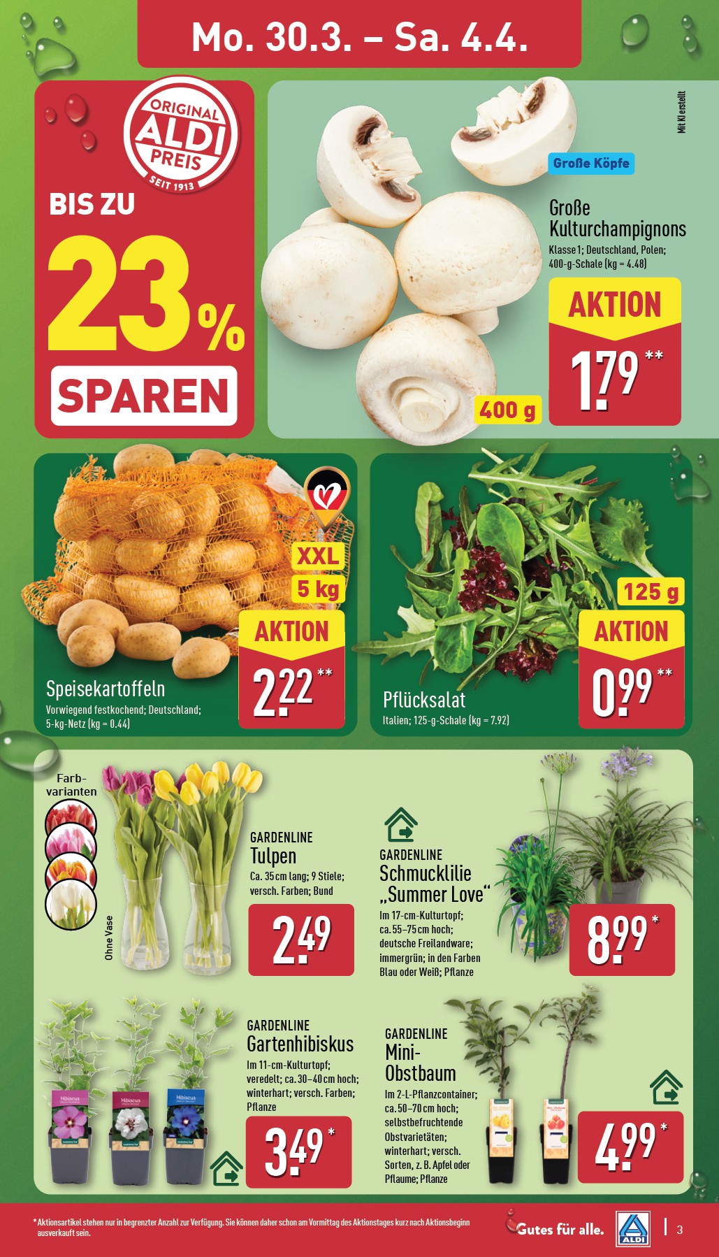 Auch Gartenfreunde kommen auf ihre Kosten. Mit den GARDENLINE Tulpen für 2,49 € oder dem Gartenhibiskus für 3,49 € kann der eigene Garten oder Balkon in eine blühende Oase verwandelt werden. Für Grillmeister beginnt die Saison ebenfalls mit tollen Angeboten, wie der BBQ Grillbürste für nur 3,99 € und dem hochwertigen Enders Gasgrill für 279,00 €. All diese und viele weitere Schnäppchen finden Sie in den aktuellen Aldi angebote.