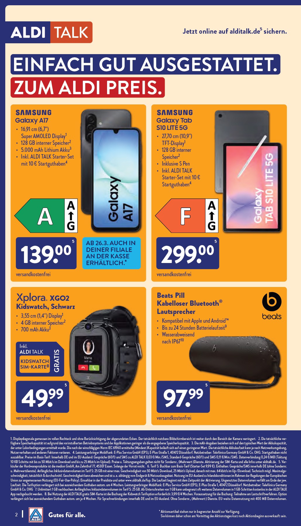 Neben dem Galaxy A16 hat Aldi Talk noch weitere attraktive Geräte im Angebot. Das Samsung Galaxy A17 für 139 € und das leistungsstarke Samsung Galaxy Tab S10 Lite 5G für 299 € sind perfekt für alle, die mehr Leistung und ein größeres Display suchen. Für die jüngsten Nutzer gibt es die Xplora xgo2 Kidswatch für nur 49,99 €, inklusive einer gratis Kids-Watch SIM-Karte. Musikliebhaber kommen mit dem Beats Pill Bluetooth-Lautsprecher für 97,99 € auf ihre Kosten. Diese Vielfalt unterstreicht, warum Aldi angebote Heute 2026 Angebote Angebote zum Blättern bei Technikfans so beliebt ist.