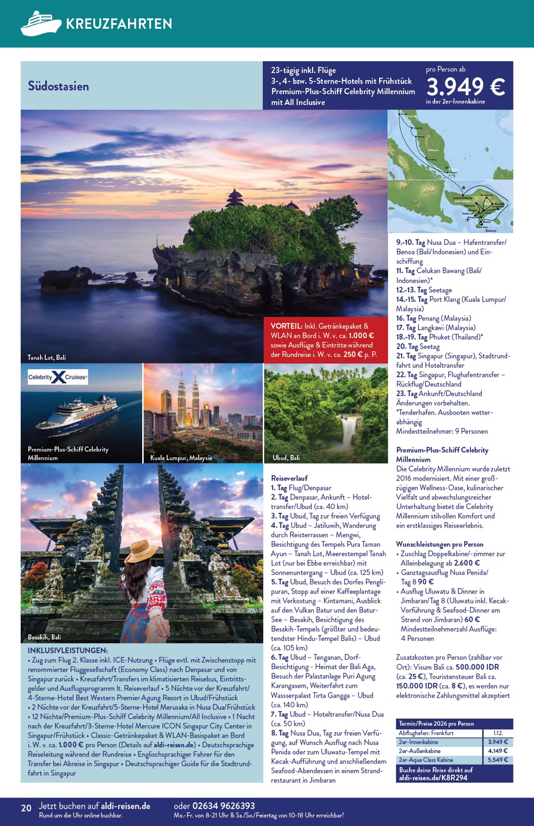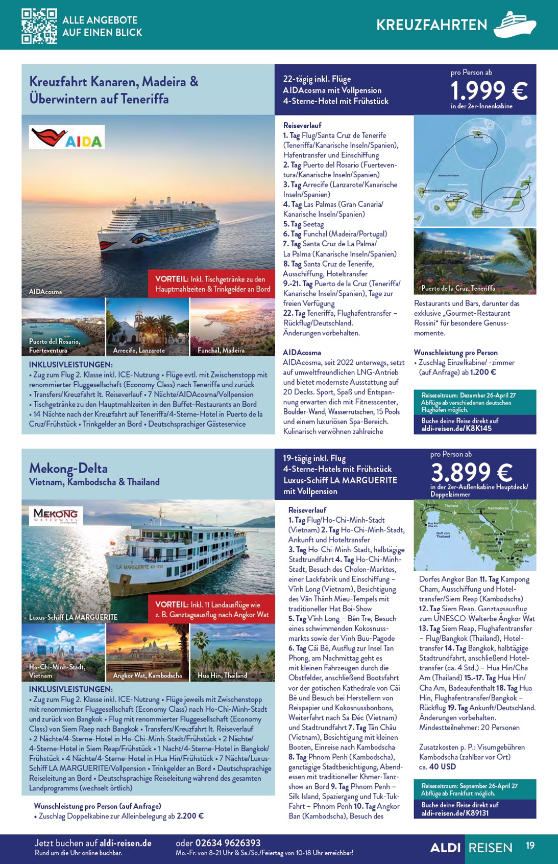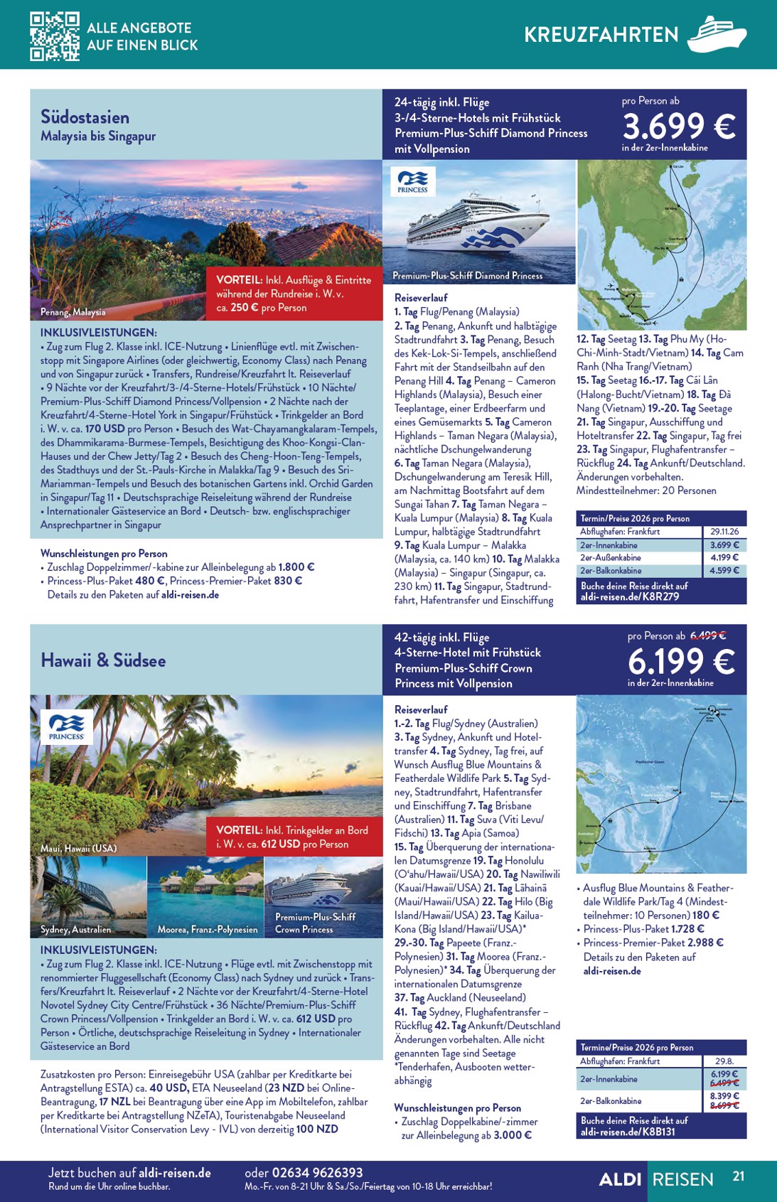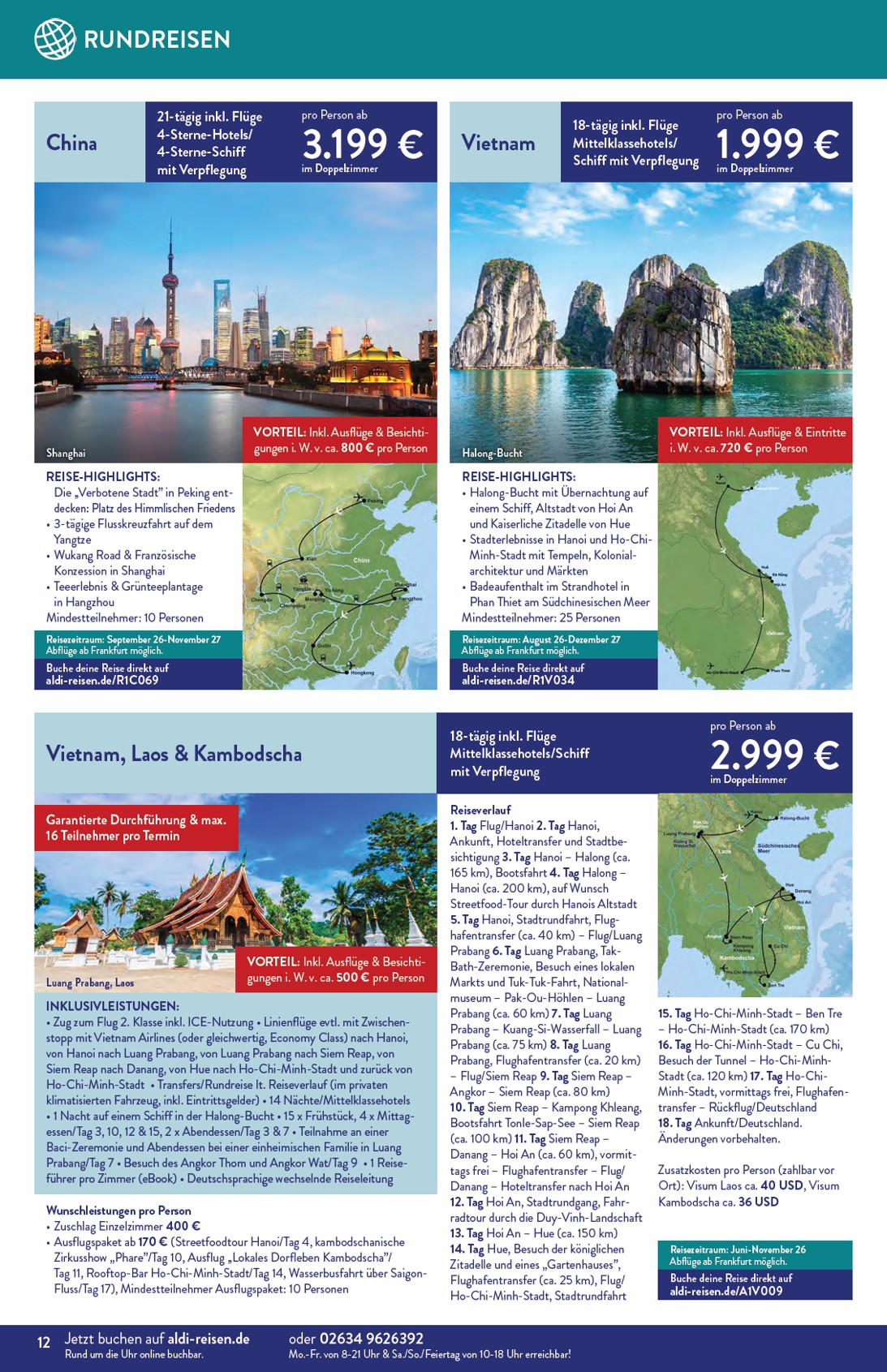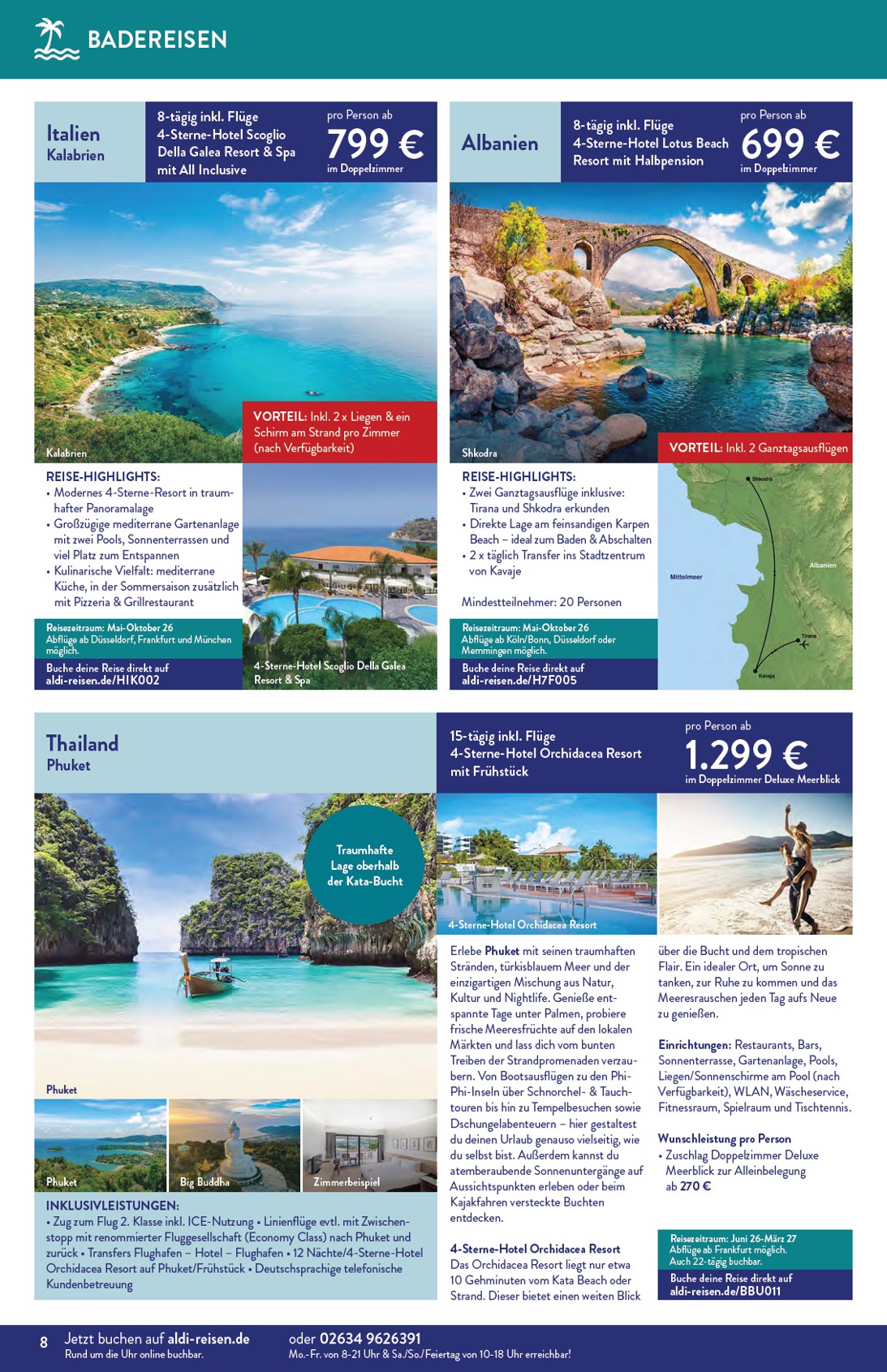 Der neue Aldi Reisen Prospekt lädt dazu ein, die Welt zu entdecken und unvergessliche Abenteuer zu erleben. Gültig bis zum 30. April 2026, präsentiert Aldi eine Fülle an Traumzielen zu unschlagbaren Preisen. Ein absolutes Highlight ist die 15-tägige Reise nach Thailand, genauer gesagt nach Phuket, für nur 1.299 € pro Person im Doppelzimmer Deluxe mit Meerblick, inklusive Flug und Frühstück im 4-Sterne-Hotel. Mit dem Aldi Nord Prospekt 01.04.2026 – 30.04.2026 Angebote nächste Woche können Sie sich auf eine exotische Auszeit freuen, die sowohl entspannend als auch aufregend ist.