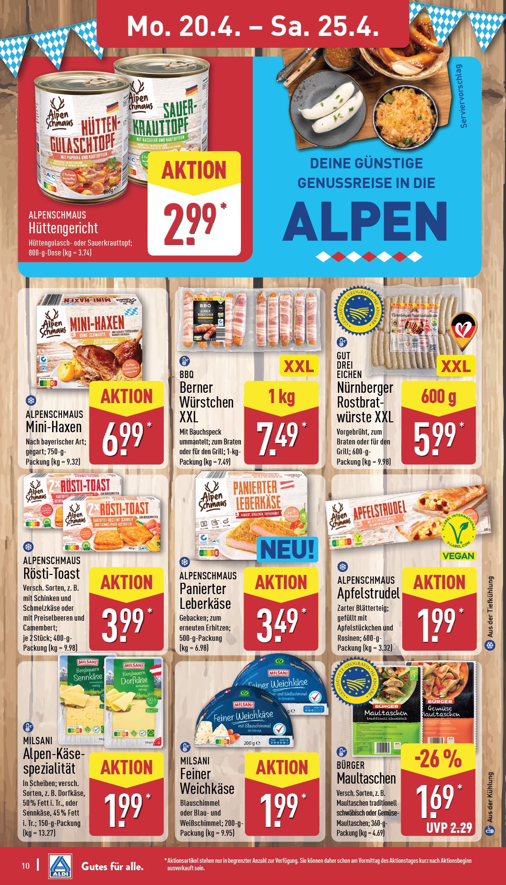 Die neue Woche bei ALDI Nord steht ganz im Zeichen der Alpen! Vom 20. bis zum 25. April 2026 können Sie sich auf eine kulinarische Reise in die Berge begeben. Unter dem Motto „Alpengenuss“ finden Sie zahlreiche Spezialitäten, die das Herz jedes Genießers höherschlagen lassen. Für alle, die sich auf die Aldi Nord Prospekt 20.04. – 25.04. 2026 Angebote nächste Woche freuen, gibt es unwiderstehliche Angebote. Entdecken Sie den original Alpenschmaus Tiroler Speck g.g.A. für nur 4,39 € oder die Münchner Weißwurst im XXL-Pack inklusive Händlmaier Senf für 4,49 €. Diese deftigen Köstlichkeiten bringen authentischen Hüttenzauber direkt auf Ihren Teller und sind perfekt für eine zünftige Brotzeit.