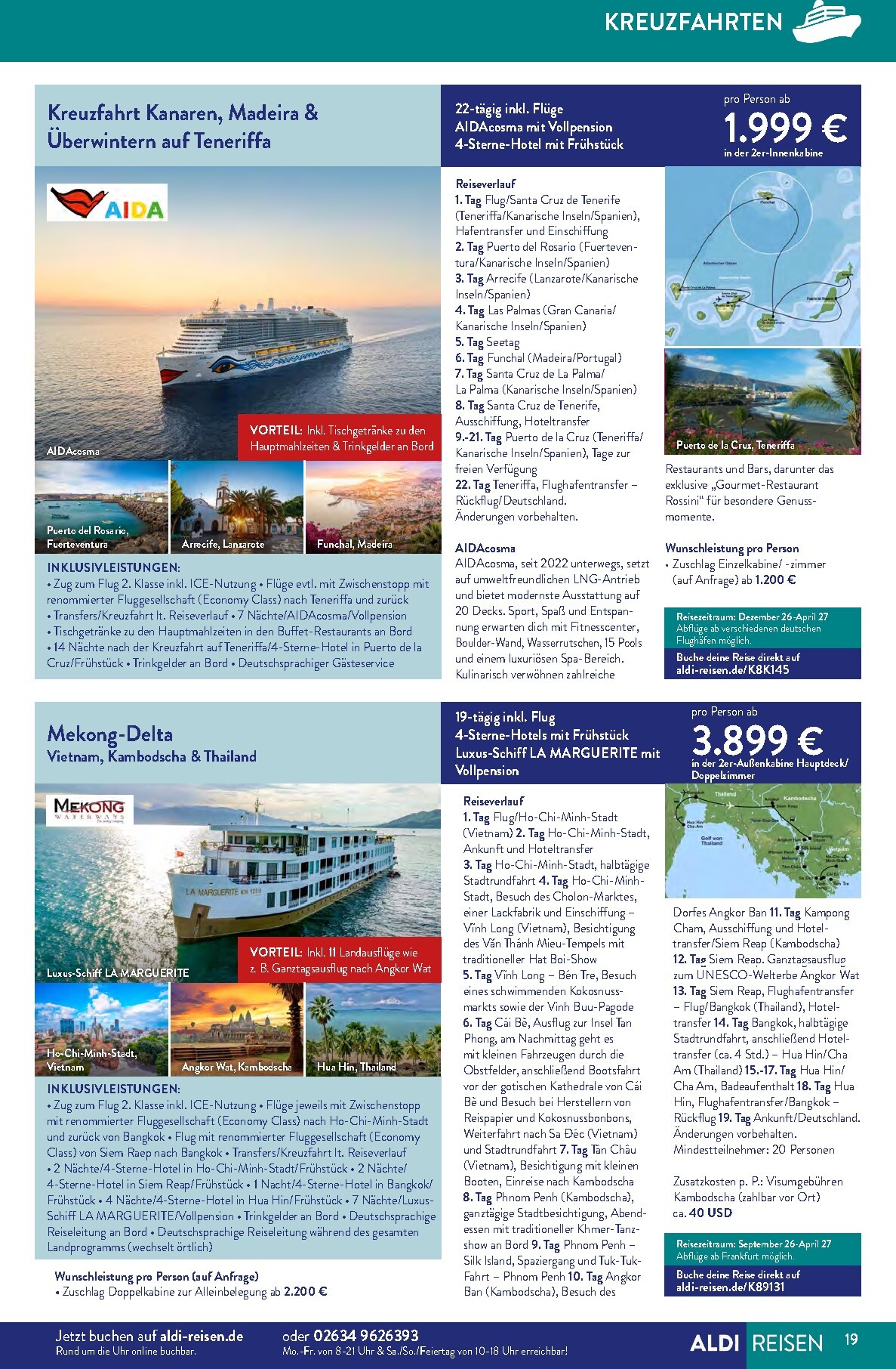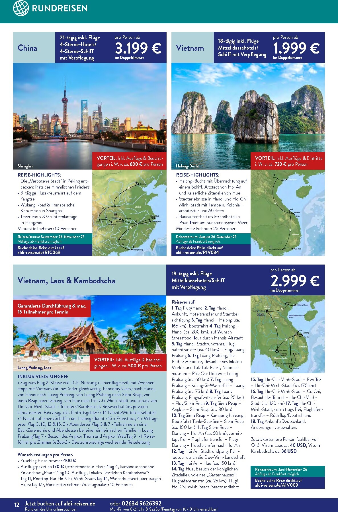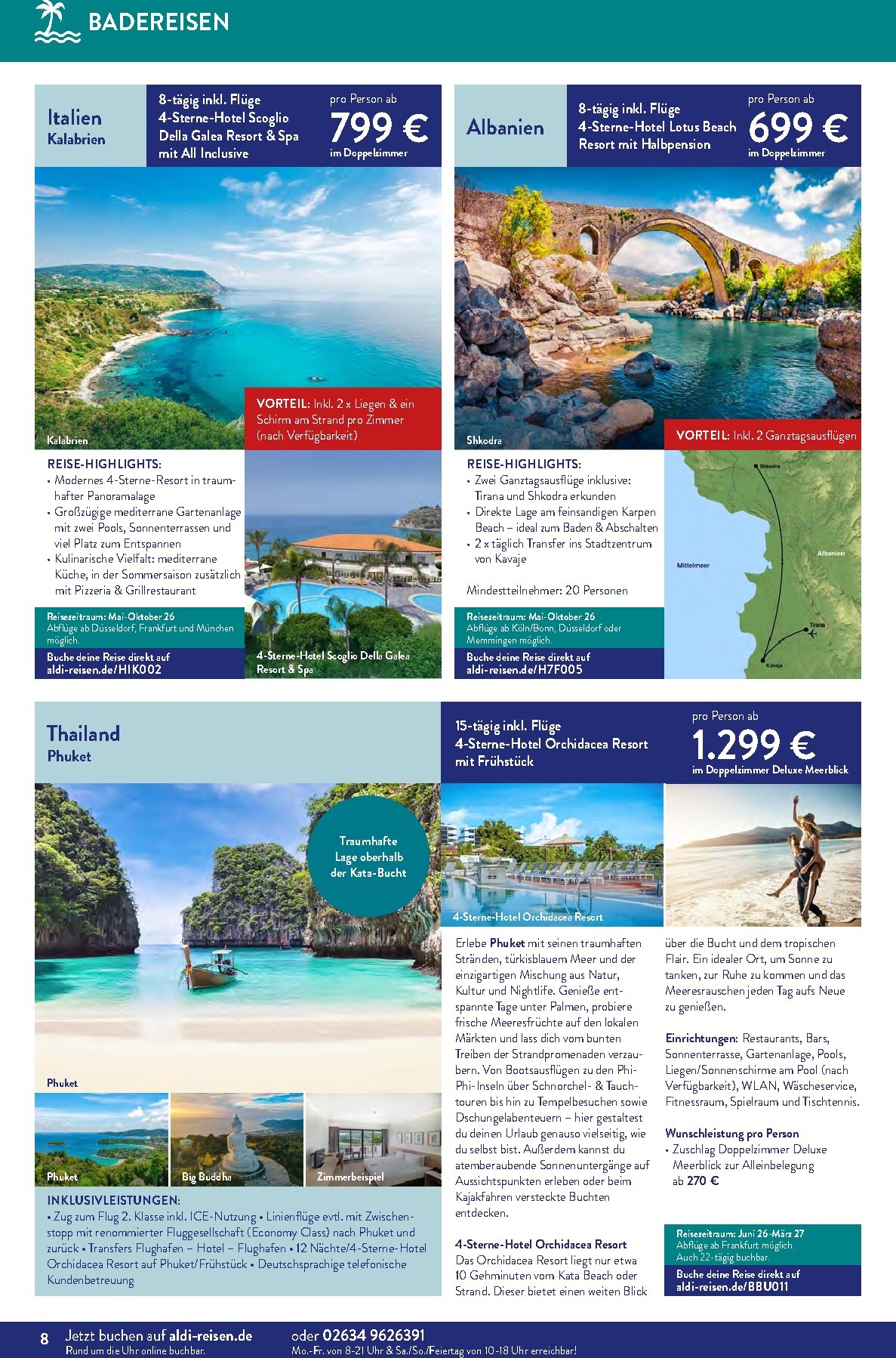 Der neue ALDI Reisen Prospekt für April lädt unter dem Motto „Die Welt entdecken“ zu unvergesslichen Abenteuern ein. Gültig bis zum 30. April 2026, präsentiert ALDI Süd eine Fülle an Traumzielen, die Fernweh wecken. Das absolute Highlight auf der Titelseite ist eine 15-tägige Reise nach Phuket, Thailand. Für nur 1.299 € pro Person erleben Sie das Paradies in einem 4-Sterne-Hotel inklusive Frühstück. Diese Aldi Sud angebote 01.04.2026 – 30.04.2026 zum Blättern Online Online ist die perfekte Gelegenheit, dem Alltag zu entfliehen und exotische Kulturen zu entdecken, ohne das Budget zu sprengen.