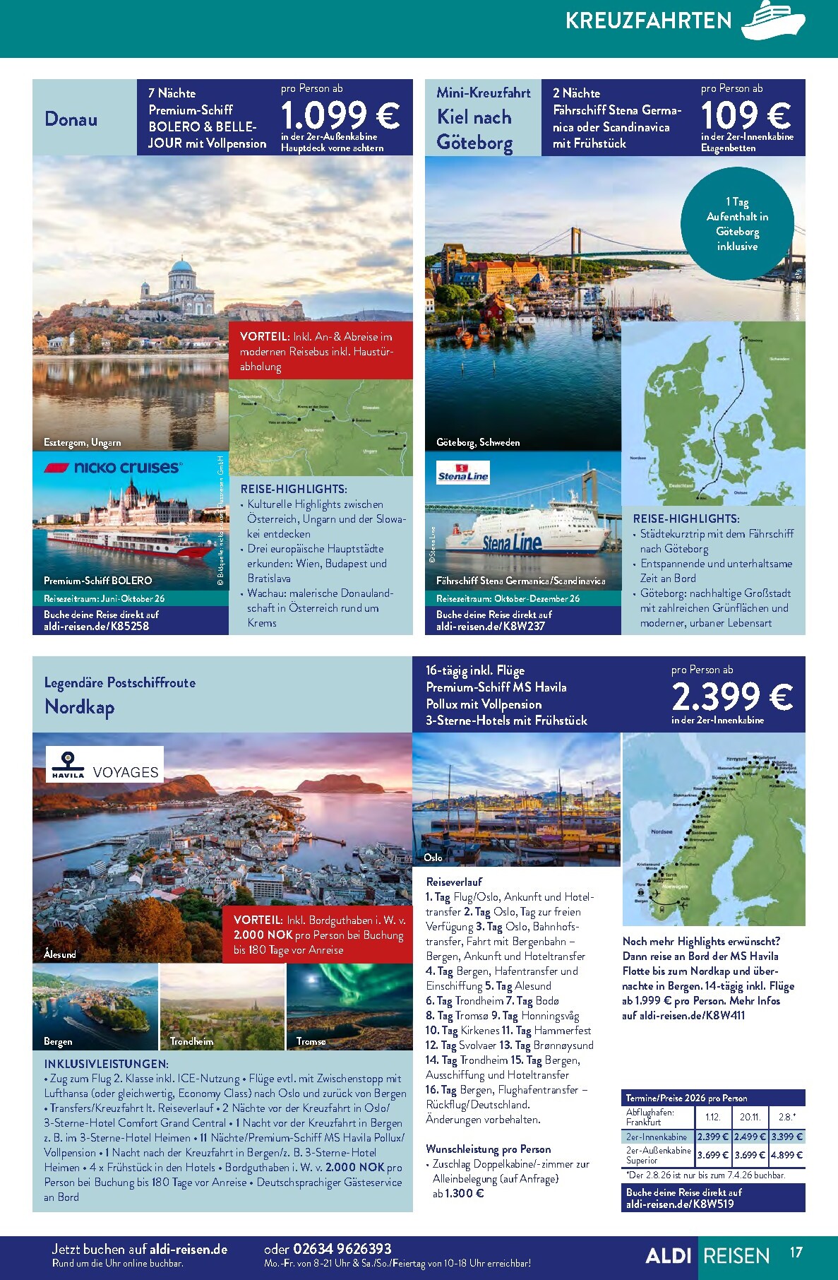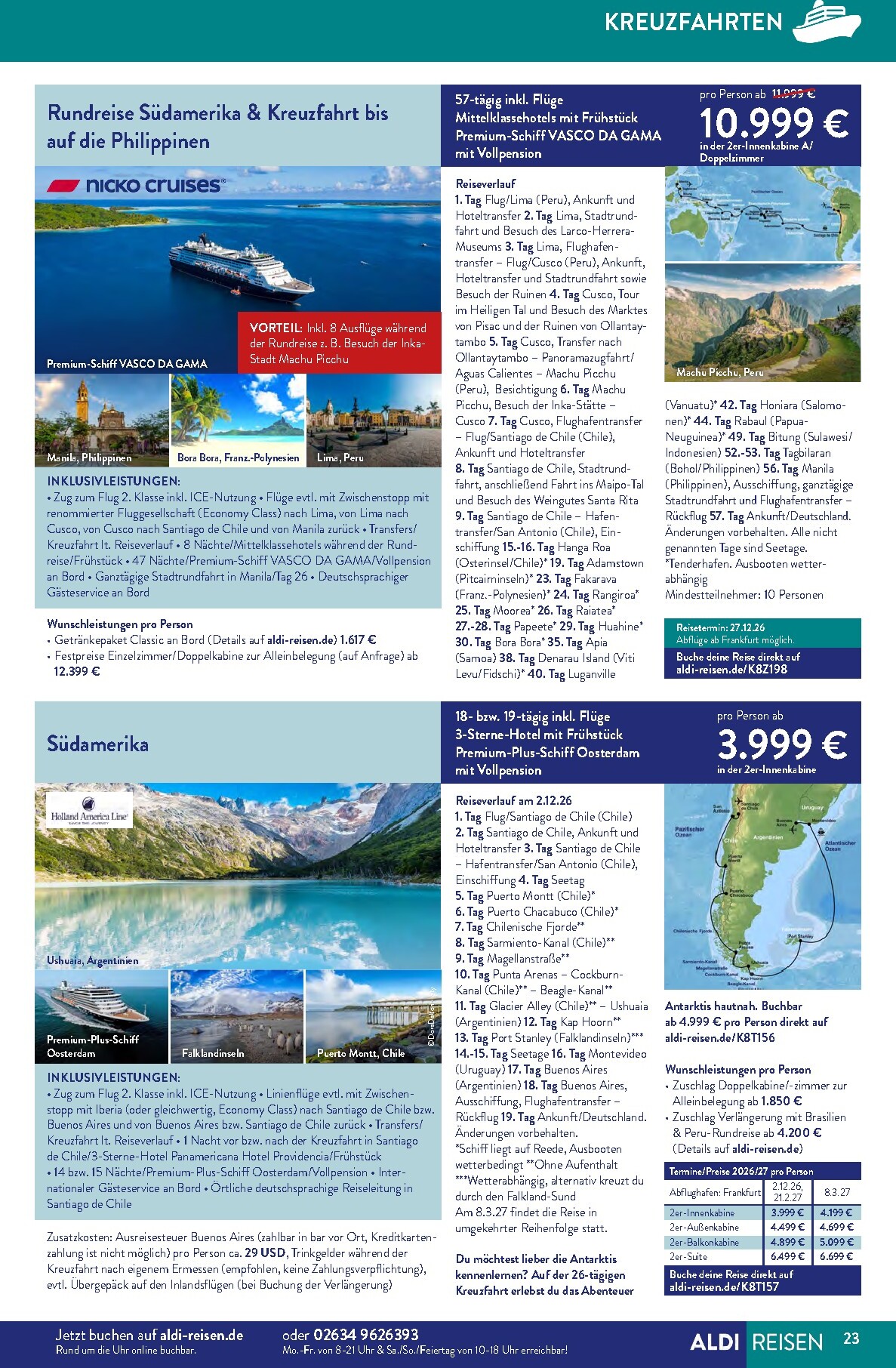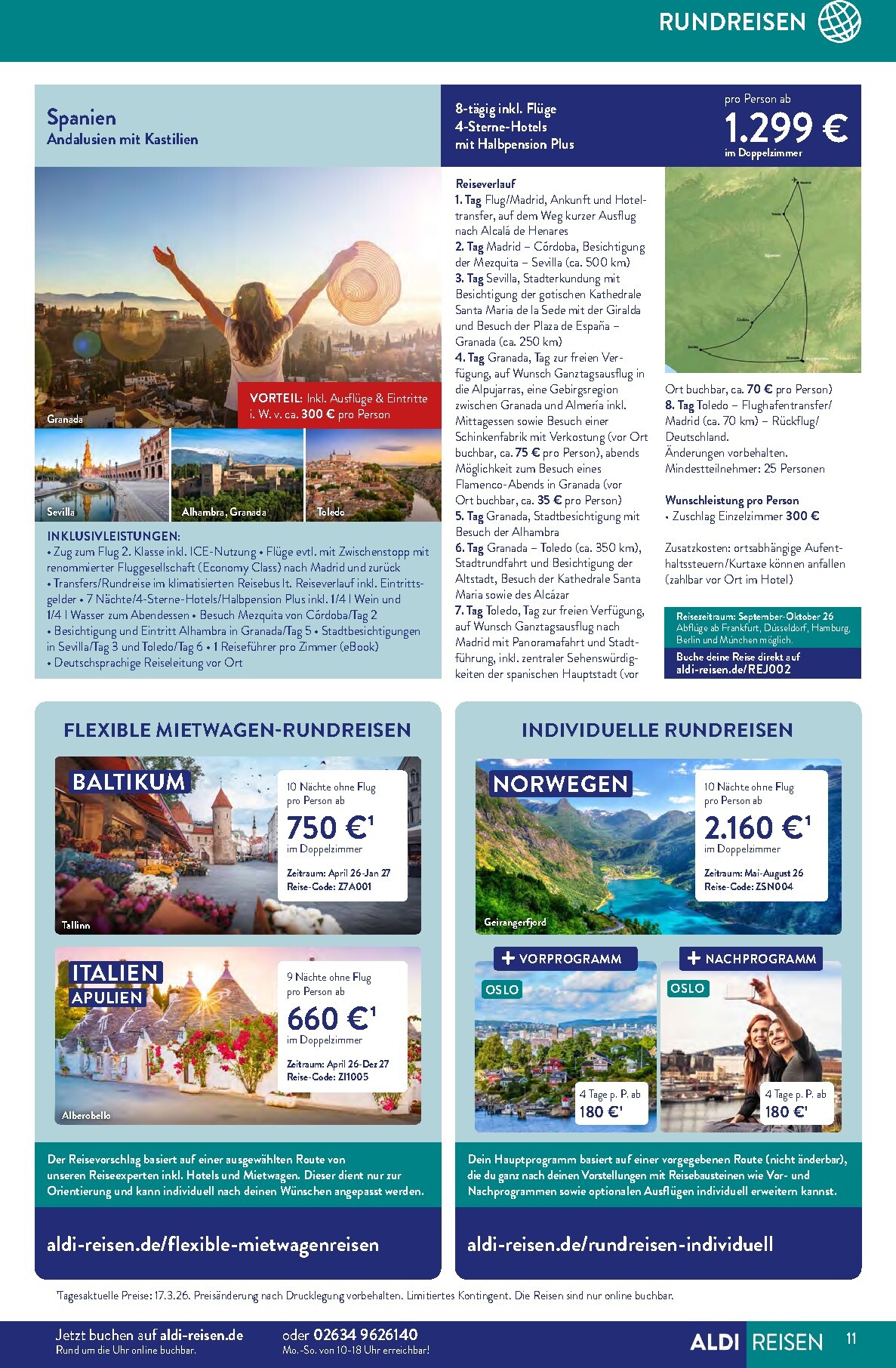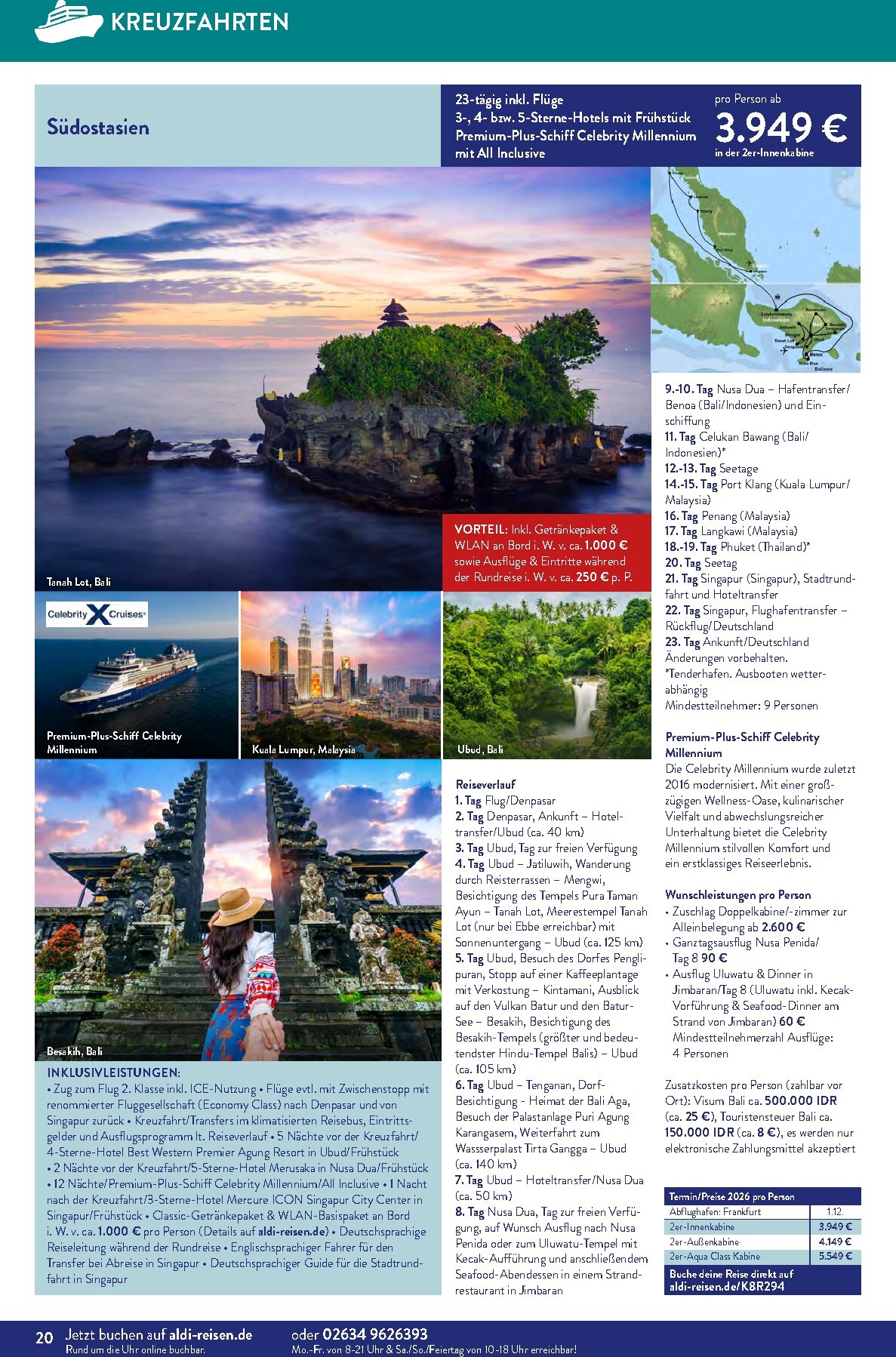 Der neue ALDI Reisen Prospekt für April lädt unter dem Motto „Die Welt entdecken“ zu unvergesslichen Abenteuern ein. Gültig bis zum 30. April 2026, präsentiert ALDI Süd eine Fülle an Traumzielen, die Fernweh wecken. Das absolute Highlight auf der Titelseite ist eine 15-tägige Reise nach Phuket, Thailand. Für nur 1.299 € pro Person erleben Sie das Paradies in einem 4-Sterne-Hotel inklusive Frühstück. Diese Aldi Sud angebote 01.04.2026 – 30.04.2026 zum Blättern Online Online ist die perfekte Gelegenheit, dem Alltag zu entfliehen und exotische Kulturen zu entdecken, ohne das Budget zu sprengen.