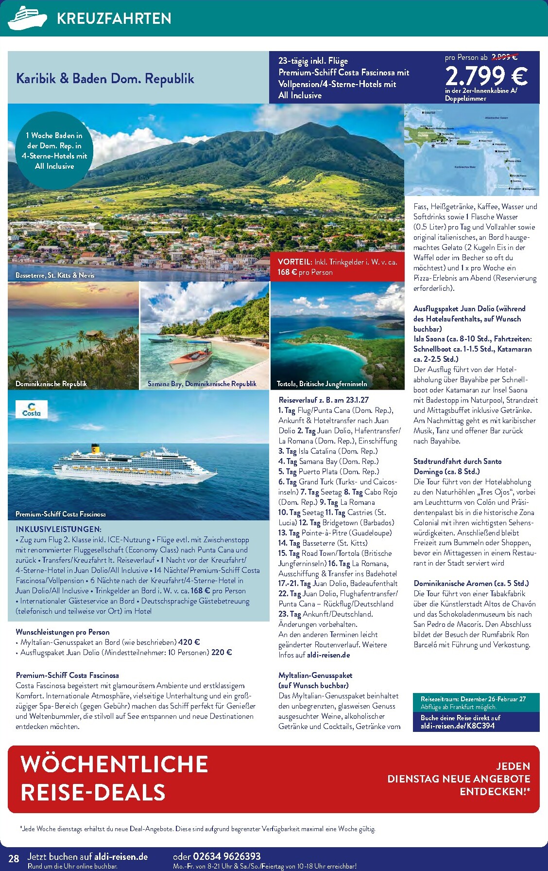 In der zweiten Monatshälfte, vom 16.4. bis zum 30.4.26, lockt ein faszinierendes Angebot für eine 11-tägige China-Rundreise. Entdecken Sie Metropolen wie Peking, Xi’an und Shanghai und sparen Sie dabei 200 €. Die Reise kostet nur 1.399 € pro Person. Wer das Meer liebt, sollte sich die 23-tägige All-Inclusive-Kreuzfahrt durch die Karibik ab 2.799 € nicht entgehen lassen. Alle Details zu diesen und weiteren Reisen finden Sie, wenn Sie die aktuellen Aldi Sud angebote durchstöbern.