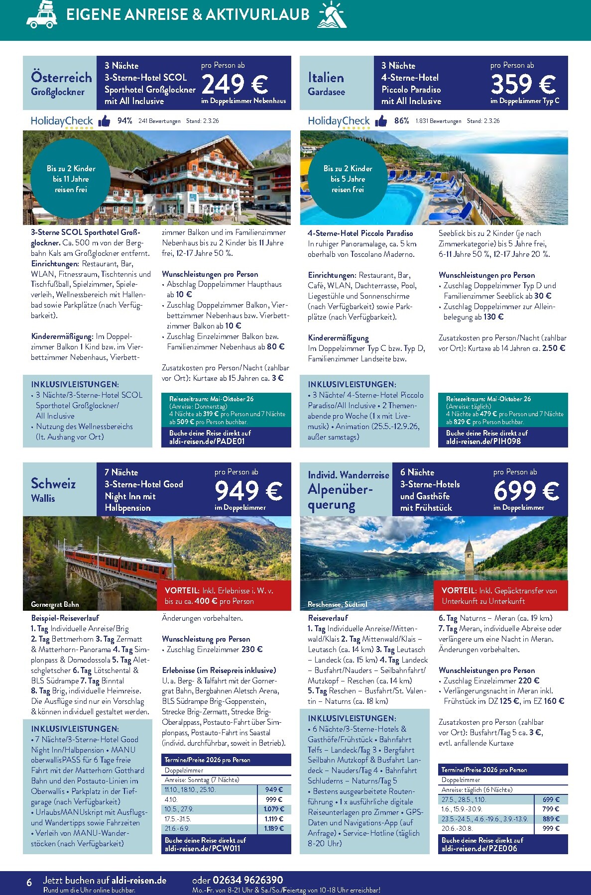 Neben den Fernreisen gibt es auch attraktive Angebote für Kurzurlaube in Europa. Wie wäre es mit einer Auszeit in Österreich am Großglockner für nur 249 € pro Person im Doppelzimmer? Oder zieht es Sie eher an die sonnigen Strände Albaniens? Diesen Traum können Sie sich bereits ab 699 € pro Person erfüllen. Die hohe Kundenzufriedenheit, bestätigt durch eine TrustScore von 4,5 bei über 3.900 Bewertungen, spricht für die Qualität und den Service von ALDI Reisen.