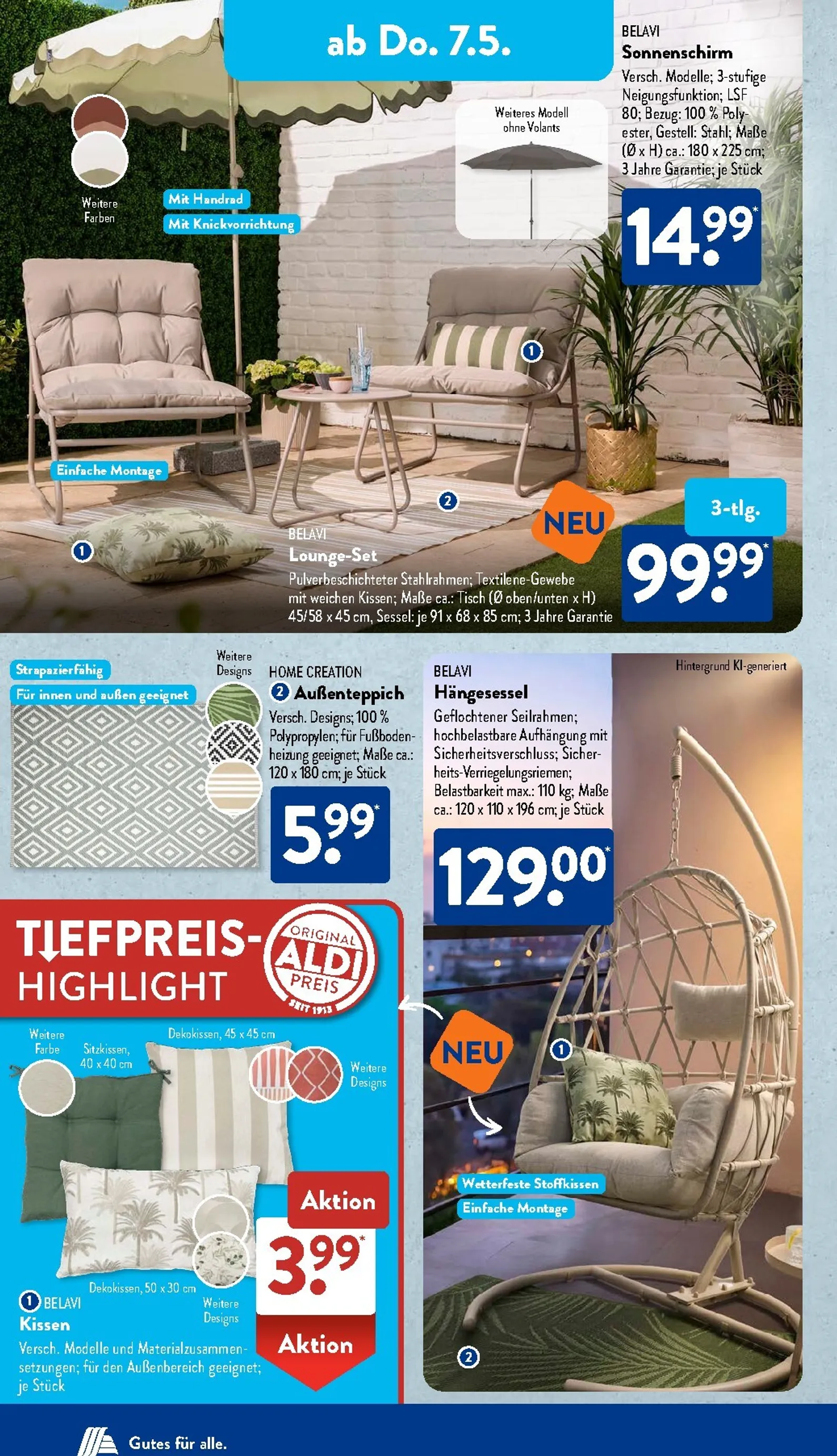 Der Sommer hält Einzug mit modischen und gemütlichen Angeboten. Das 2er-Set gerippter Tops für 5,99 Euro ist ideal für warme Tage. Ein Highlight für den Außenbereich ist der stilvolle Hängesessel für 129,00 Euro, der Balkon und Garten in eine Wohlfühloase verwandelt. Diese Artikel laden dazu ein, sich auf die sonnige Jahreszeit vorzubereiten und das eigene Zuhause noch gemütlicher zu gestalten.
