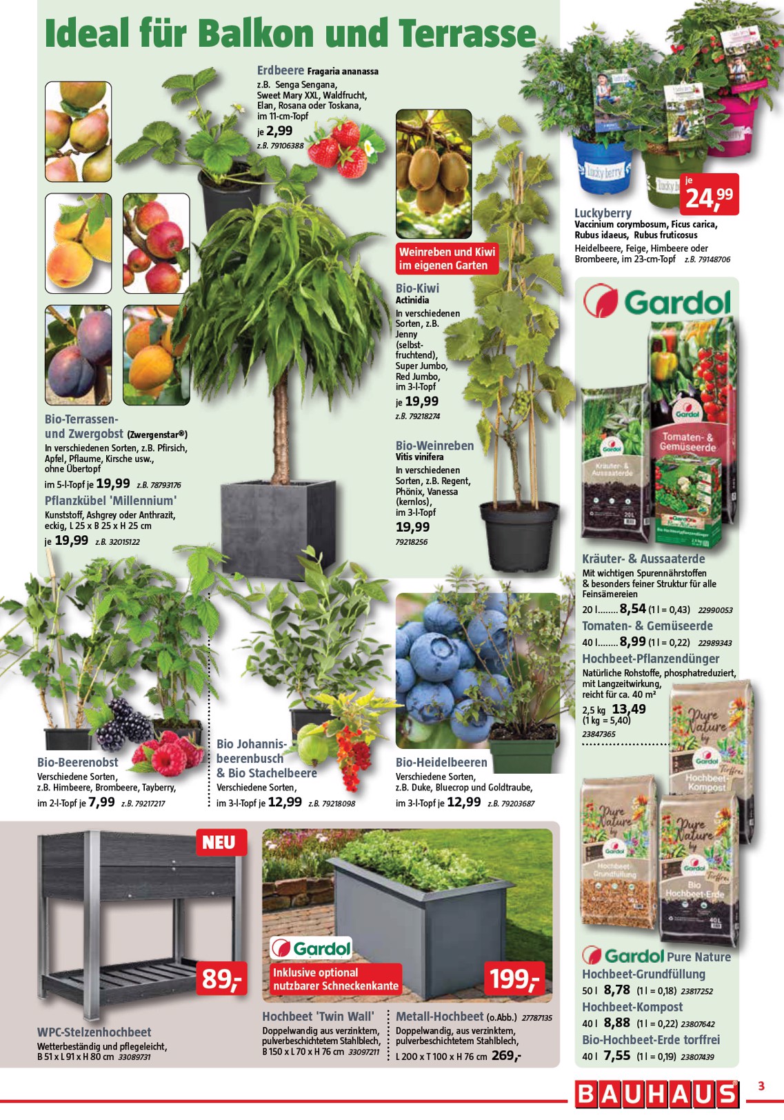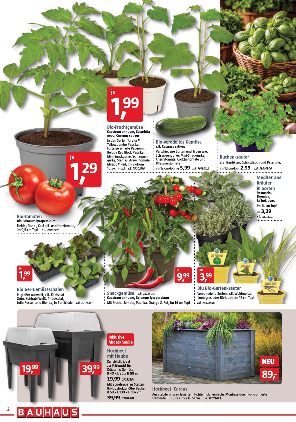 Für alle mit einem grünen Daumen bietet Bauhaus eine riesige Auswahl an Pflanzen. Von Bio-Tomaten und diversen Gemüsesorten für je 1,29 Euro bis hin zu Küchenkräutern und mediterranen Kräutern ist alles dabei, um den eigenen Garten oder Balkon in eine grüne Oase zu verwandeln. Praktische Hochbeete in verschiedenen Größen und Materialien, wie das Modell ‚Cardis‘ für 89,- Euro, erleichtern den Anbau und schaffen stilvolle Akzente.