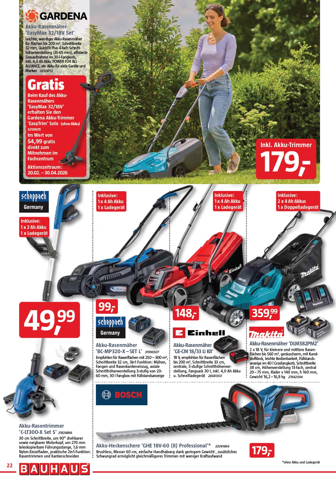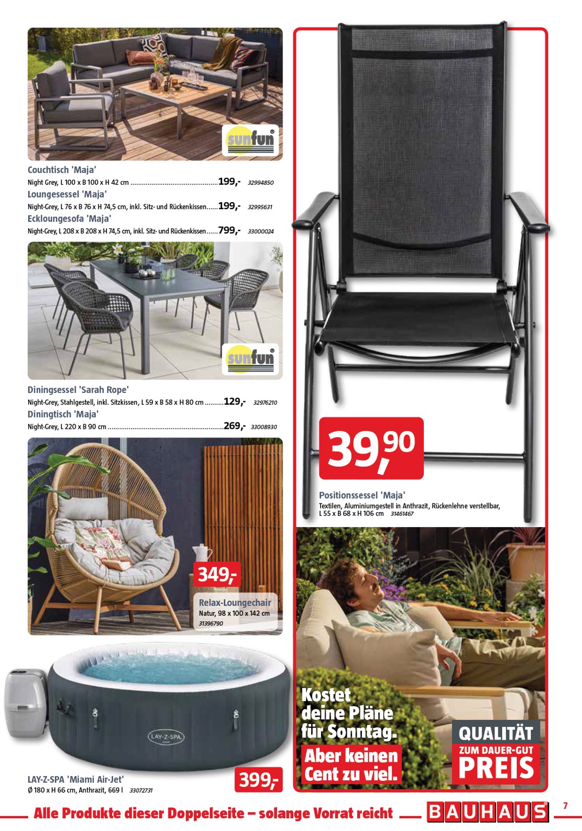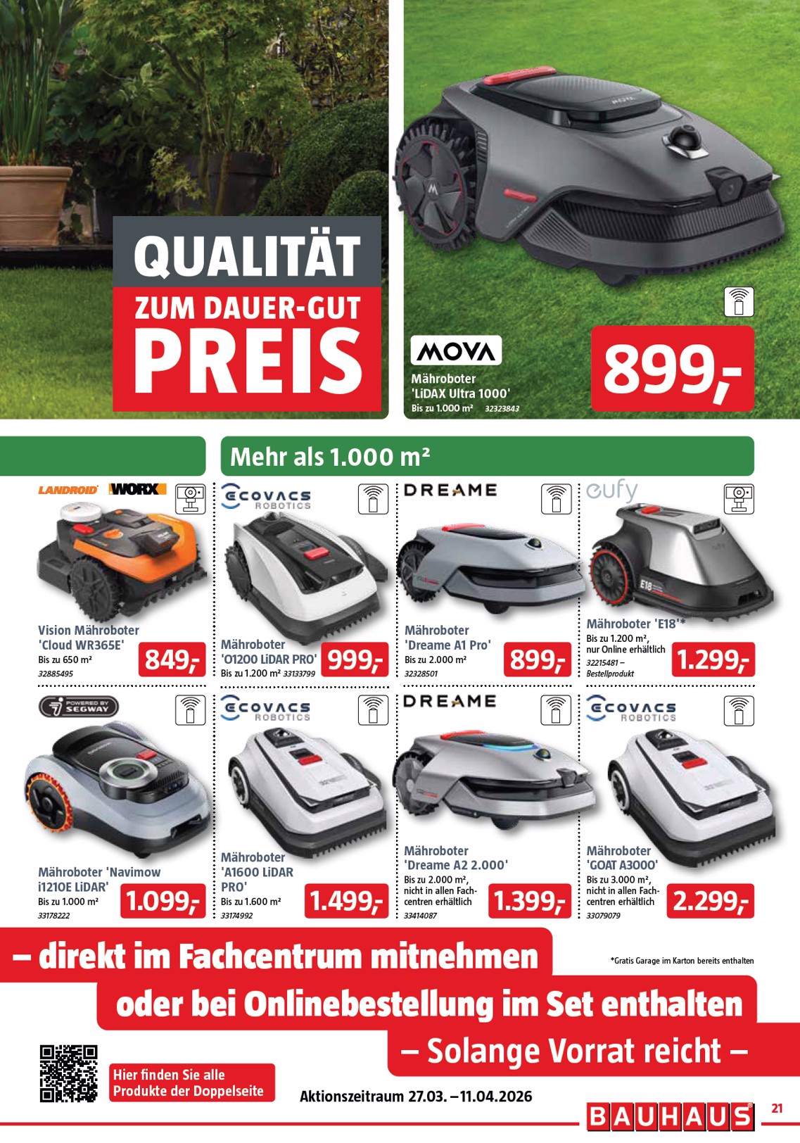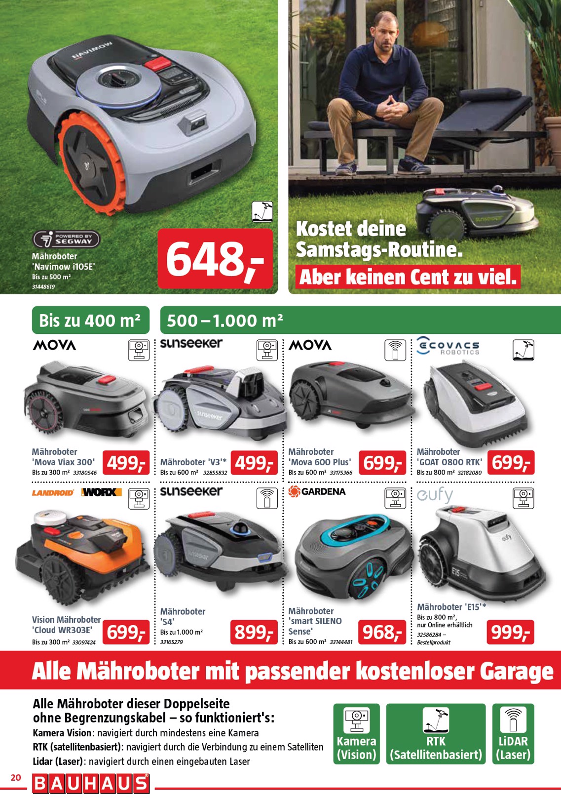 Der Frühling steht vor der Tür und Bauhaus läutet die Saison mit einem neuen Prospekt ein, der vom 28. März bis zum 11. April 2026 gültig ist. Machen Sie es sich gemütlich mit der eleganten Solo Loungeinsel ‚Rope‘ für nur 999,- Euro oder überlassen Sie die Rasenpflege dem Mähroboter ‚VT‘ von sunseeker, der inklusive Gratis Garage für nur 389,- Euro erhältlich ist. Entdecken Sie die neuesten Bauhaus Prospekt 28.03.2026 – 11.04.2026 zum Blättern Online Online und bereiten Sie Ihren Außenbereich auf die warme Jahreszeit vor.