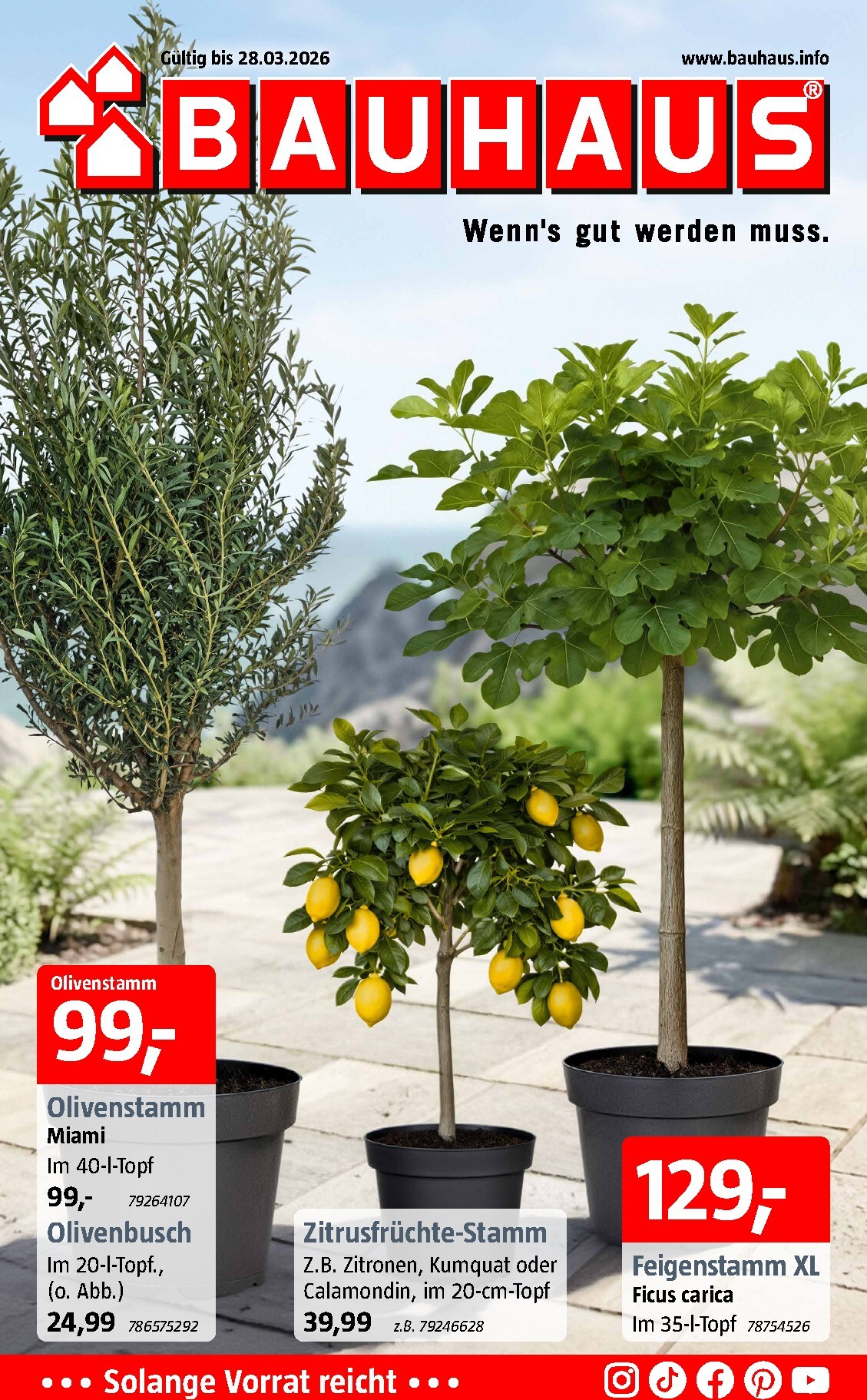 Neben den klassischen Olivenbäumen bietet Bauhaus Prospekt 28.03.2026 Angebote Angebote zum Blättern auch eine wunderbare Auswahl an ertragreichen Fruchtbäumen. Stellen Sie sich vor, Sie ernten Ihre eigenen Zitronen oder Feigen direkt von der Terrasse. Diese Pflanzen sind nicht nur dekorativ, sondern versorgen Sie auch mit frischen, selbst angebauten Früchten.
