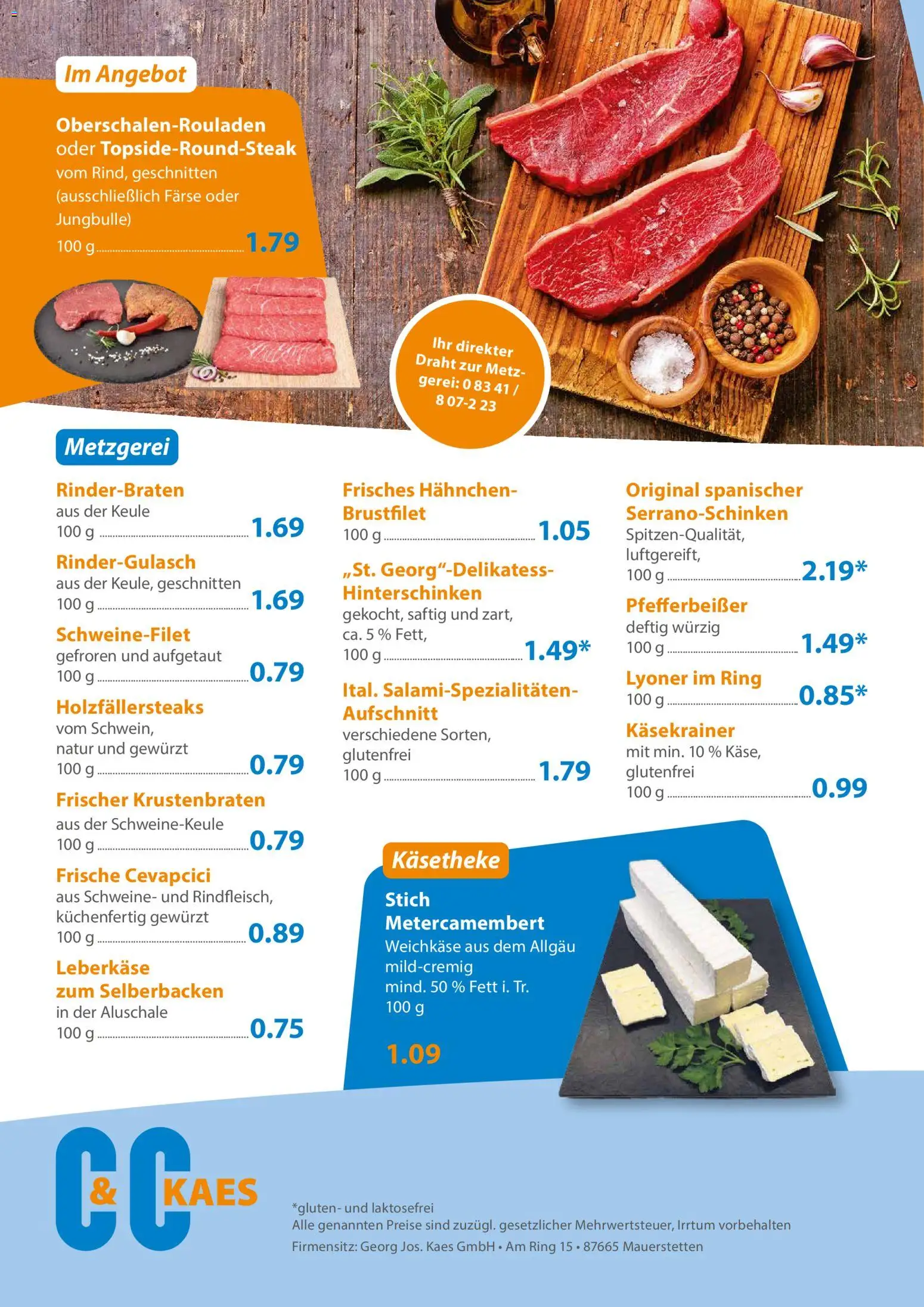 Die Metzgerei-Theke überzeugt mit erstklassiger Qualität zu fairen Preisen. Zarte Oberschalen-Rouladen vom Rind gibt es für 1,79 € pro 100 g und das frische Hähnchen-Brustfilet sogar für nur 1,05 € pro 100 g. Wer es deftiger mag, findet im aktuellen prospekt Cc 23. März – 04. April 2026 auch Schweine-Filet für nur 0,79 € pro 100 g. Abgerundet wird das Angebot durch den mild-cremigen Stich Metcamembert für nur 1,09 €.