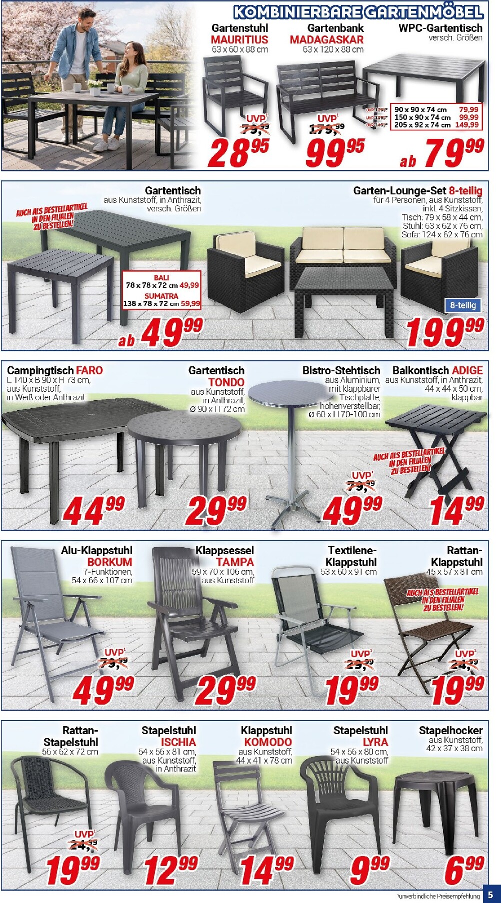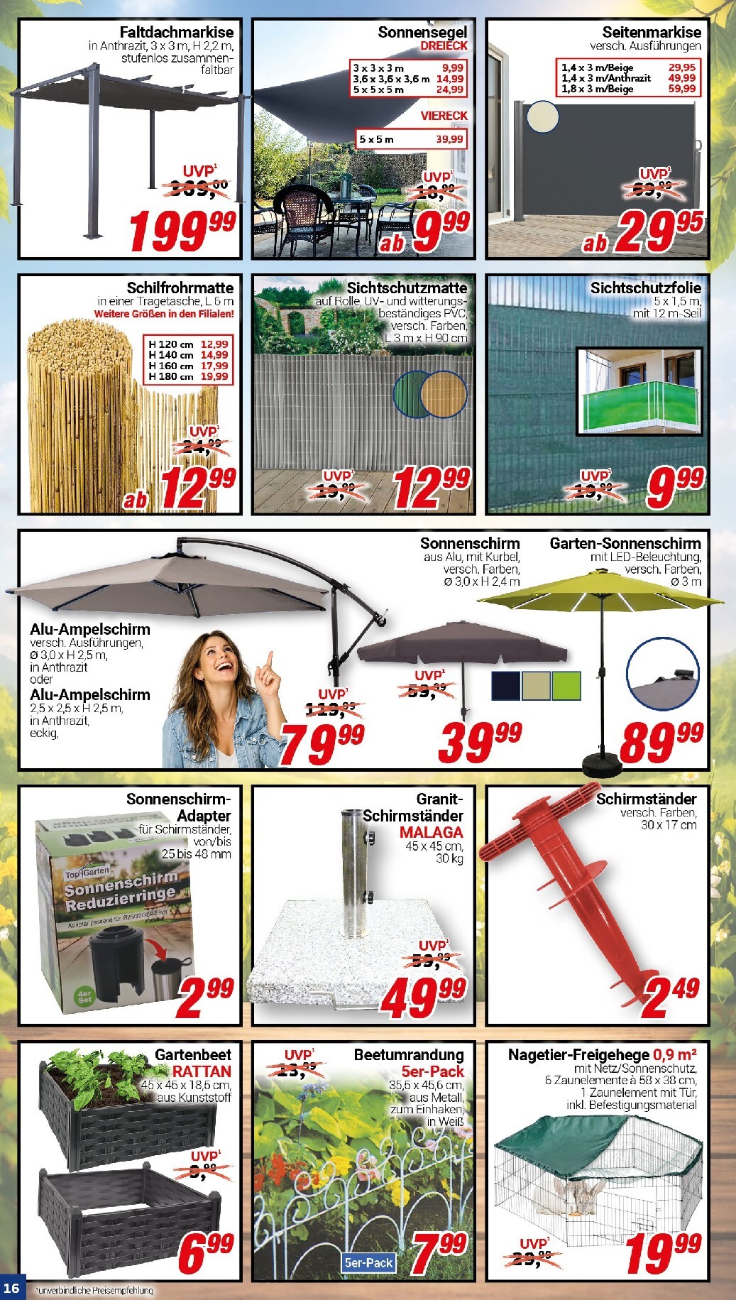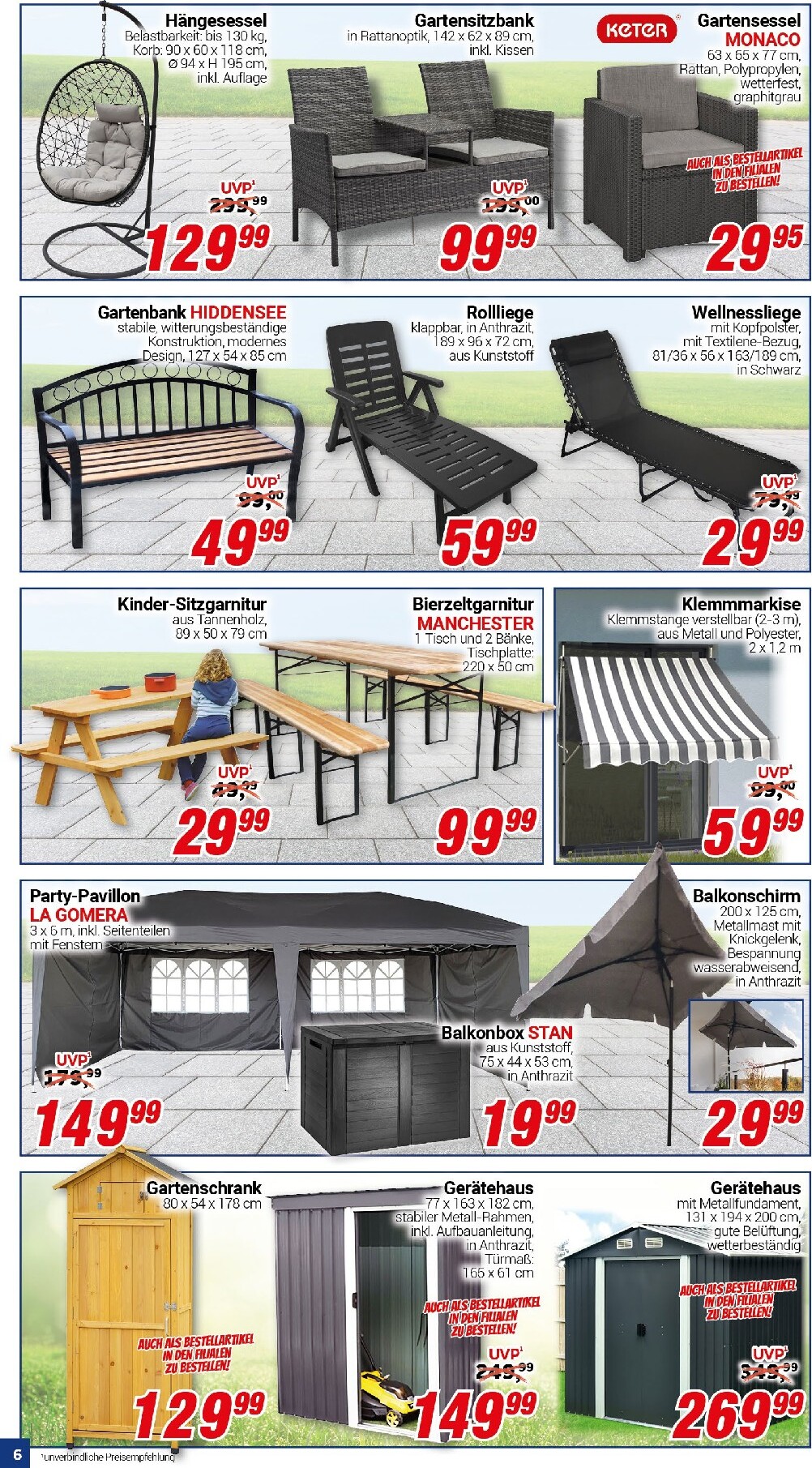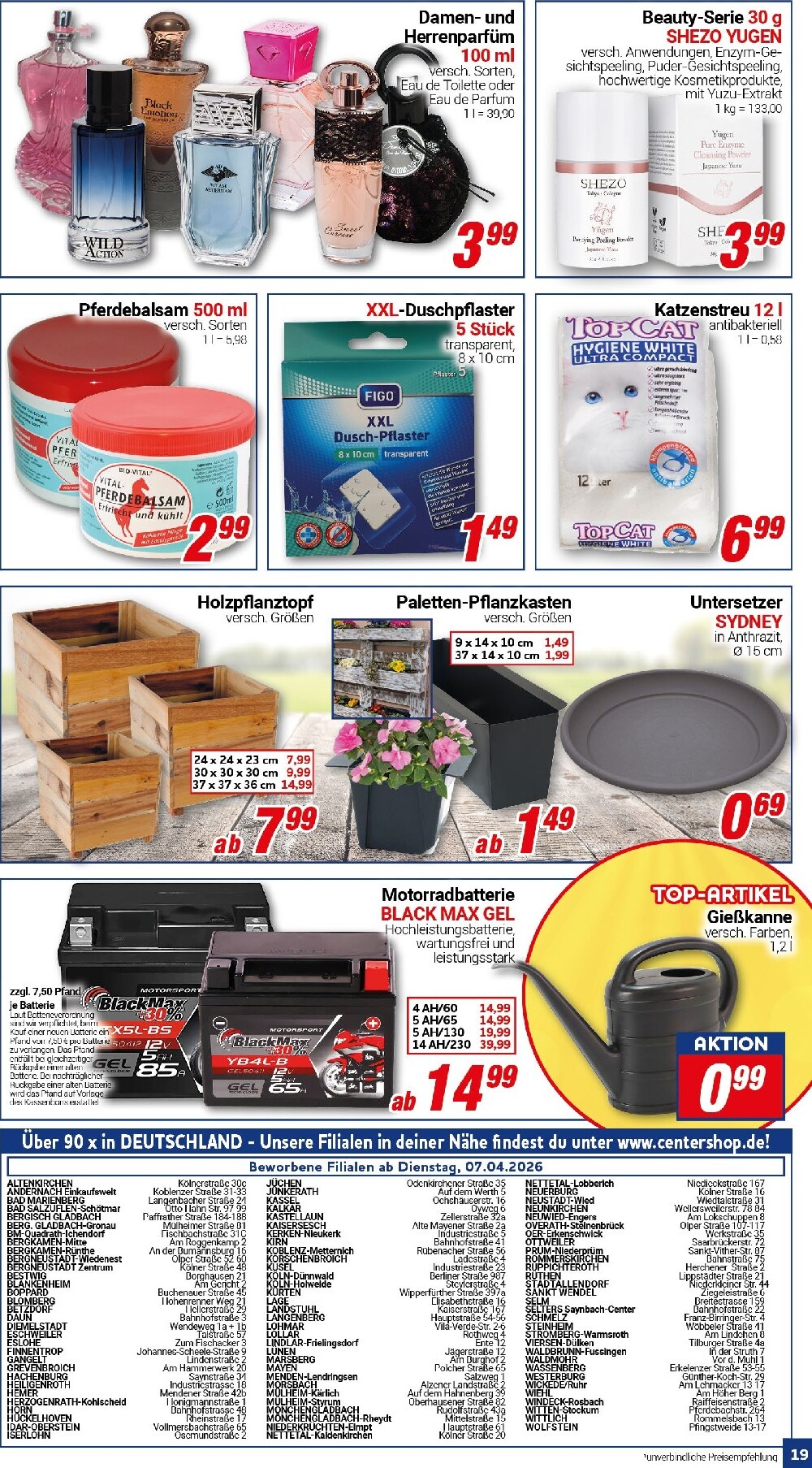 Für alle mit einem grünen Daumen ist der neue Prospekt ein wahres Paradies. Die riesige Auswahl an Pflanzen und Gartenbedarf lässt keine Wünsche offen. Der Centershop Prospekt 07.04.2026 – 11.04.2026 zum Blättern Online Online präsentiert eine beeindruckende Vielfalt, von Edelgeranien und Petunien ab 0,99 € bis hin zu Margeriten und Beetpflanzen zu Aktionspreisen. Wer sein eigenes Gemüse anbauen möchte, findet mit dem Tomaten-Gewächshaus für nur 12,99 € oder verschiedenen Erdsorten wie Aussaaterde für 2,59 € die ideale Grundlage. Auch für die Gestaltung der Terrasse ist gesorgt: Das 4-teilige Rattanmöbel-Set für 99,99 € schafft eine stilvolle und gemütliche Atmosphäre.