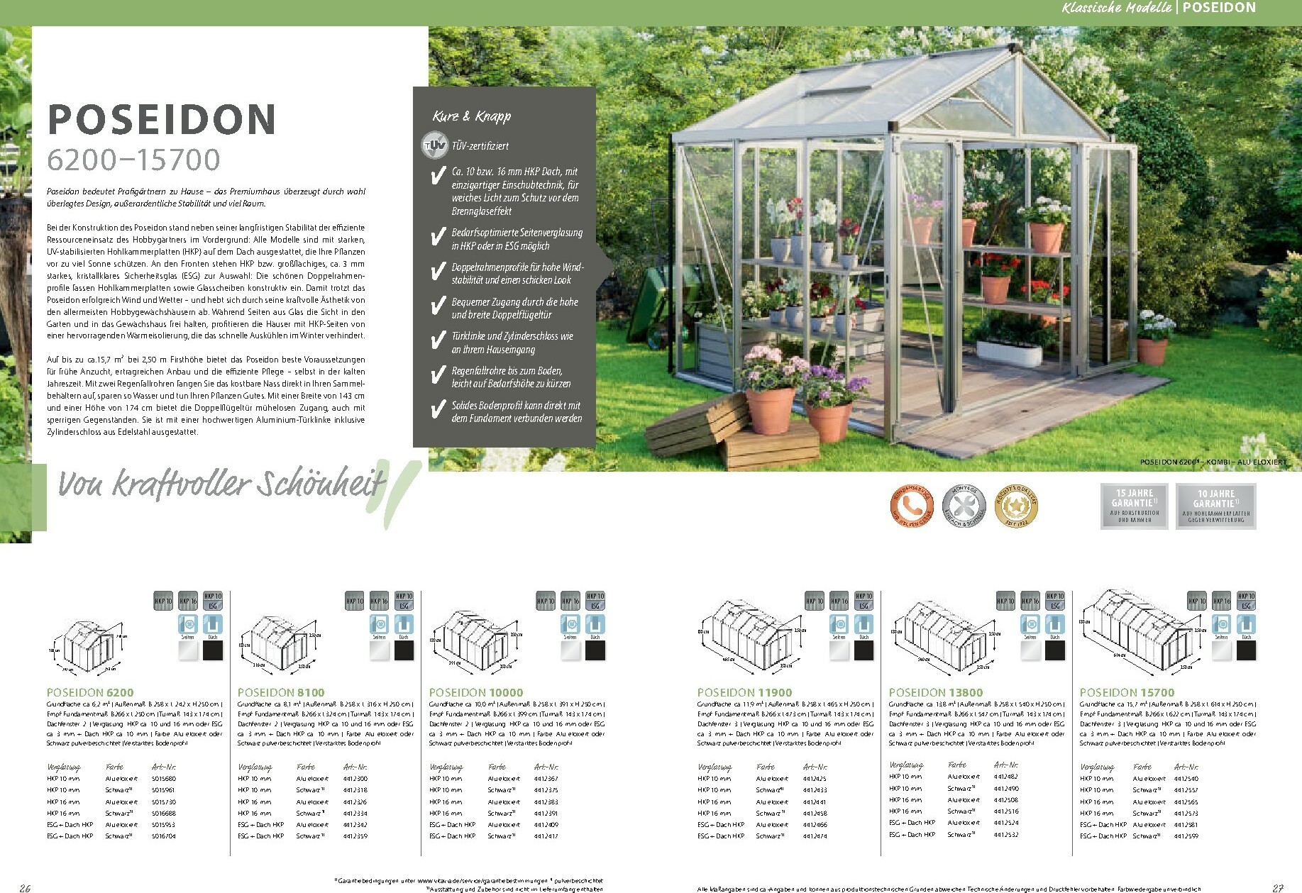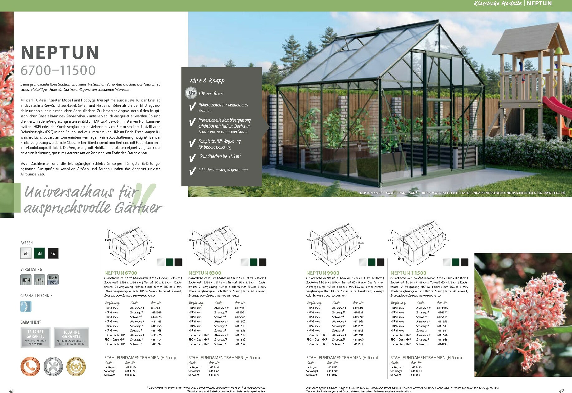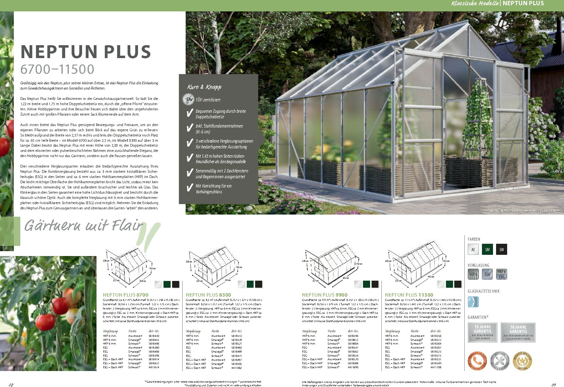 Die Auswahl an Gewächshäusern ist beeindruckend und deckt jeden Bedarf ab. Von klassischen Modellen wie „Sirius“ oder „Uranus“ bis hin zu modernen Premium-Häusern wie dem „Poseidon“ ist für jede Gartengröße und jeden Stil das passende Produkt dabei. Sie können zwischen verschiedenen Verglasungsarten wählen, darunter Einscheiben-Sicherheitsglas (ESG) oder Hohlkammerplatten (HKP), um optimale Bedingungen für Ihre Pflanzen zu schaffen. Viele Modelle sind in eleganten Farben wie Smaragd, Anthrazit oder Schwarz pulverbeschichtet erhältlich und bieten durchdachte Details wie leichtgängige Schiebetüren und integrierte Dachfenster für eine perfekte Belüftung.