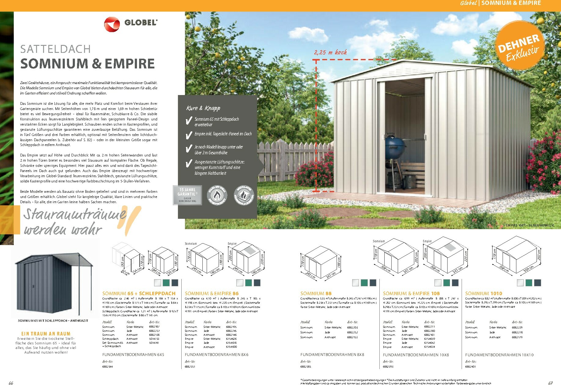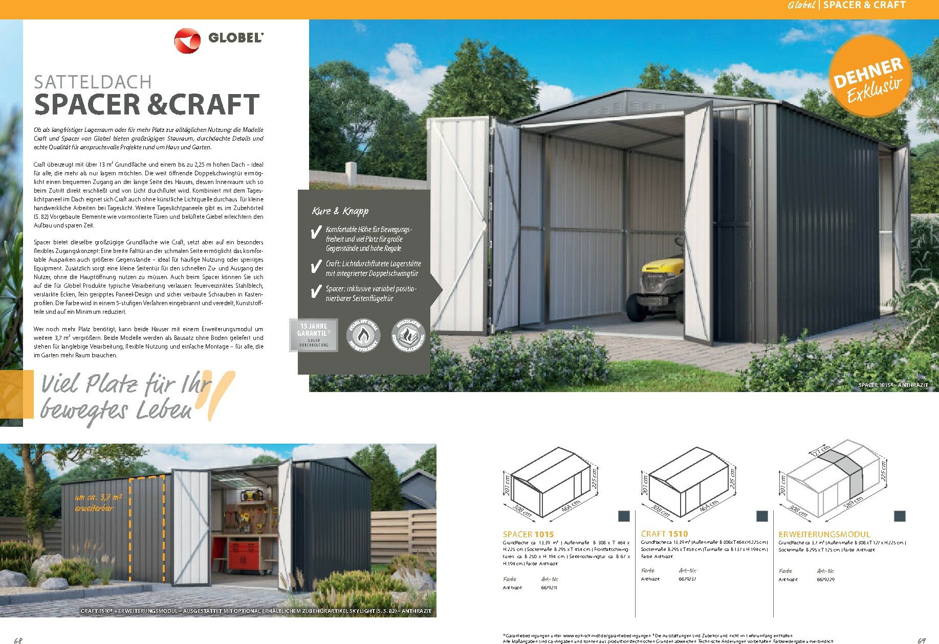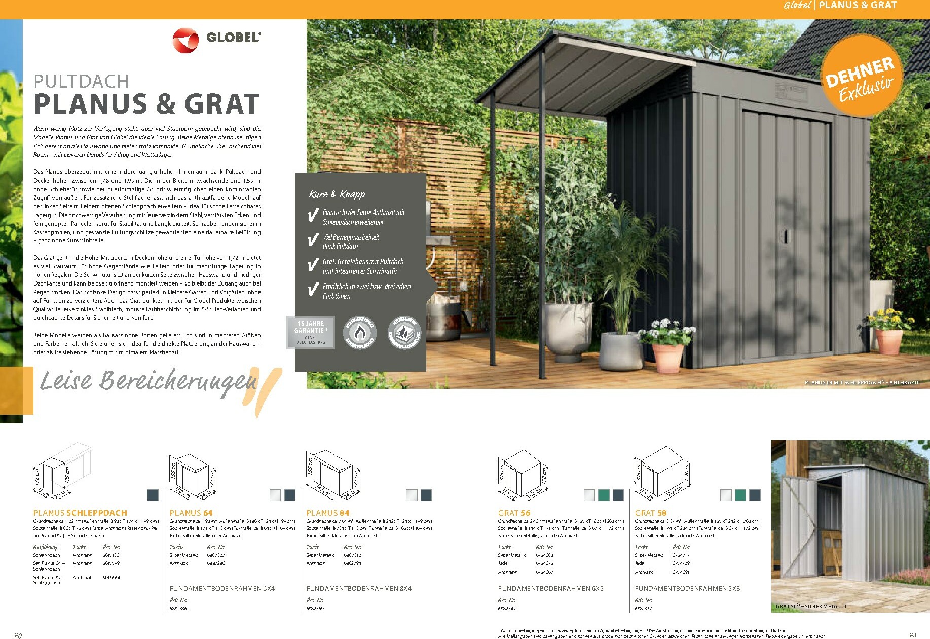 Neben den Gewächshäusern bietet der Katalog auch eine breite Palette an Zubehör und Gartenausstattung. Von Pflanztischen über Regale bis hin zu Fundamentrahmen finden Sie alles, was Sie für eine effiziente und angenehme Gartenarbeit benötigen. Der Dehner Prospekt 01.01.2026 – 31.12.2026 zum Blättern Online Online umfasst auch eine exzellente Auswahl an Metallgerätehäusern von Globel, die für Ordnung und sicheren Stauraum für Ihre Gartengeräte sorgen. Modelle wie „Atlas“, „Saturn“ oder das moderne „Platea“ bieten robuste und wartungsfreie Lösungen in verschiedenen Größen und Designs, die sich harmonisch in Ihren Garten einfügen.
