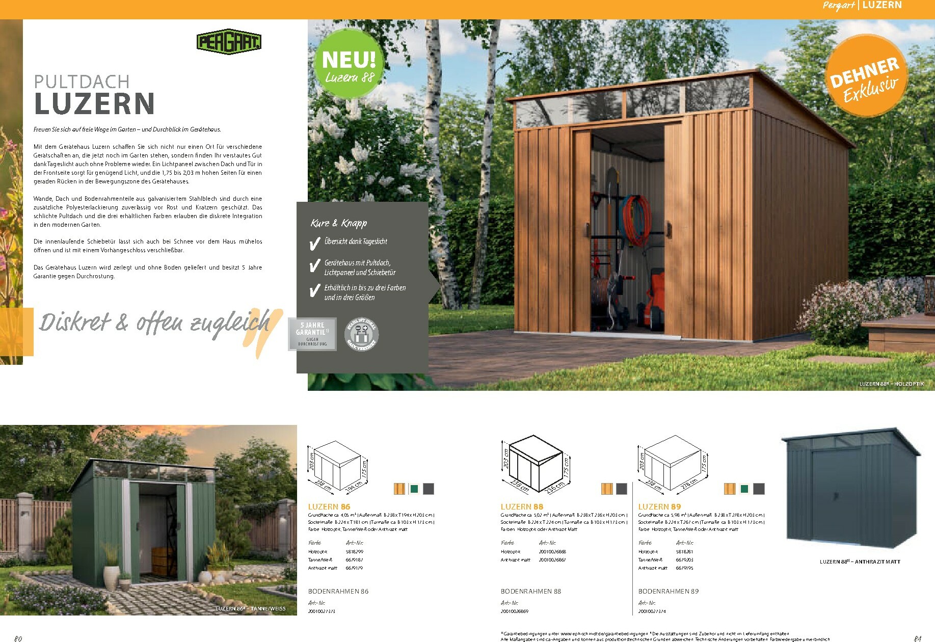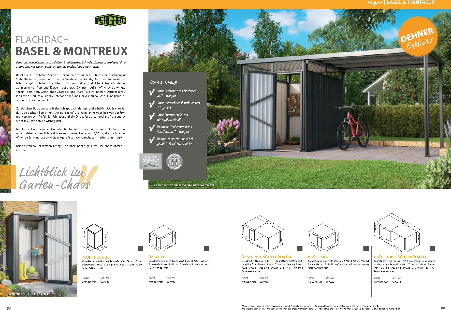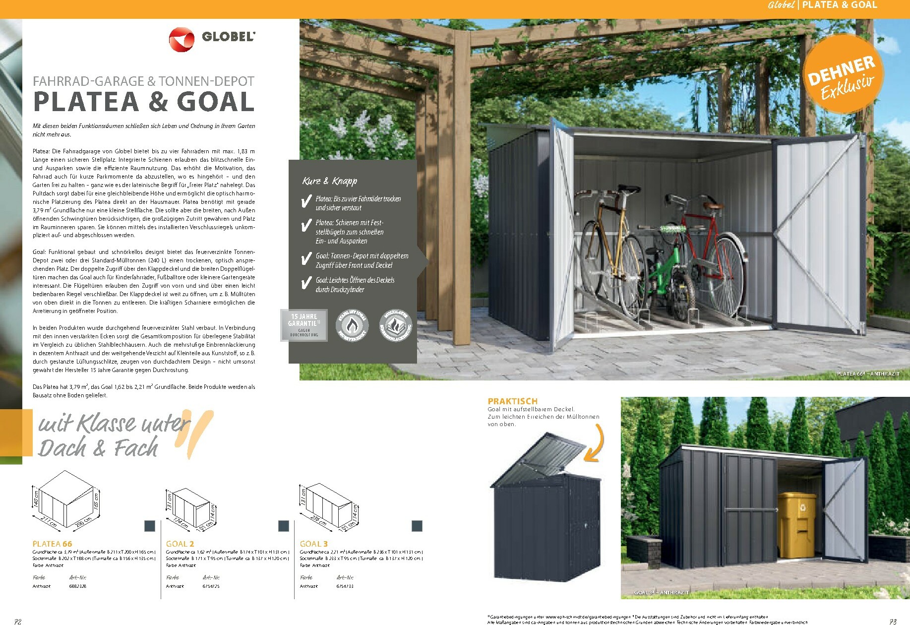 Neben den Gewächshäusern bietet der Katalog auch eine breite Palette an Zubehör und Gartenausstattung. Von Pflanztischen über Regale bis hin zu Fundamentrahmen finden Sie alles, was Sie für eine effiziente und angenehme Gartenarbeit benötigen. Der Dehner Prospekt 01.01.2026 – 31.12.2026 zum Blättern Online Online umfasst auch eine exzellente Auswahl an Metallgerätehäusern von Globel, die für Ordnung und sicheren Stauraum für Ihre Gartengeräte sorgen. Modelle wie „Atlas“, „Saturn“ oder das moderne „Platea“ bieten robuste und wartungsfreie Lösungen in verschiedenen Größen und Designs, die sich harmonisch in Ihren Garten einfügen.