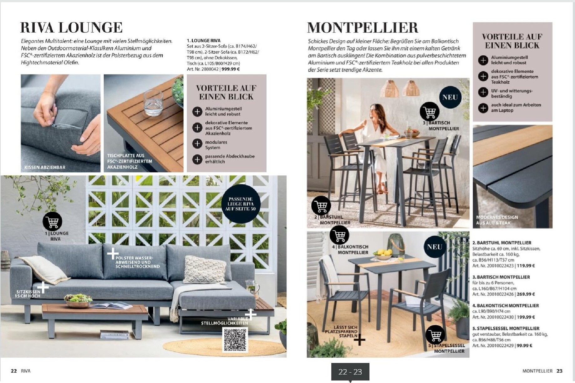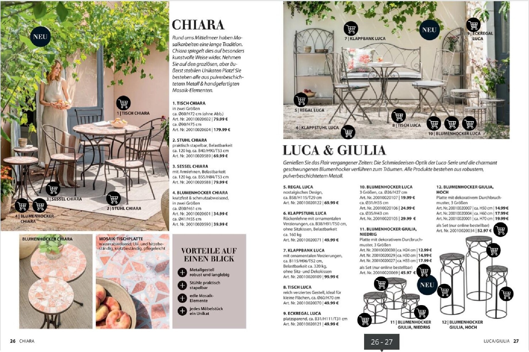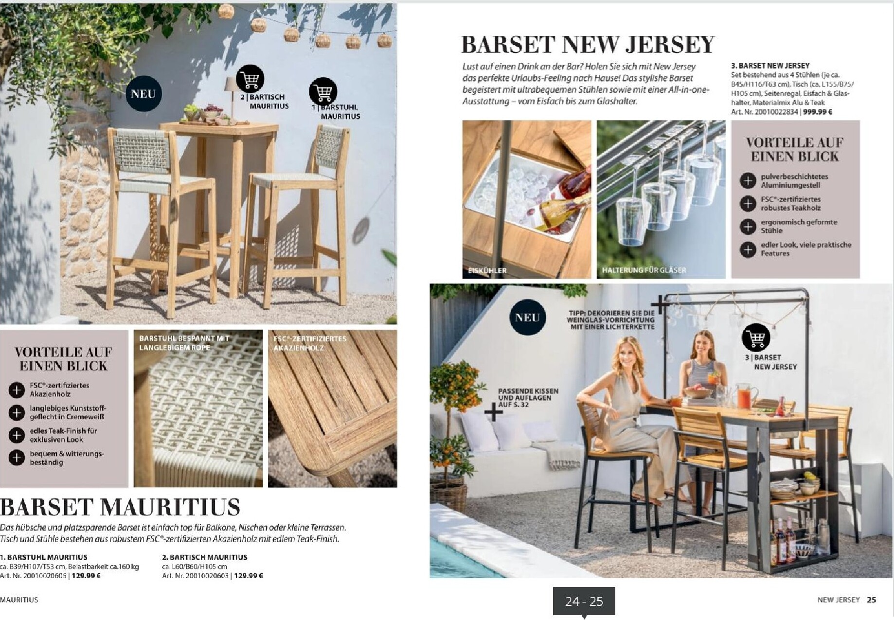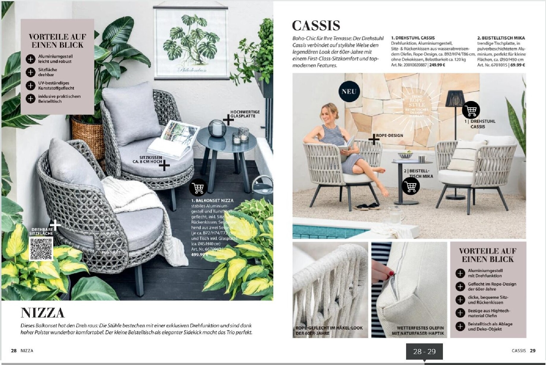 Besonders hervorzuheben ist die elegante Lounge ‚Avignon‘, eine vierteilige Sofa-Landschaft für bis zu fünf Personen, die mit ihrem zeitlosen Design und den bequemen, cremefarbenen Polstern überzeugt. Für 1.299,99 € erhalten Sie ein komplettes Set, das zum Verweilen einlädt. Ebenfalls neu ist die Gartengarnitur ‚Altea‘ für 899,99 €, die mit pulverbeschichtetem Aluminium und abnehmbaren, waschbaren Polstern punktet. Sie schafft eine gemütliche Atmosphäre für kleinere Runden und fügt sich harmonisch in jede Umgebung ein.