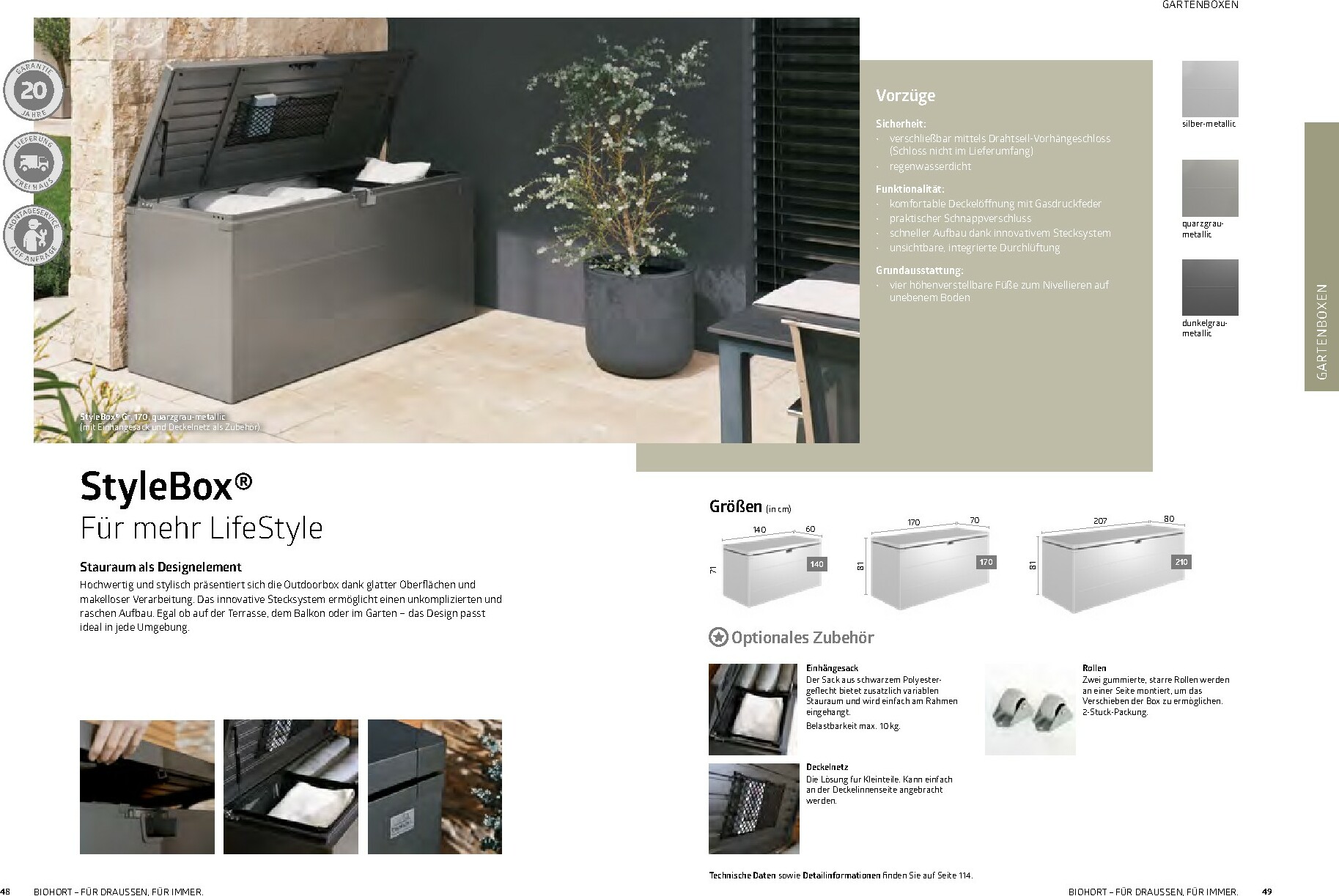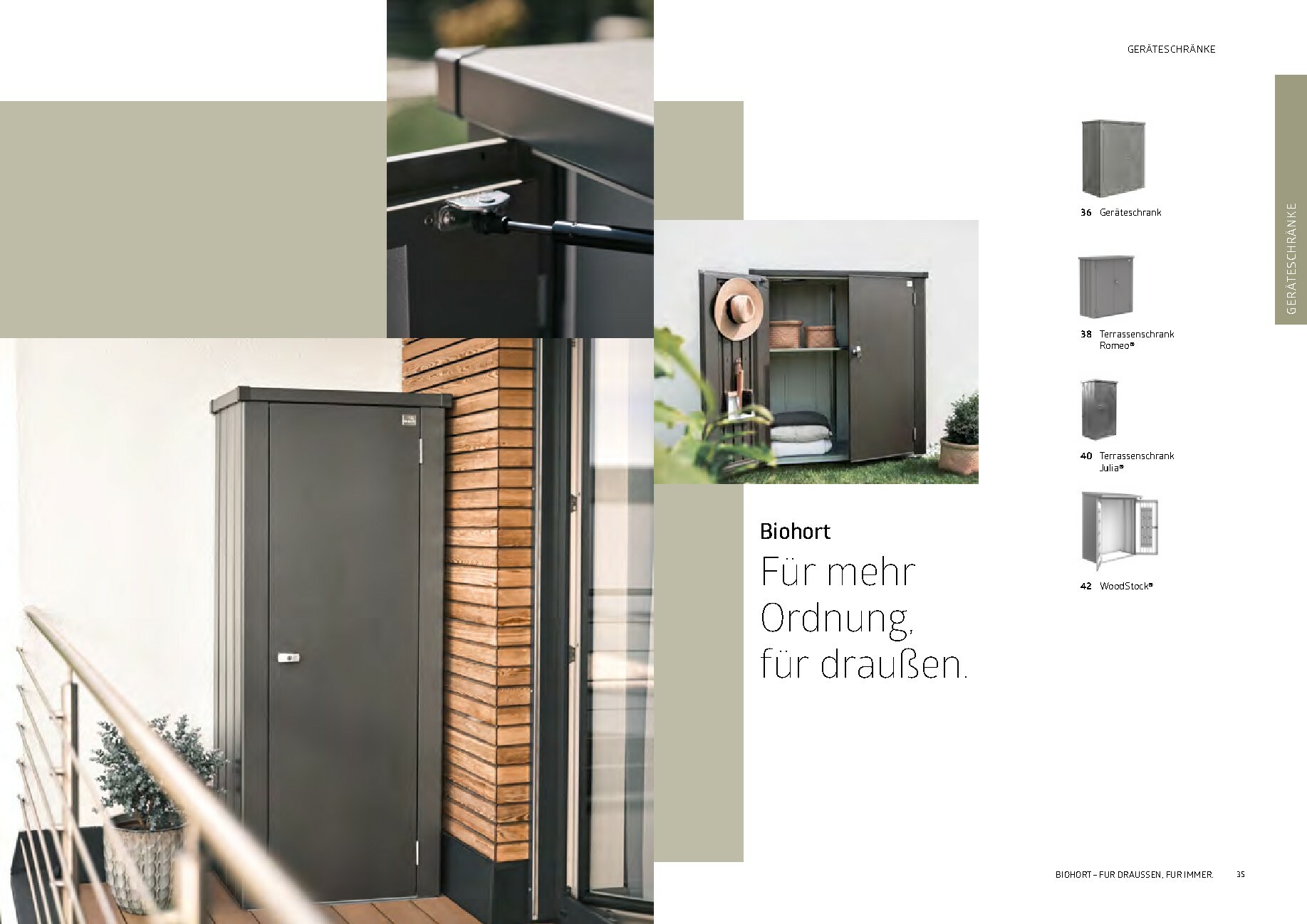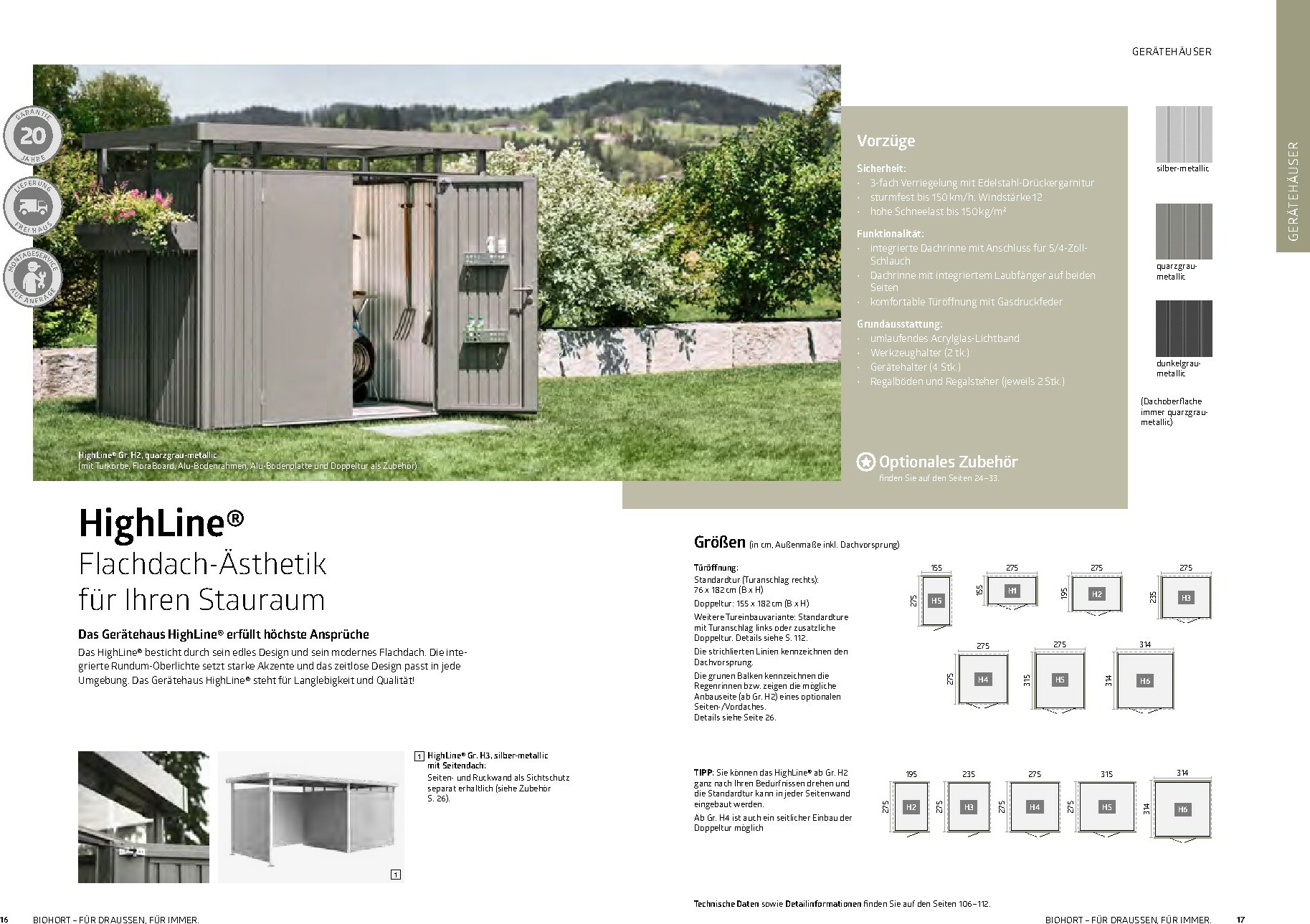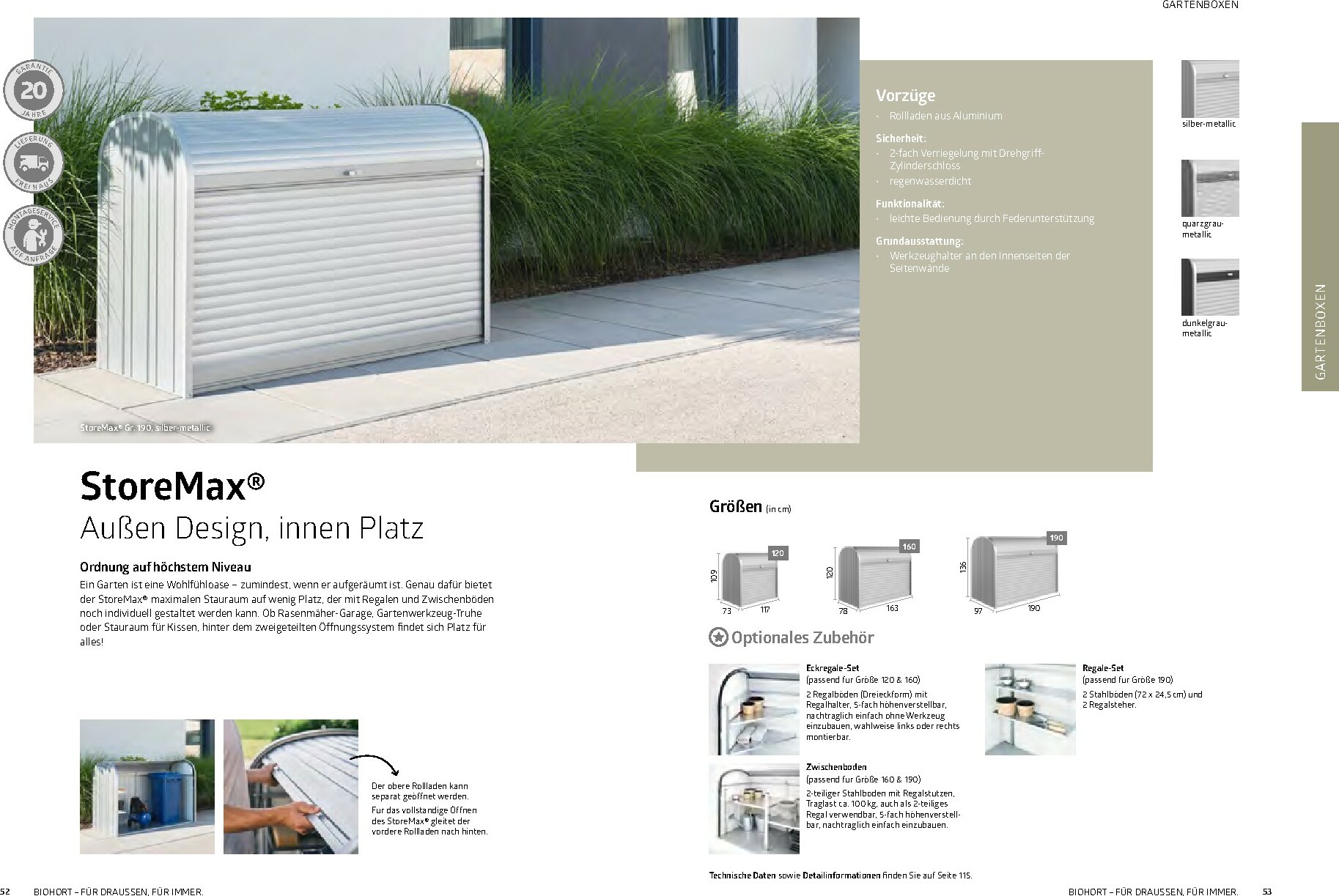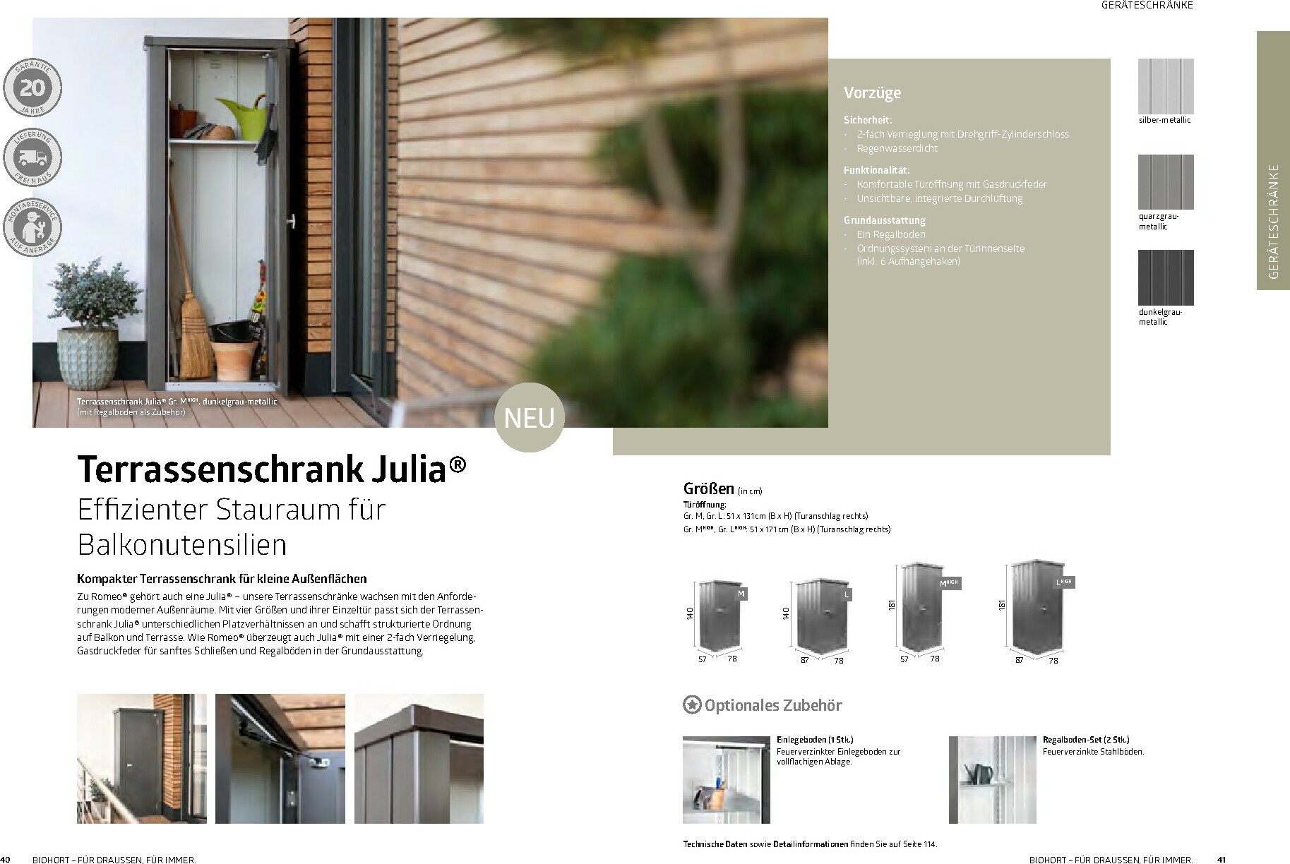 Im Mittelpunkt stehen die bewährten Gerätehäuser wie das auf dem Titel abgebildete Modell HighLine®, das durch sein modernes Design und seine Robustheit besticht. Aber auch andere Serien wie AvantGarde® oder Neo bieten für jeden Geschmack und Platzbedarf die richtige Lösung. Alle Produkte sind „Made in Austria“ und garantieren höchste Qualität und Langlebigkeit. Ergänzt wird das Sortiment durch clevere Stauraumlösungen wie Geräteschränke und vielseitig einsetzbare Gartenboxen, die Werkzeuge und Zubehör sicher vor Wind und Wetter schützen.