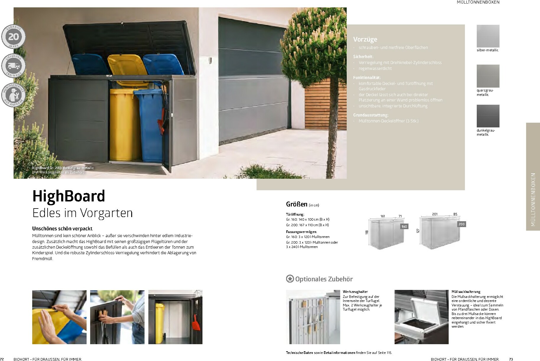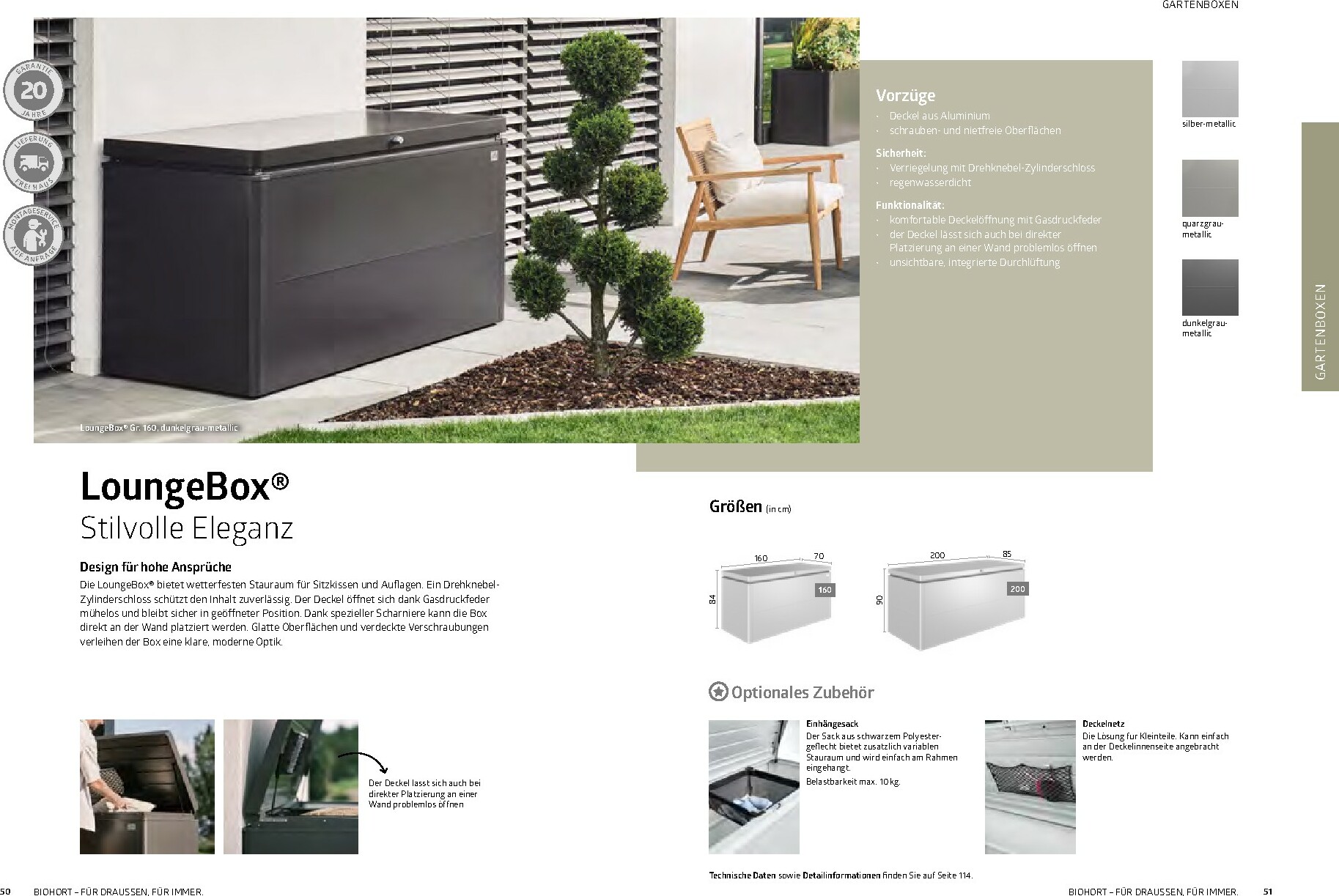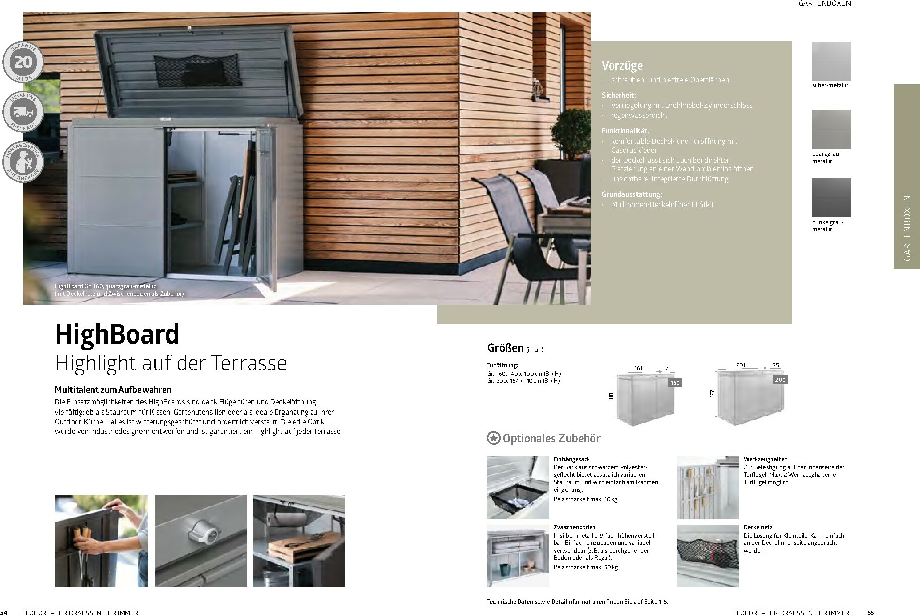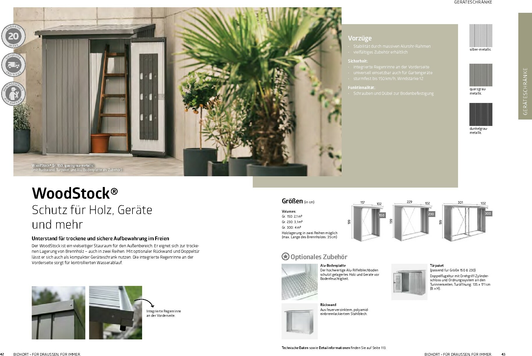 Im Mittelpunkt stehen die bewährten Gerätehäuser wie das auf dem Titel abgebildete Modell HighLine®, das durch sein modernes Design und seine Robustheit besticht. Aber auch andere Serien wie AvantGarde® oder Neo bieten für jeden Geschmack und Platzbedarf die richtige Lösung. Alle Produkte sind „Made in Austria“ und garantieren höchste Qualität und Langlebigkeit. Ergänzt wird das Sortiment durch clevere Stauraumlösungen wie Geräteschränke und vielseitig einsetzbare Gartenboxen, die Werkzeuge und Zubehör sicher vor Wind und Wetter schützen.