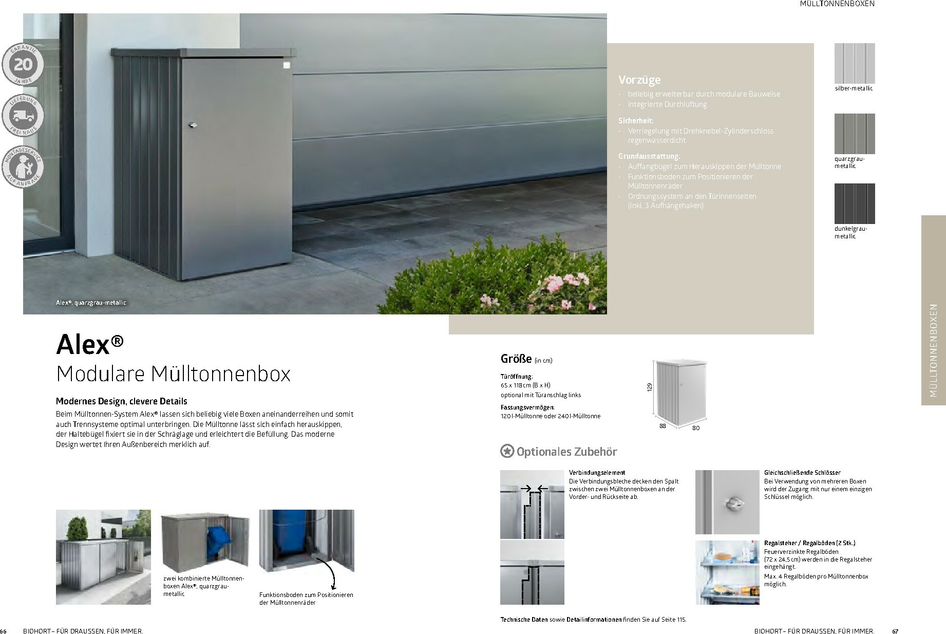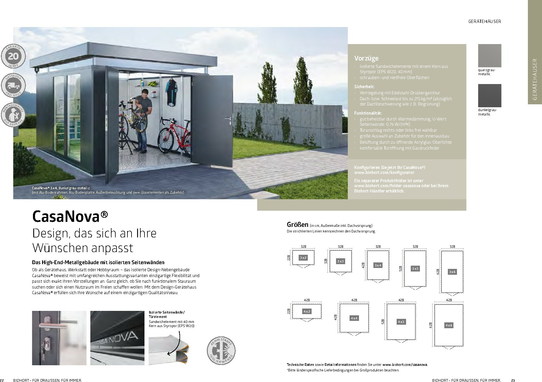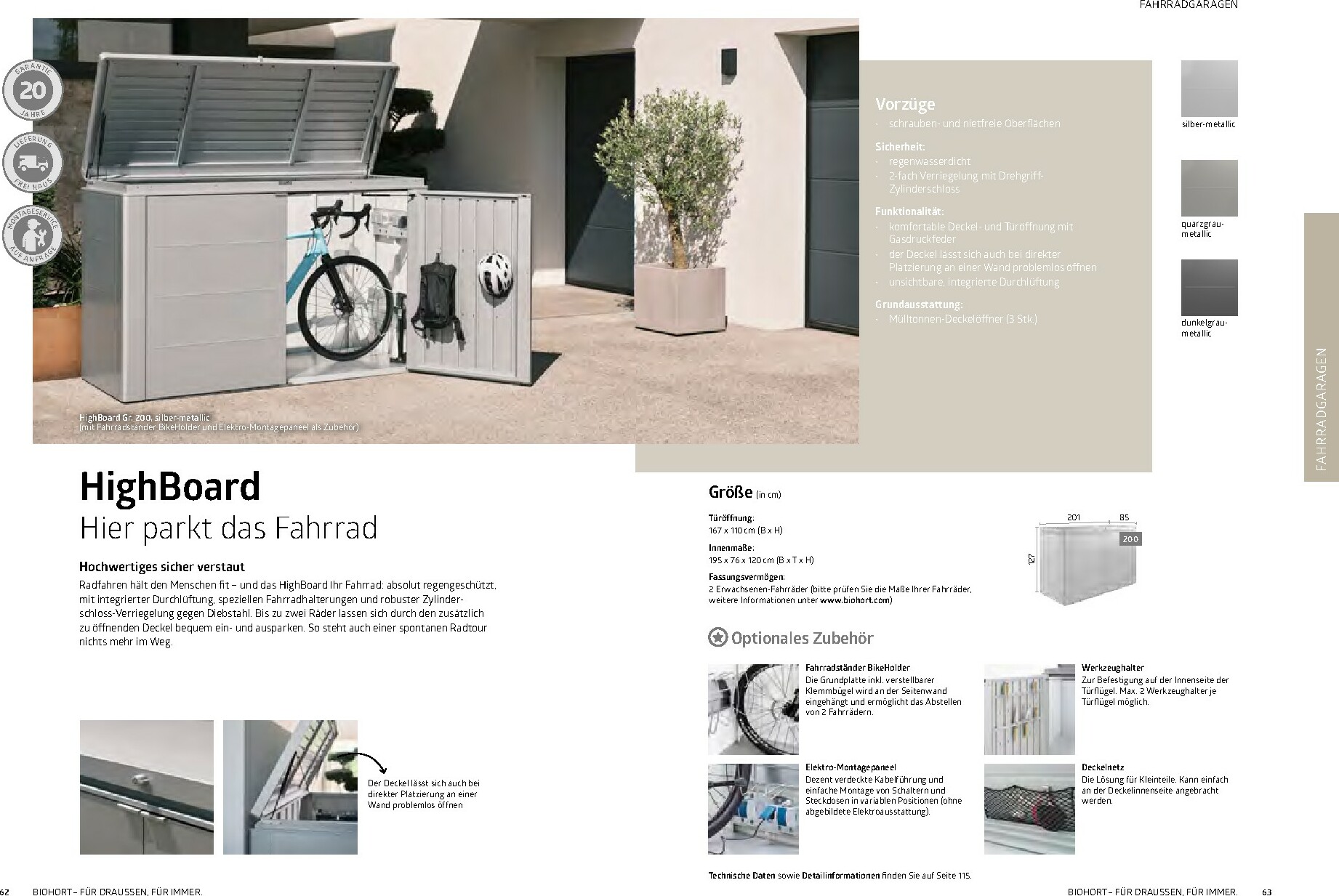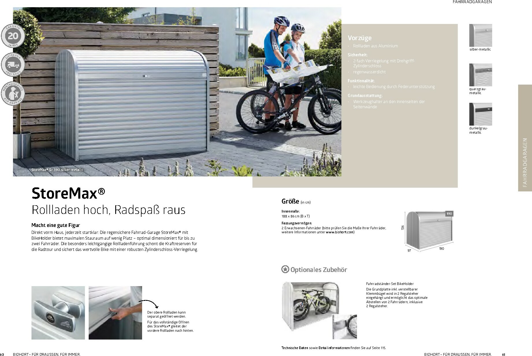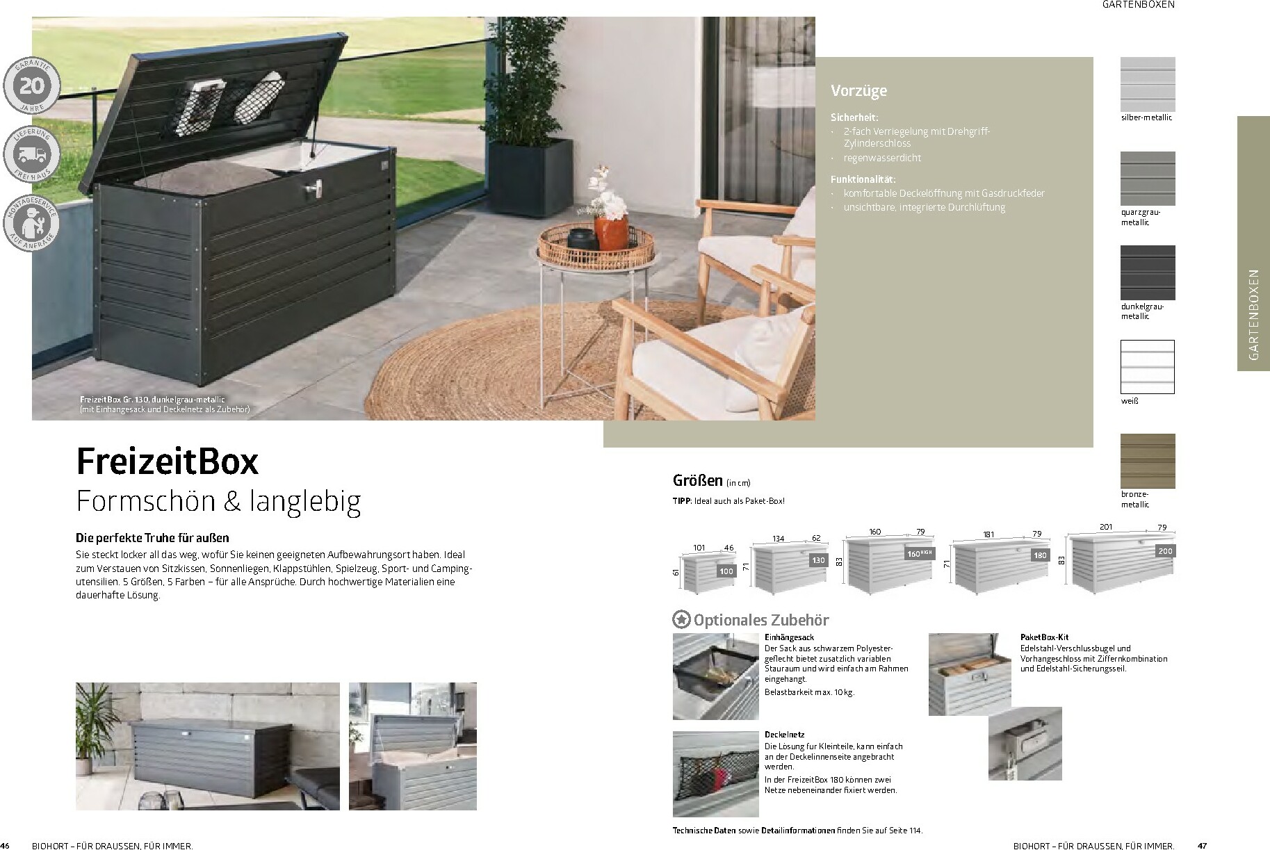 Im Mittelpunkt stehen die bewährten Gerätehäuser wie das auf dem Titel abgebildete Modell HighLine®, das durch sein modernes Design und seine Robustheit besticht. Aber auch andere Serien wie AvantGarde® oder Neo bieten für jeden Geschmack und Platzbedarf die richtige Lösung. Alle Produkte sind „Made in Austria“ und garantieren höchste Qualität und Langlebigkeit. Ergänzt wird das Sortiment durch clevere Stauraumlösungen wie Geräteschränke und vielseitig einsetzbare Gartenboxen, die Werkzeuge und Zubehör sicher vor Wind und Wetter schützen.