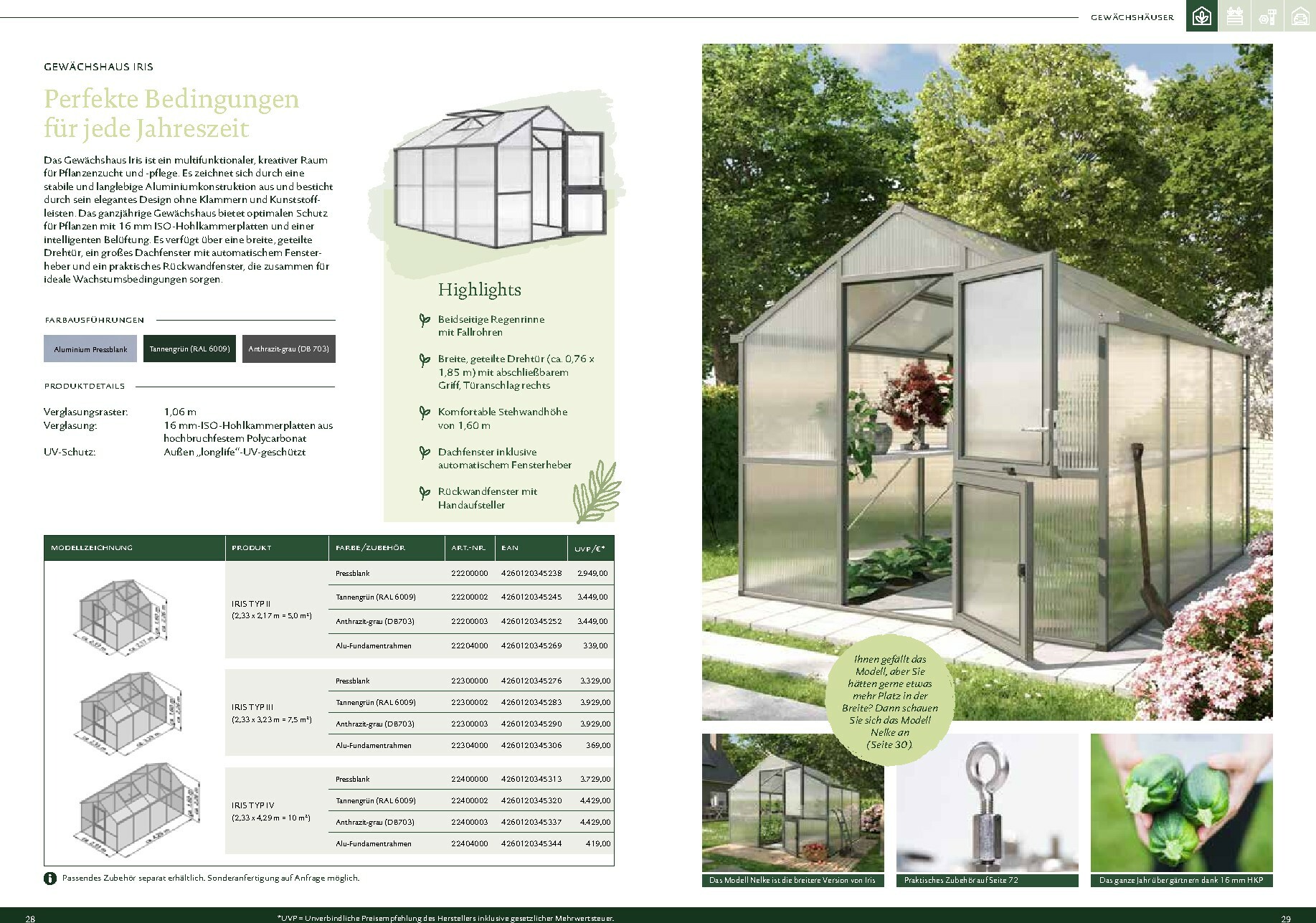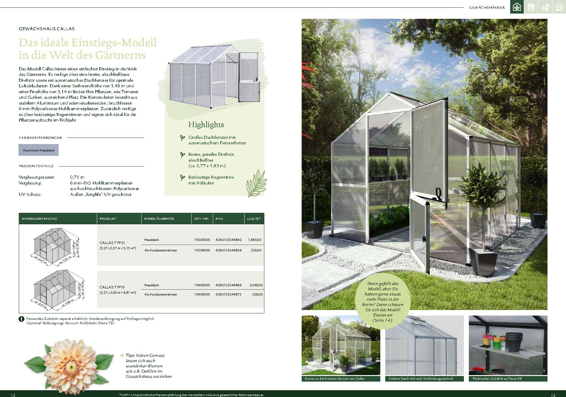 Abgerundet wird das Sortiment durch praktisches Zubehör, von der passenden Einrichtung für Ihr Gewächshaus bis hin zu durchdachten Bewässerungssystemen. Jedes Produkt ist darauf ausgelegt, Ihnen die Gartenarbeit zu erleichtern und den Ertrag zu steigern. Verwandeln Sie Ihren Garten in einen Ort der Entspannung und des Genusses, an dem Sie frische und gesunde Lebensmittel selbst anbauen können. Alle Details und das gesamte Sortiment finden Sie im aktuellen Dehner Prospekt.