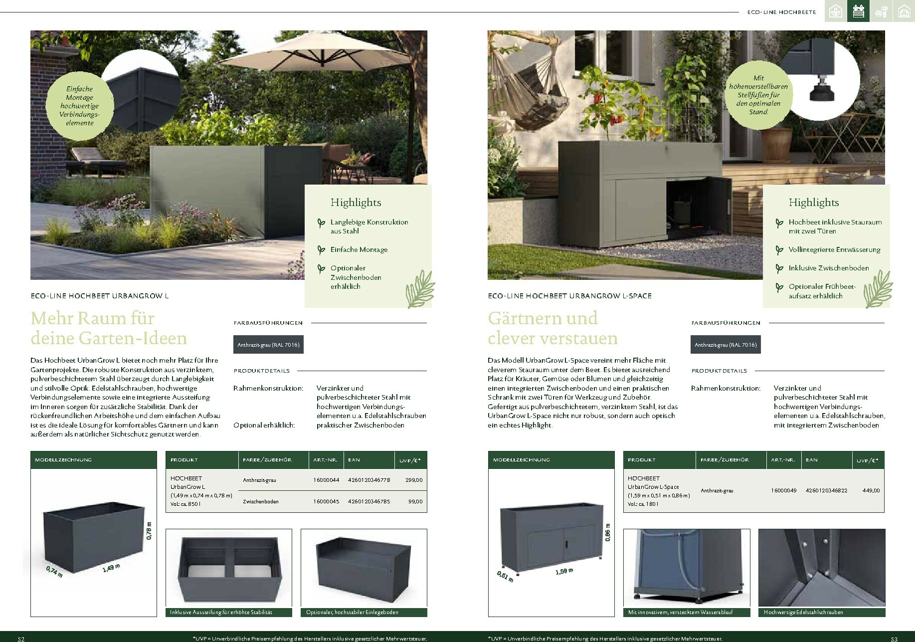 Neben den klassischen Gewächshäusern präsentiert der Katalog auch die moderne ECO-LINE URBANGROW Serie mit stilvollen Hochbeeten. Diese sind nicht nur praktisch für den Anbau von Kräutern und Gemüse, sondern auch ein echter Blickfang mit ihrem eleganten Design. Das modulare System ermöglicht eine flexible Gestaltung und schafft zusätzlichen Stauraum für Gartengeräte. Für alle, die das Besondere suchen, ist der Dehner Prospekt Heute 2026 Werbung die perfekte Inspirationsquelle, um den eigenen Außenbereich in eine funktionale und ästhetische Wohlfühloase zu verwandeln. Der Gewächshaus-Pavillon ‚Peritus‘ kombiniert beispielsweise Schutz für Pflanzen mit einem eleganten Rückzugsort.