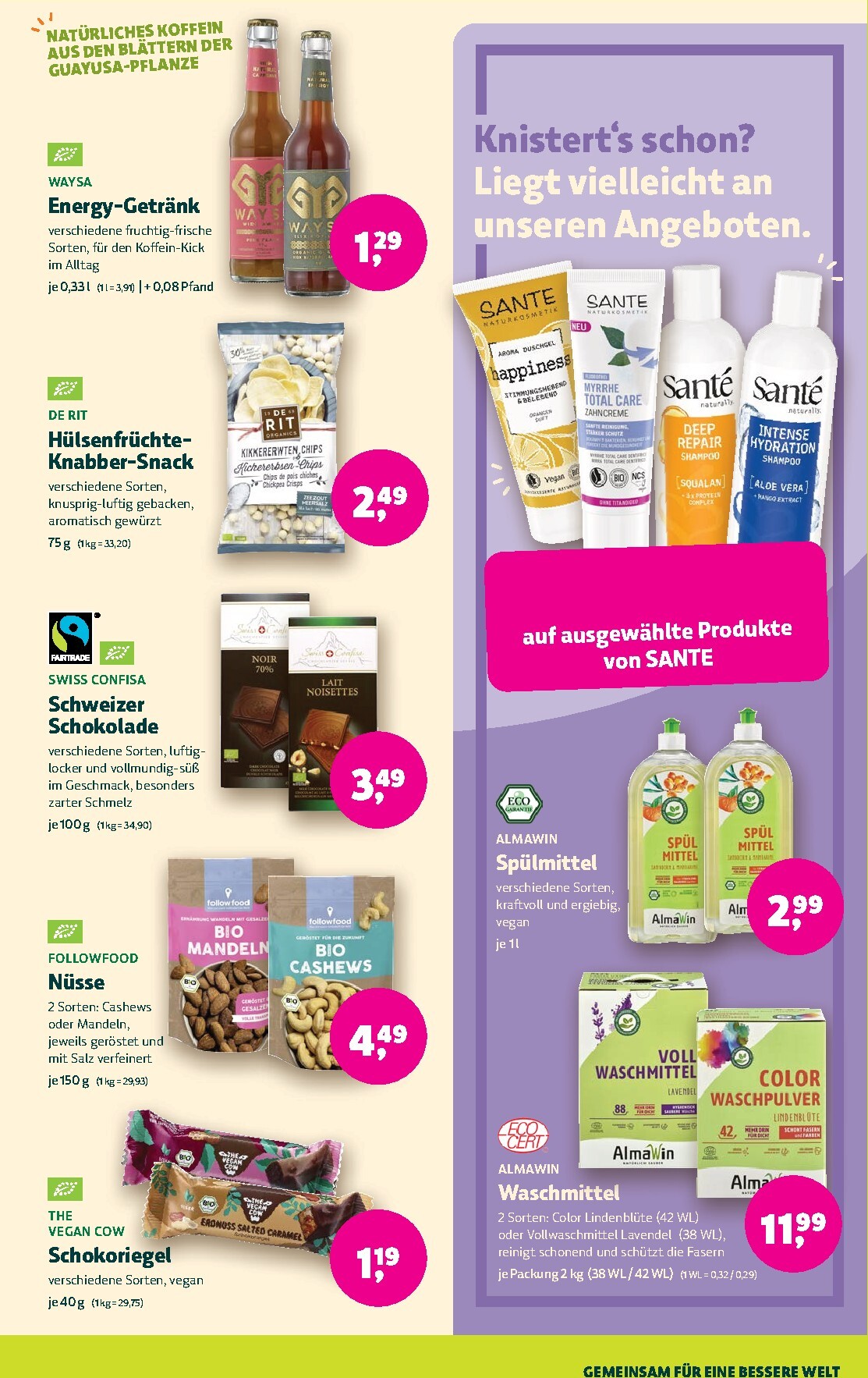 Auf der Titelseite locken bereits unwiderstehliche Angebote wie die Demeter Äpfel für nur 2,49 € pro Kilogramm oder das Freiländer ganze Hähnchen, ideal für ein festliches Sonntagsessen, für nur 0,99 € pro 100 g. Auch für das perfekte Frühstück oder Abendbrot ist gesorgt: Die veganen Brotaufstriche von Allos in verschiedenen Sorten wie „Kürbiskern Gegrillt“ oder „Paprika Trio“ sind für nur 2,00 € im 135/140-g-Glas erhältlich.