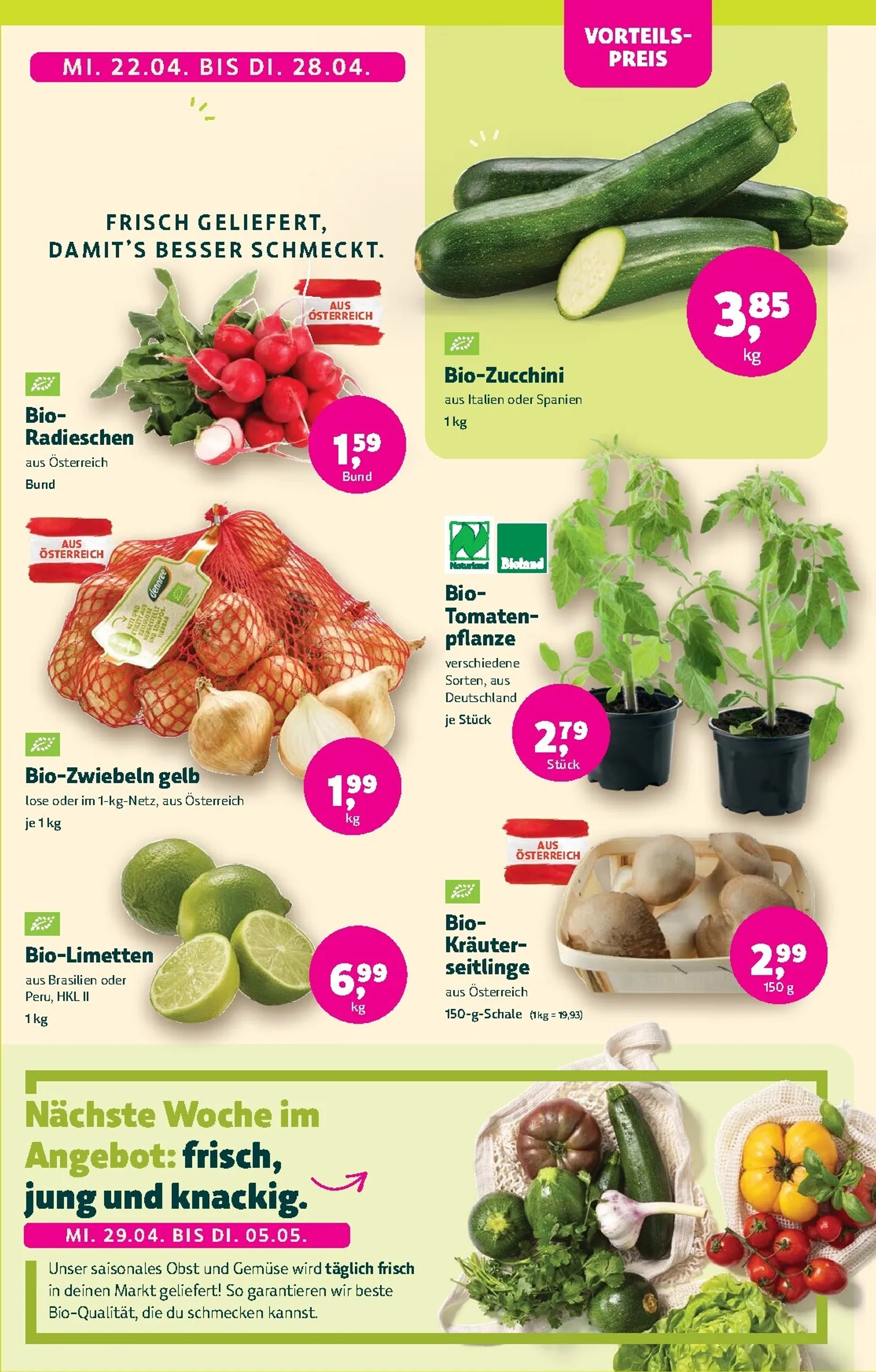In der Obst- und Gemüseabteilung erwarten Sie fantastische Preise. Bio-Bananen gibt es für nur 1,79 € pro Kilogramm. Aus heimischem Anbau stammen knackige Bio-Radieschen für 1,59 € je Bund und gelbe Bio-Zwiebeln für 1,99 € pro Kilo. Auch Bio-Zucchini für 3,85 € pro Kilo sind ideal für leichte Frühlingsgerichte oder als Grillbeilage. Für Hobbygärtner sind die Bio-Tomatenpflanzen für je 2,79 € eine tolle Wahl, um schon bald die eigene Ernte zu genießen.