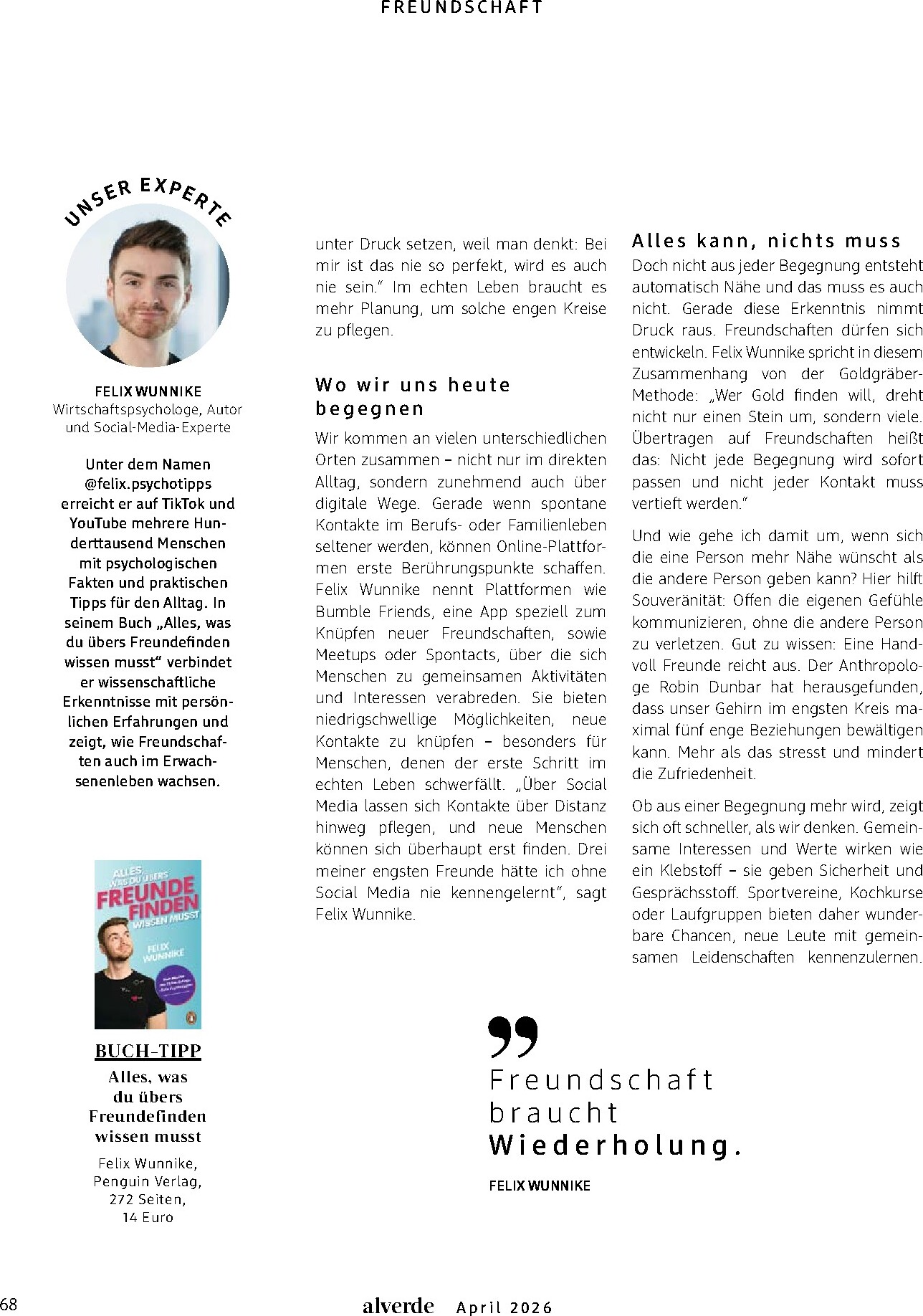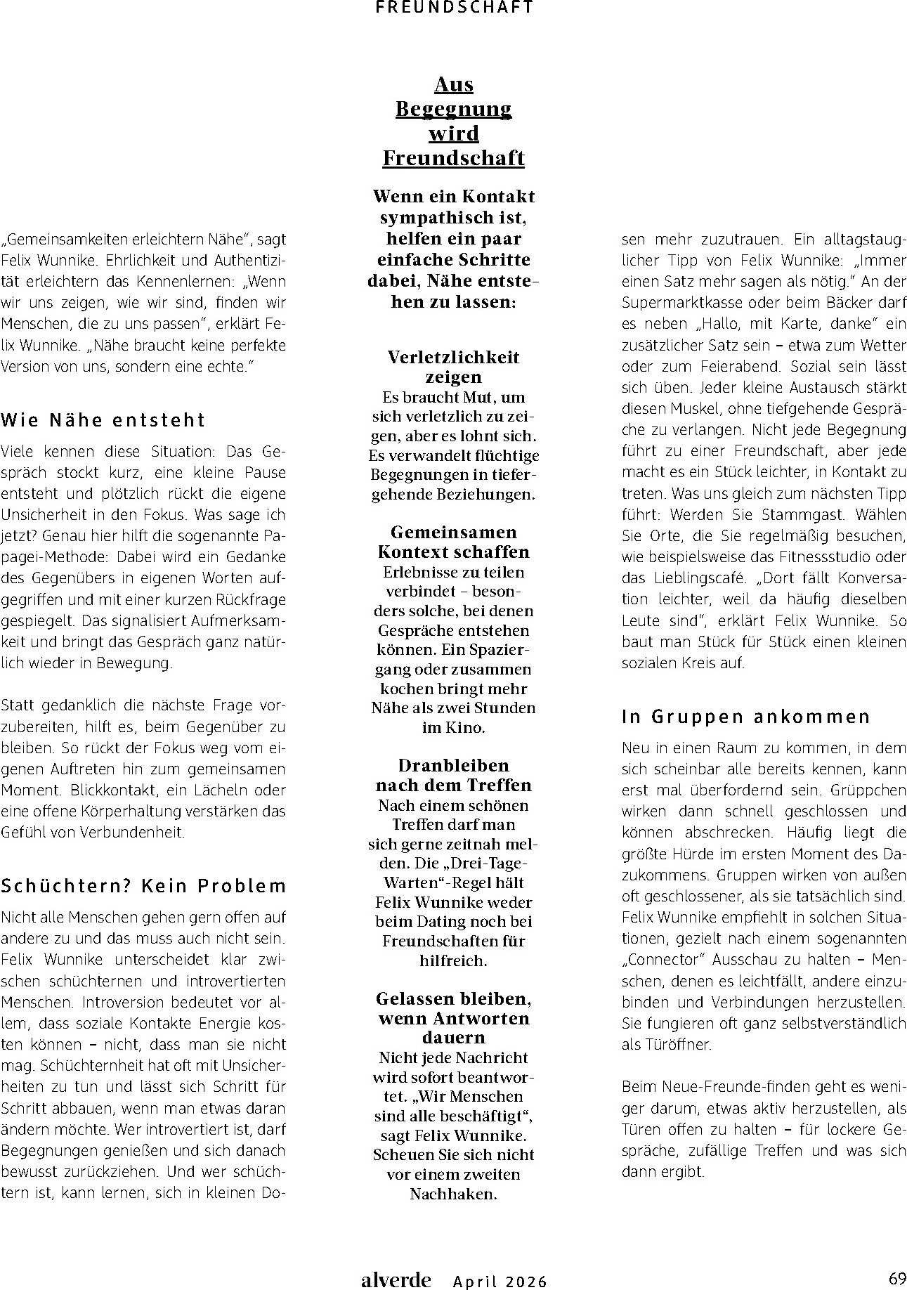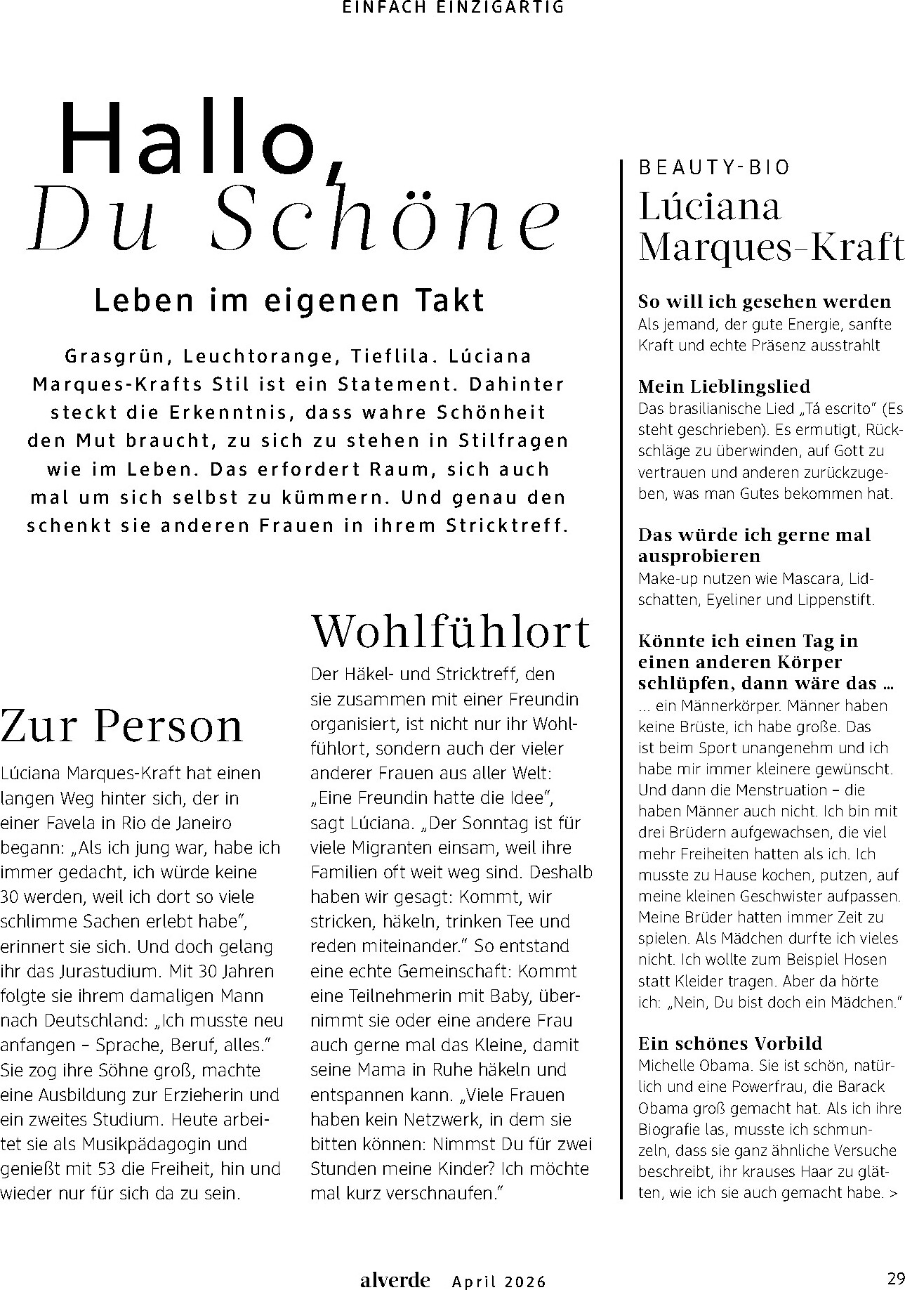 Neben dem bewegenden Interview mit Michaela May widmet sich das Magazin weiteren spannenden Themen. Erfahren Sie alles Wissenswerte über Magnesium und seine vielfältigen Aufgaben im Körper. Für einen frischen Start in den Tag gibt es wertvolle Pflege- und Make-up-Tipps für wache Augen, die müde Blicke im Nu verschwinden lassen. Ein weiterer Artikel gibt Ratschläge, wie man neue Freundschaften knüpfen kann – ein Thema, das besonders nach den langen Wintermonaten an Bedeutung gewinnt. Diese Inhalte machen das alverde Magazin zu einem unverzichtbaren Begleiter für einen bewussten und schönen Frühling.