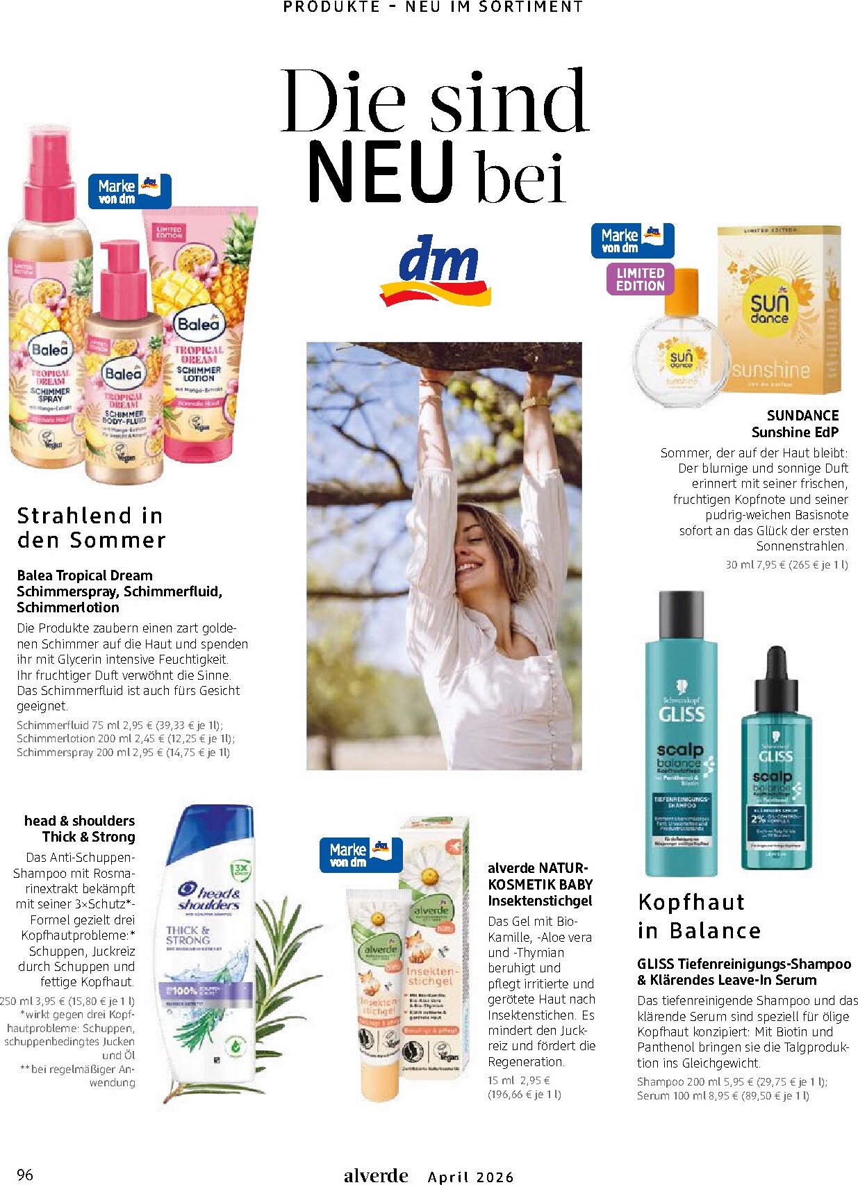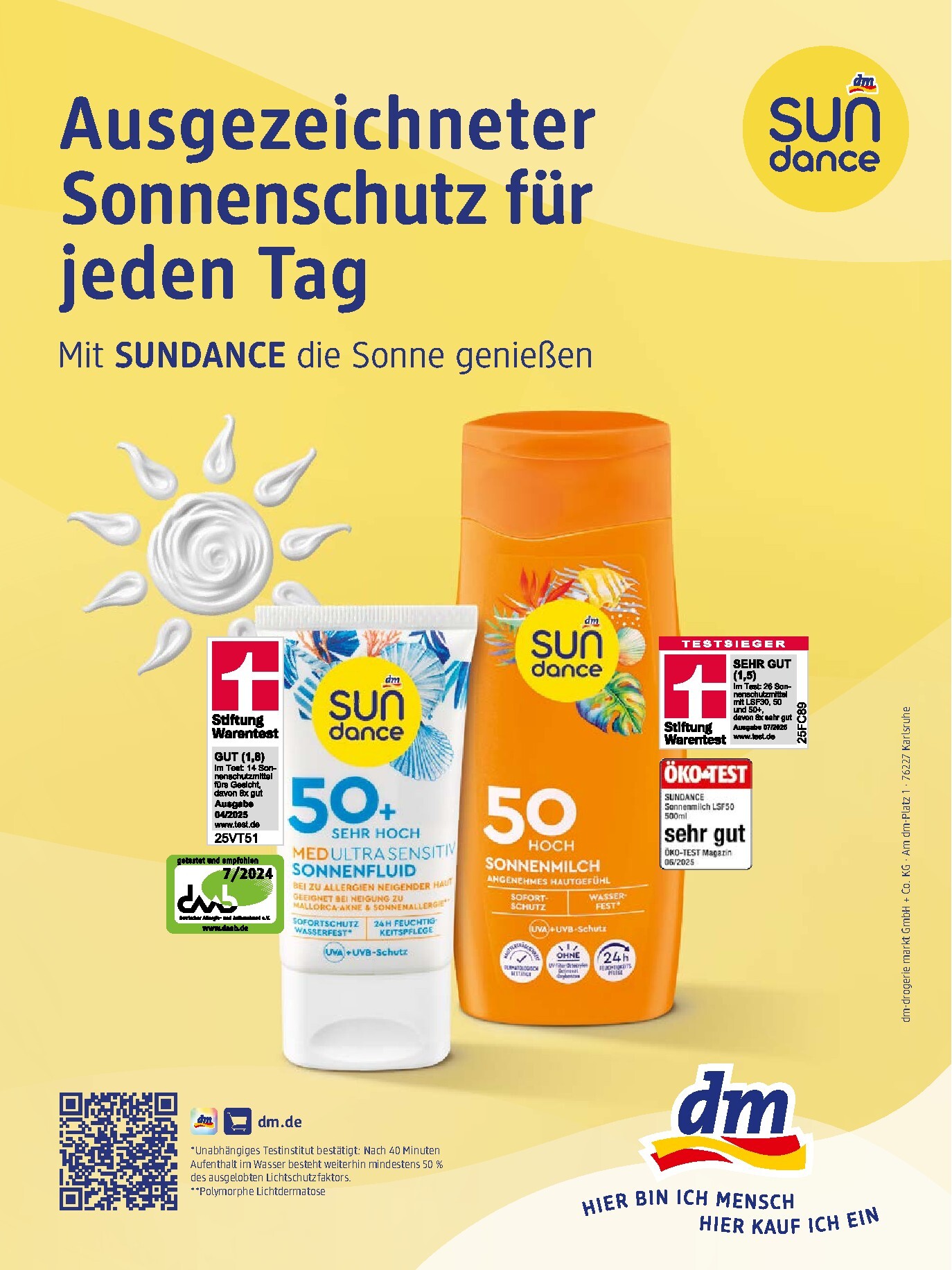 Wenn die ersten Sonnenstrahlen locken, ist der richtige Schutz unerlässlich. dm beweist mit seiner Eigenmarke SUNDANCE, dass hohe Qualität nicht teuer sein muss. Die Produkte wurden von unabhängigen Instituten ausgezeichnet: Das MED Ultra Sensitiv Sonnenfluid LSF 50+ erhielt von Stiftung Warentest die Note „GUT (1,8)“, während die Sonnenmilch LSF 50 von ÖKO-TEST mit „sehr gut“ bewertet wurde. Wer also auf der Suche nach zuverlässigem und hautfreundlichem Sonnenschutz ist, findet im DM Drogerie Prospekt 02.09.2026 – 30.09.2026 Angebote nächste Woche die passenden Produkte für die ganze Familie. Diese Auszeichnungen bestätigen das Vertrauen der Kunden in die dm-Qualität.