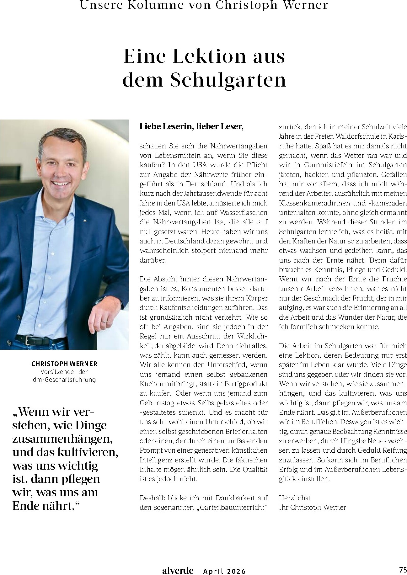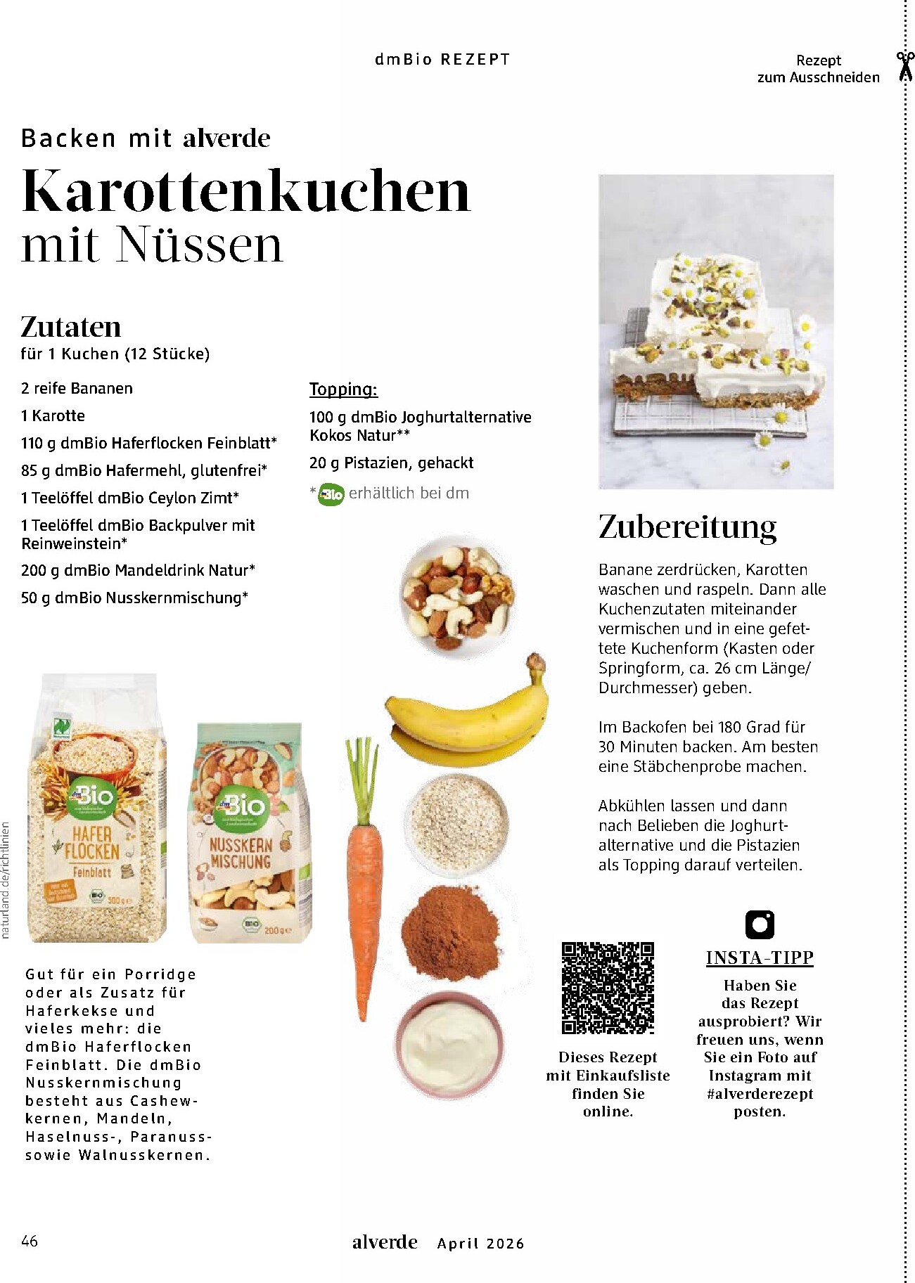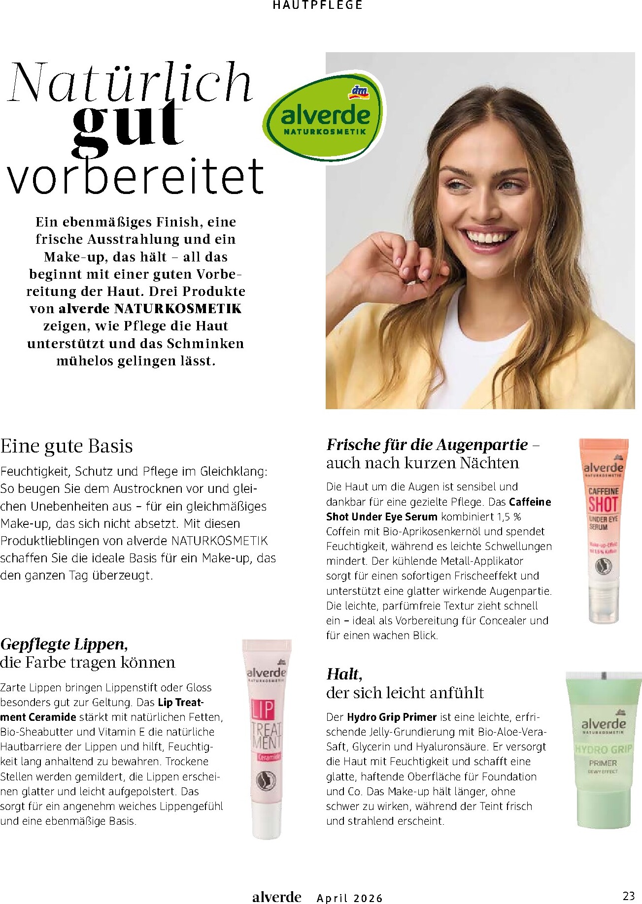 Das dm alverde Magazin für April 2026 läutet den Frühling mit inspirierenden Themen und praktischen Tipps ein. Auf dem Cover strahlt die Schauspielerin Michaela May, die unter dem Motto „Ihre Wurzeln sind ihre Stärke“ über Ehrlichkeit und innere Kraft spricht. Diese Ausgabe ist vollgepackt mit Inhalten, die dazu anregen, die wärmere Jahreszeit bewusst zu genießen und neue Energie zu tanken. Für alle, die nach den besten Angeboten suchen, bietet der DM Drogerie Prospekt 02.09.2026 – 30.09.2026 Angebote nächste Woche eine umfassende Übersicht über die aktuellen Aktionen. Das Magazin selbst ist eine wunderbare Mischung aus Lebensfreude, Porträts und nützlichen Ratschlägen für den Alltag, die perfekt zur aufblühenden Natur passen.