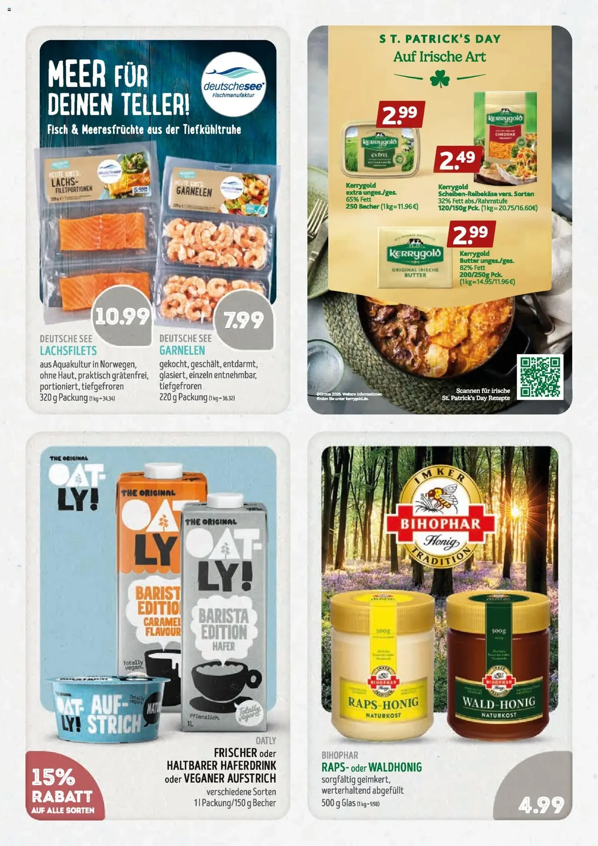 Die Auswahl ist beeindruckend und reicht von frischen Delikatessen bis zu praktischen Tiefkühlprodukten. Starten Sie genussvoll mit Struve's Räucherlachs oder Graved Lachs für nur 4.44€, oder probieren Sie die hausgemachte Struve's Jubel-Bauernmettwurst. Für die schnelle Küche gibt es Dr. Oetker Bistro Baguettes tiefgefroren mit 35% Rabatt für 1.49€, und auch die beliebte Dr. Oetker Ristorante Pizza ist mit satten 43% Ersparnis für nur 1.99€ im Angebot. Die Weihenstephan Frische Butter ist mit unglaublichen 50% Rabatt für 1.29€ ein echtes Highlight, und Knorr Fix-Produkte sind mit 67% Rabatt für nur 0.39€ unschlagbar günstig.