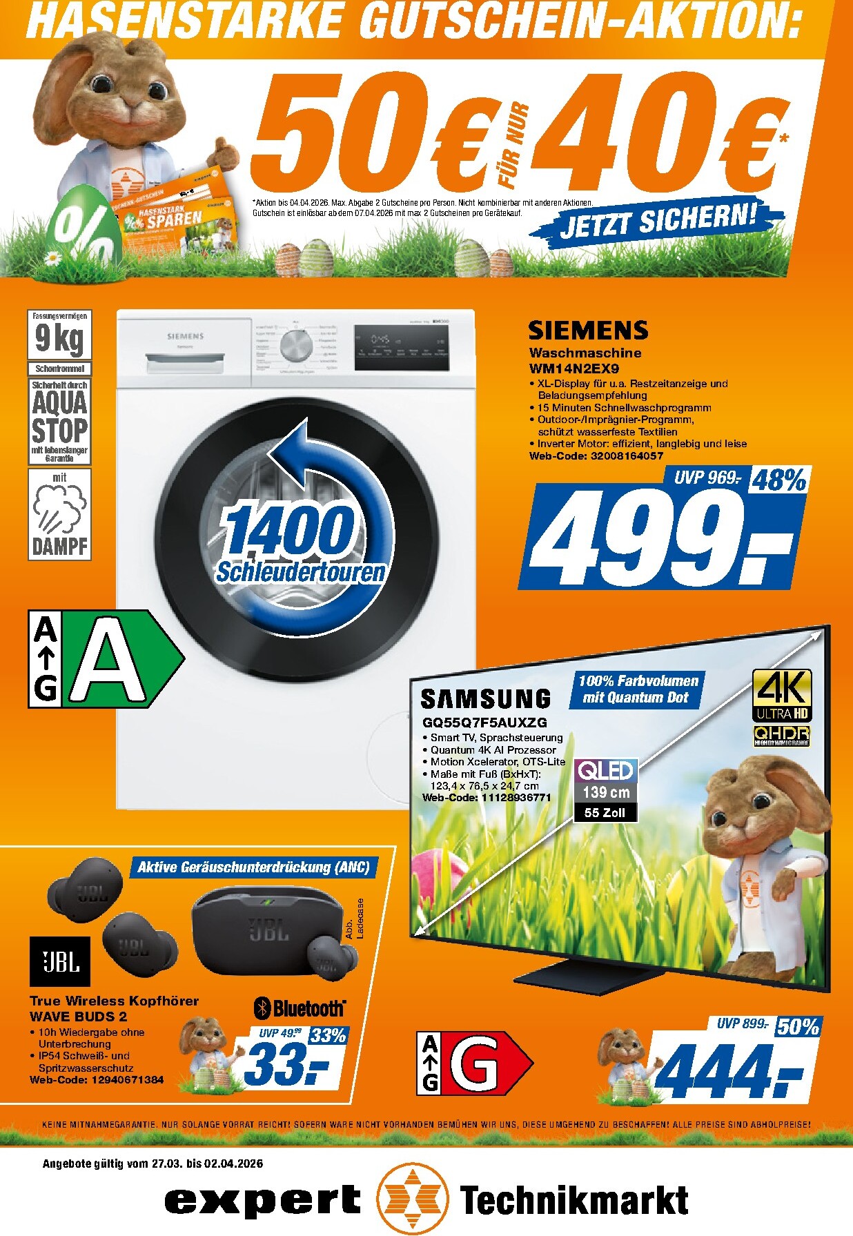 Pünktlich zum Osterfest lockt Expert mit der „Hasenstarken Gutschein-Aktion“, bei der Sie Technik-Träume wahr werden lassen können. Sichern Sie sich einen 50€-Gutschein für nur 40€ und sparen Sie zusätzlich bei Ihrem nächsten Einkauf. Der aktuelle Expert Prospekt 27.03.2026 – 02.04.2026 Blätterkatalog präsentiert Ihnen eine exzellente Auswahl an Elektronik-Highlights zu unschlagbaren Preisen. Diese Aktion ist die perfekte Gelegenheit, um hochwertige Geräte für Haushalt und Unterhaltung zu erwerben und dabei clever zu sparen. Die Angebote sind zeitlich begrenzt, also zögern Sie nicht und entdecken Sie die besten Deals.