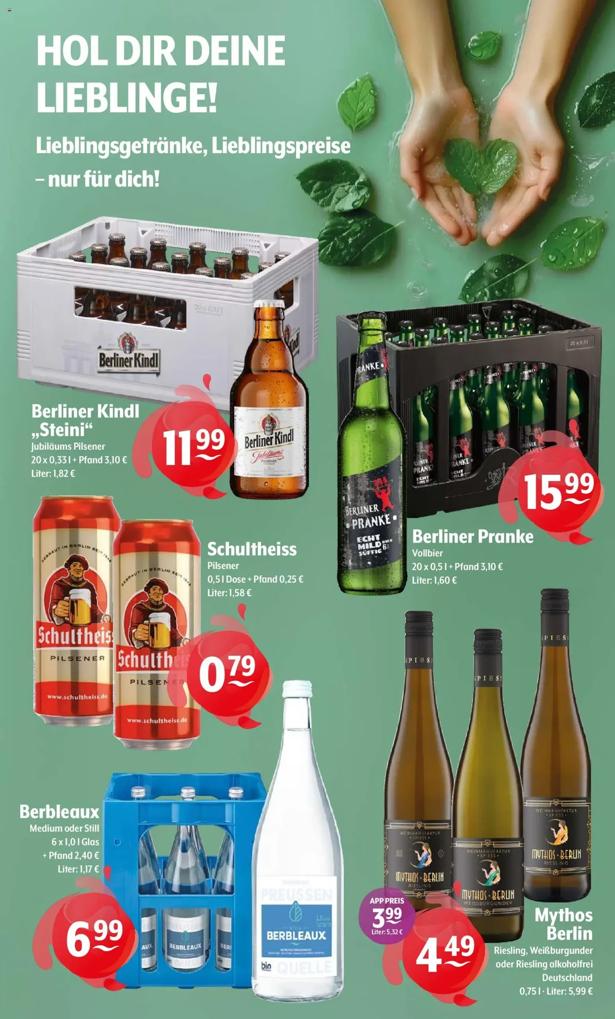 Eine große Auswahl an Mineralwässern rundet das Angebot ab, darunter Lausitzer Classic, Medium oder Naturell für 5.99€ und Adelholzener Classic, Naturell oder Sanft für nur 3.99€. Auch S.Pellegrino Natürliches Mineralwasser für 5.99€ ist Teil der Aktion. Verpassen Sie nicht diese Gelegenheit, sich mit Ihren Lieblingsgetränken einzudecken. Entdecken Sie alle aktuellen Schnäppchen und planen Sie Ihren Einkauf noch heute. Für eine vollständige Übersicht aller Angebote klicken Sie hier: Alle Getranke Hoffmann Prospekte