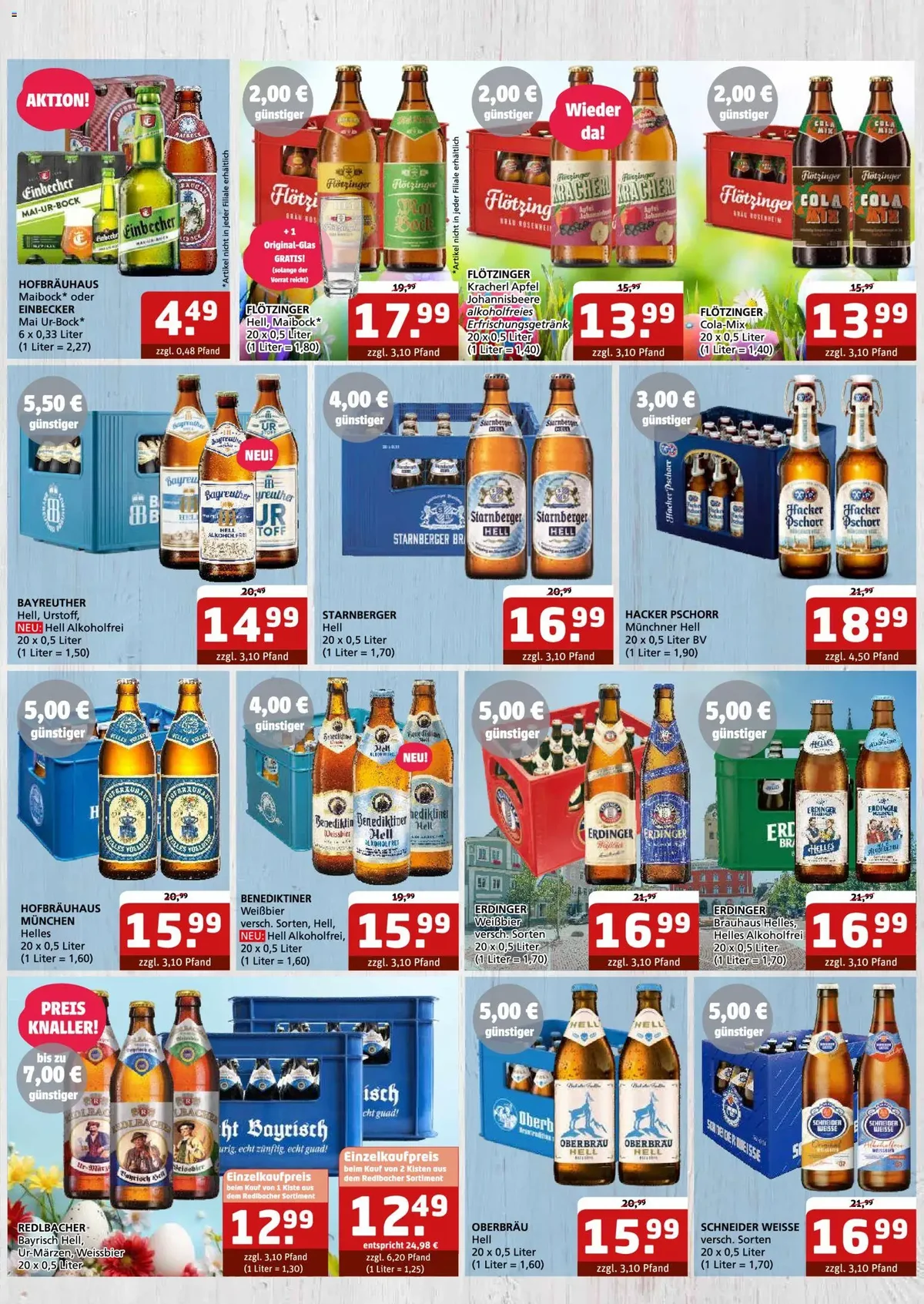 Besonders hervorzuheben sind die Bierangebote: So gibt es KROMBACHER in verschiedenen Sorten (20 x 0,5 Liter) für nur 12.99 €, inklusive eines GRATIS Sixpacks Krombacher Pils. Auch BECK'S Pilsener oder Blue Alkoholfrei (20 x 0,5 Liter) ist mit 12.99 € attraktiv. Für Pils-Liebhaber ist RADEBERGER PILSNER für unschlagbare 8.99 € erhältlich, während HASSERÖDER (20 x 0,5 Liter) für 9.99 € lockt. International wird es mit KOZEL Premium Lager oder Dunkel für 13.99 €. Nicht zu vergessen sind die Softdrinks: COCA-COLA, FANTA und SPRITE (12 x 1,0 Liter PET) sind für 11.99 € im Angebot. Auch für die Hydration ist gesorgt: GEROLSTEINER Sprudel oder Medium (12 x 1,0 Liter PET) kostet nur 6.99 €.