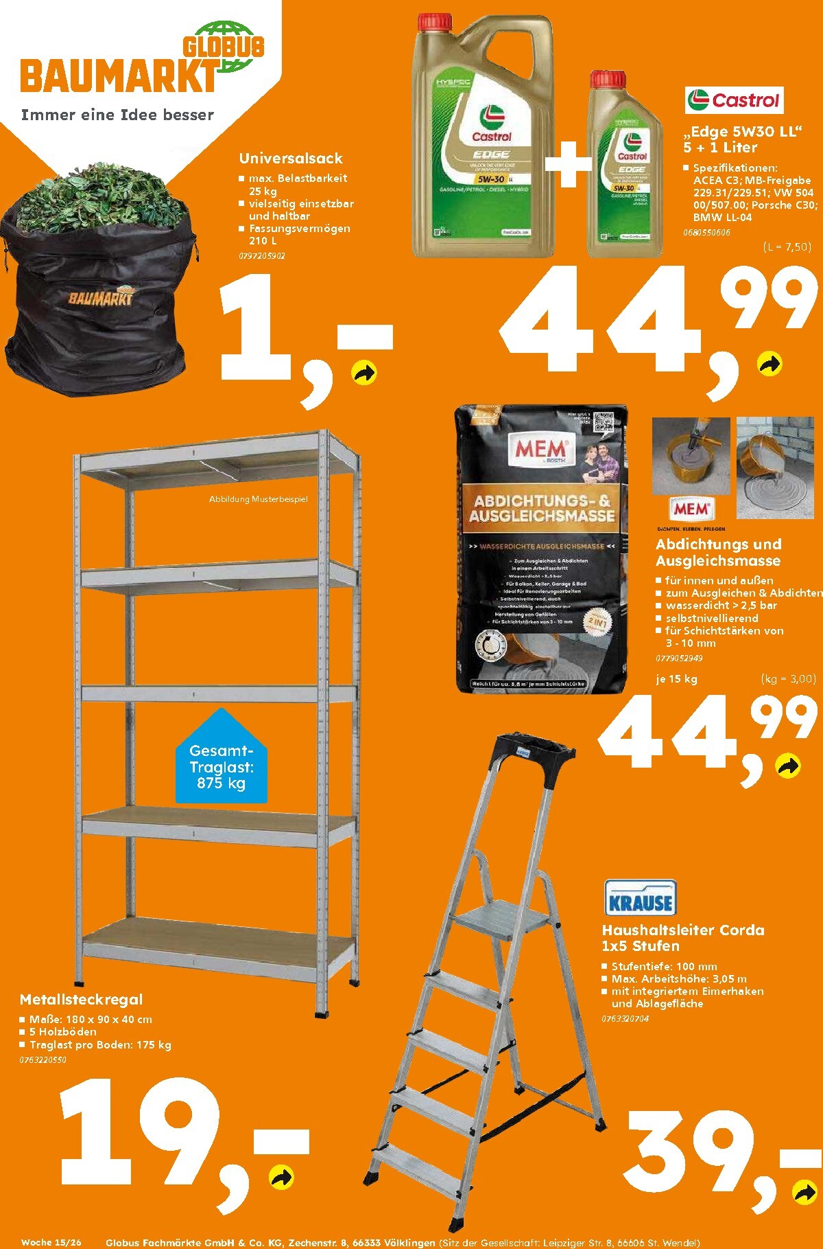 Auch für Heimwerker und Autofahrer gibt es starke Deals. Ein stabiles Metallsteckregal mit einer beeindruckenden Traglast von 875 kg ist für nur 19 Euro zu haben – perfekt für Ordnung in Keller oder Garage. Für sicheres Arbeiten in der Höhe sorgt die Krause Haushaltsleiter mit fünf Stufen für 39 Euro. Autofahrer profitieren vom Castrol Edge Motoröl-Set für 44,99 Euro. Diese und viele weitere Angebote beweisen die Vielfalt und die attraktiven Preise, die Sie im aktuellen Globus Baumarkt Prospekt finden.