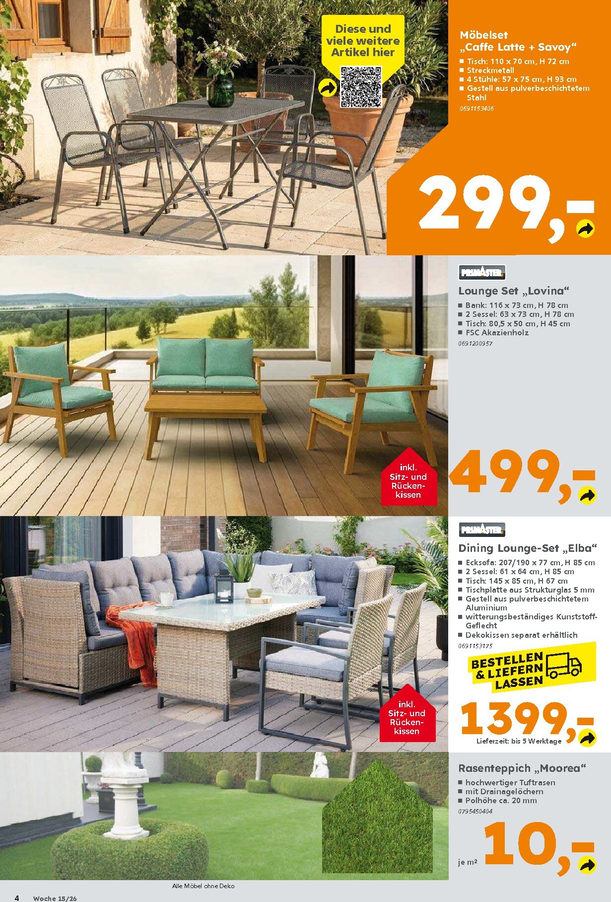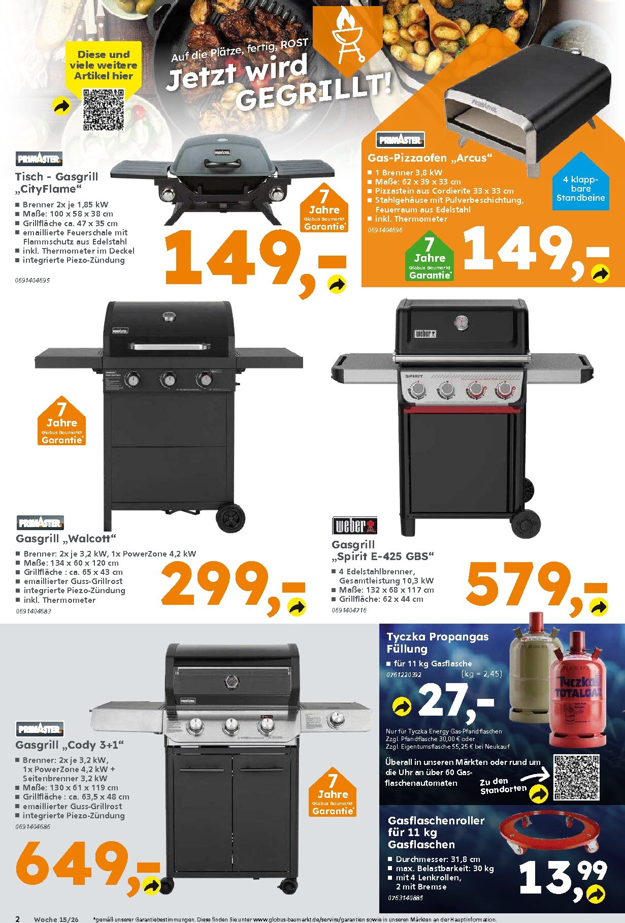 Für anspruchsvollere Grillmeister gibt es ebenfalls attraktive Optionen. Der Primaster Gasgrill „Walcon“ mit zwei leistungsstarken Brennern steht für 299 Euro bereit, während das Premium-Modell, der Weber Gasgrill „Spirit II E-425 GBS“ mit vier Edelstahlbrennern, für 579 Euro zu haben ist. Auch Liebhaber von Holzkohle kommen nicht zu kurz: Der klassische Weber Holzkohlegrill „Original Kettle 47“ ist auf 109 Euro reduziert. Passend dazu gibt es den 10-kg-Sack Favorit Grill-Holzkohle für nur 9,99 Euro. Und für den perfekten Pizzaabend im Freien sorgt der Gas-Pizzaofen „Arcus“ für nur 149 Euro.