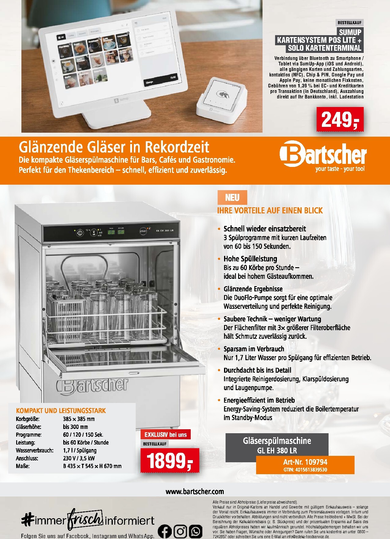 Auch für den täglichen Bedarf und die professionelle Ausstattung ist gesorgt. Die ultrahocherhitzte Milram Schlagsahne mit 30 % Fett gibt es im 1000g Pack für nur 2,79 €. Praktische Helfer für den Betrieb oder Zuhause, wie die Leifheit Wäschespinne Linomatic 500 Easy für 74,99 €, runden das Sortiment ab. Ein besonderes Highlight für Gastronomen ist die Bartscher Gläserspülmaschine GL EH 380 LR, die Effizienz und Sauberkeit garantiert. Verpassen Sie keine dieser Gelegenheiten und entdecken Sie alle weiteren Top-Angebote im aktuellen Handelshof Prospekt.