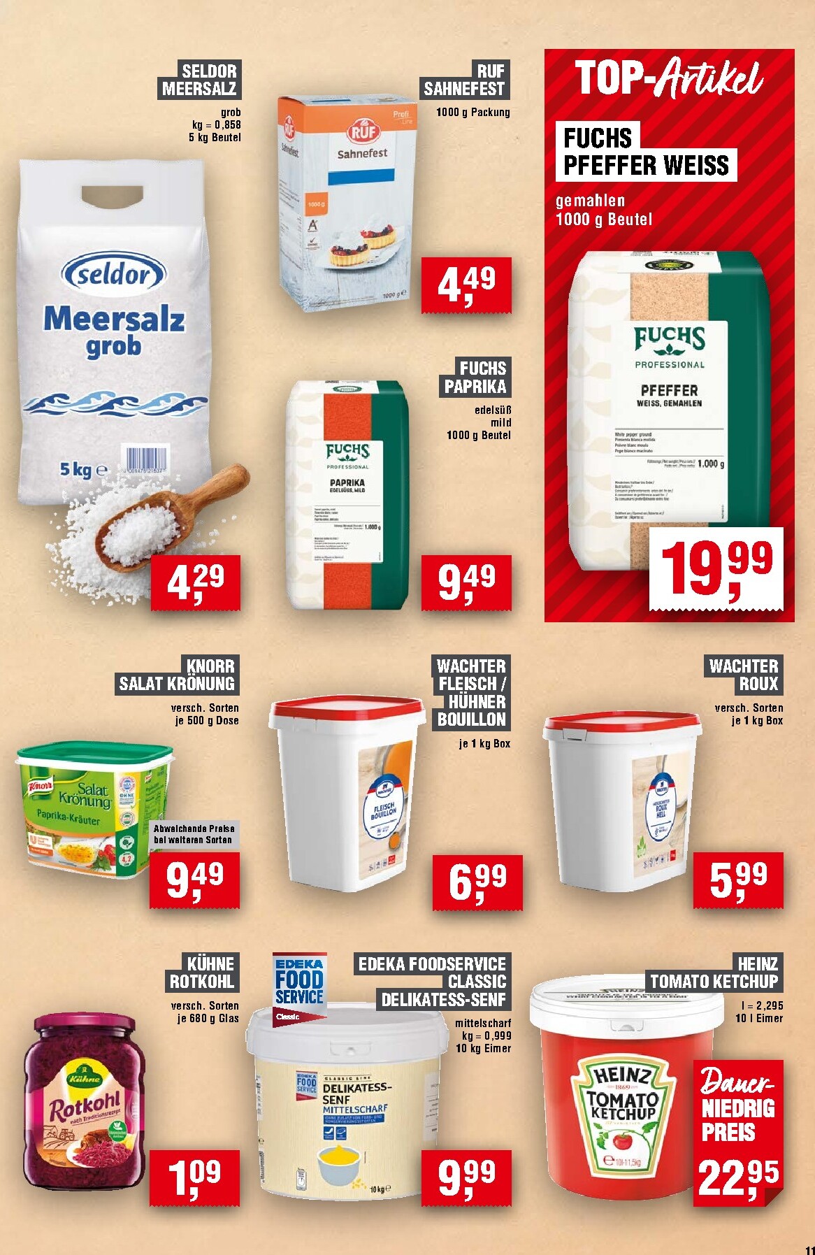 Die Frischeabteilung lockt mit saftigem Jungschaflachs aus Neuseeland für 19,99 Euro pro Kilogramm und zartem Seelachsfilet für nur 10,99 Euro pro Kilogramm. Für eine schnelle und gesunde Mahlzeit eignet sich der italienische Blattspinat in der 500-g-Packung für 1,99 Euro. Auch Wurstliebhaber kommen auf ihre Kosten: Die Schleizer Bockwürste in der 1-kg-Packung sind um 44 % reduziert und kosten nur 4,99 Euro. Ergänzt wird das Angebot durch Klassiker wie den Bautz’ner Senf, der mit 1,59 Euro für die 1-Liter-Flasche ein echtes Schnäppchen ist.