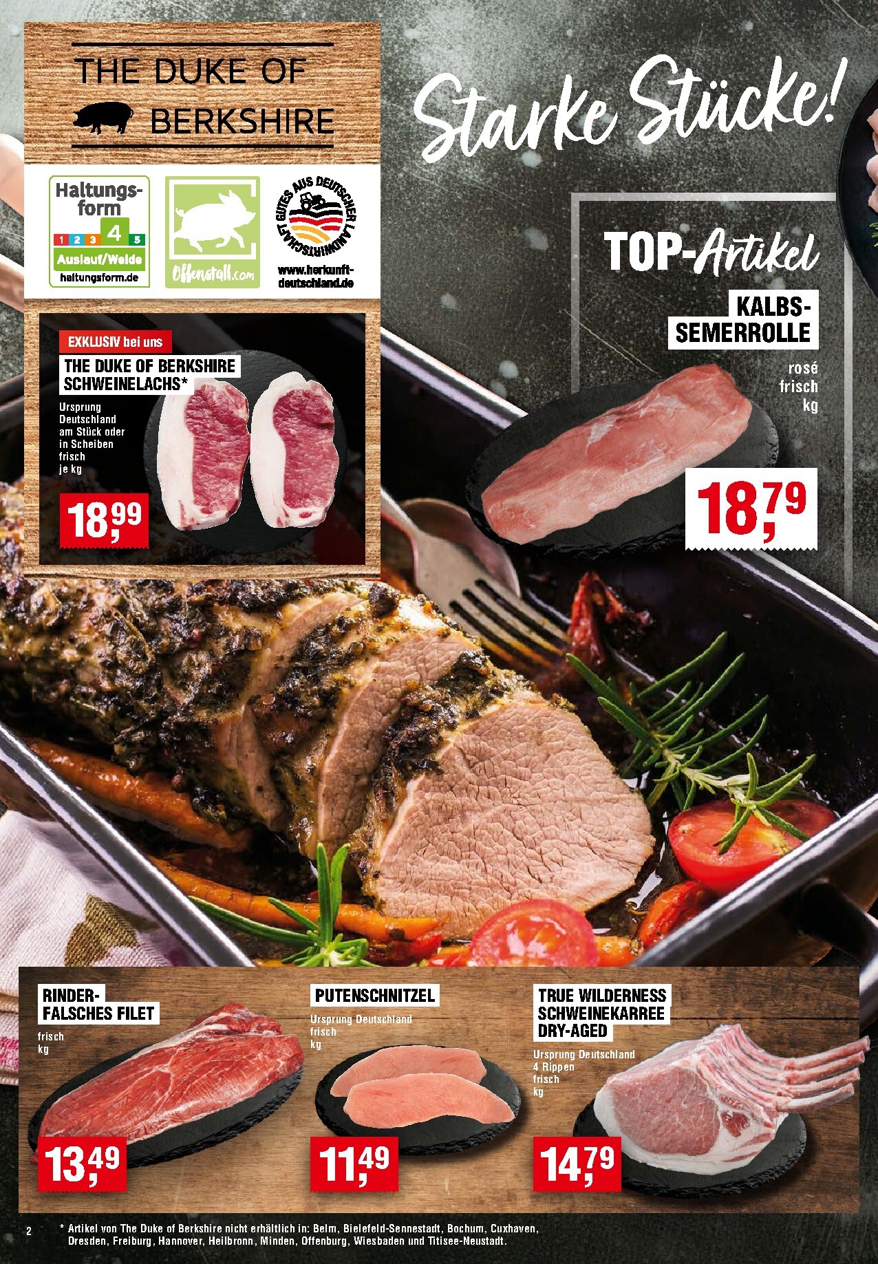 Für alle, die Wert auf erstklassiges Fleisch legen, hält der Handelshof Prospekt 02.04.2026 – 08.04.2026 Angebote nächste Woche wahre Delikatessen bereit. Entdecken Sie den exklusiven Schweinelachs von „The Duke of Berkshire“ für 18,99 Euro pro Kilogramm, der mit Haltungsform 4 für höchste Tierwohlstandards steht. Ebenfalls im Angebot sind die rosé Kalbs-Semerrolle für 18,79 Euro pro Kilogramm und das Rinder-Falsche Filet für 13,49 Euro pro Kilogramm. Diese „Starken Stücke“ sind ideal für ein festliches Essen oder ein besonderes Wochenende und versprechen puren Genuss.