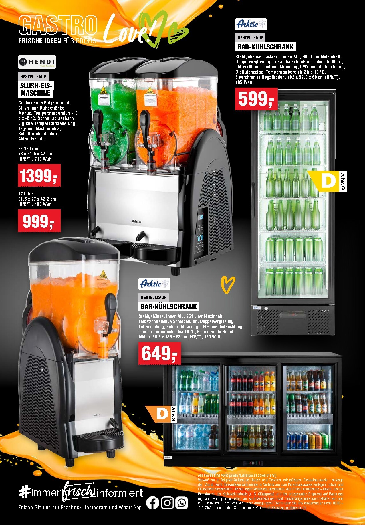 Auch für den gedeckten Tisch und größere Investitionen hält der Prospekt passende Angebote bereit. Die Geschirrserie „Flora“ aus Hotelporzellan ist spülmaschinen- und mikrowellengeeignet und bietet Teller, Tassen und Schüsseln zu äußerst günstigen Preisen, wie zum Beispiel flache Teller ab 2,49 €. Für den großen Bedarf gibt es professionelle Kühltechnik wie die Slush-Eis-Maschine ab 999,00 € oder den Bar-Kühlschrank mit Glastüren für 599,00 €. Entdecken Sie diese und viele weitere Angebote im aktuellen Handelshof Prospekt.