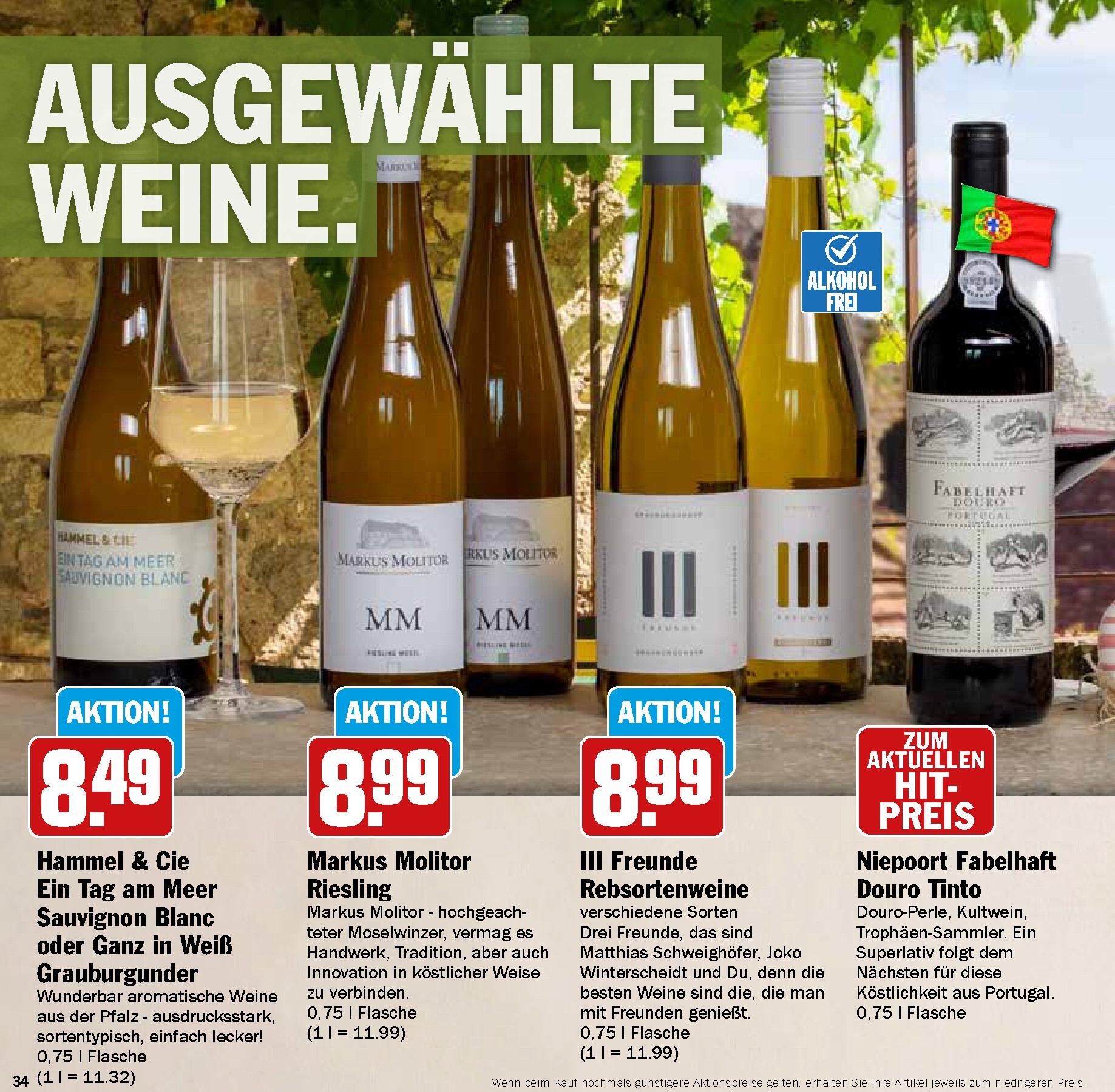 Was wäre ein Festmahl ohne die passende Getränkebegleitung? HIT bietet eine beeindruckende Auswahl an Weinen für jeden Geschmack. Weinliebhaber können sich auf den Weingut Diehl Weißburgunder oder Grauburgunder Cuvée aus der Pfalz für 6,99 € freuen. Für Liebhaber von Roséweinen ist der Listel Grain de Gris Rosé für nur 4,99 € die perfekte Wahl – ein frischer und sanfter Wein für den alltäglichen Genuss. Mit diesen Angeboten stellt der Hit Prospekt 09.03.2026 – 04.04.2026 Angebote nächste Woche sicher, dass Sie für jeden Anlass den richtigen Tropfen finden, um mit Ihren Liebsten anzustoßen und die gemeinsamen Momente zu genießen.