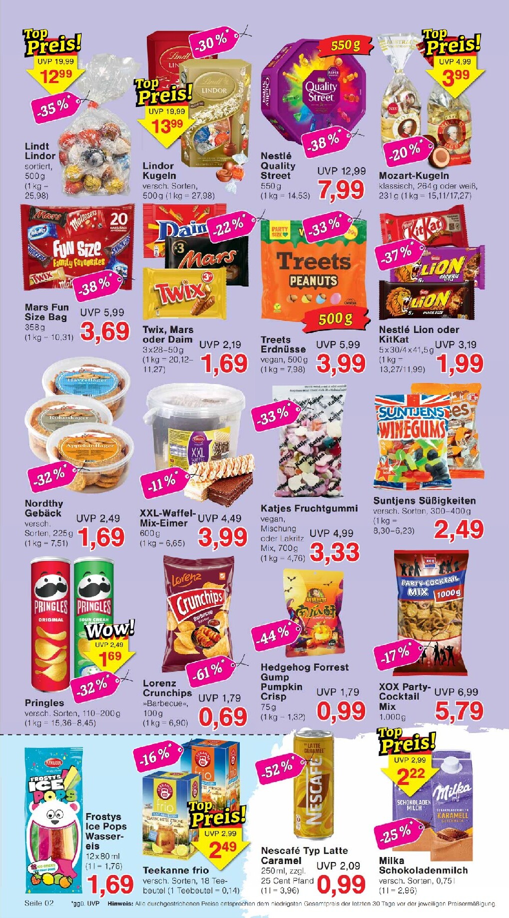 Aber nicht nur Gartenfreunde kommen auf ihre Kosten. Für gemütliche Stunden auf der Terrasse gibt es den beschichteten Stapelstuhl „Milano“ für unschlagbare 9,99 €. Im Inneren des Prospekts warten zudem süße Verführungen: Gönnen Sie sich die 500g-Packung Lindt Lindor Kugeln für 12,99 € oder den Mars Fun Size Bag für nur 3,69 €. Für den herzhaften Snack zwischendurch sind Pringles in verschiedenen Sorten für 1,69 € im Angebot, während die Indo-Asia Bibo-Suppe für nur 3,49 € eine schnelle Mahlzeit verspricht.