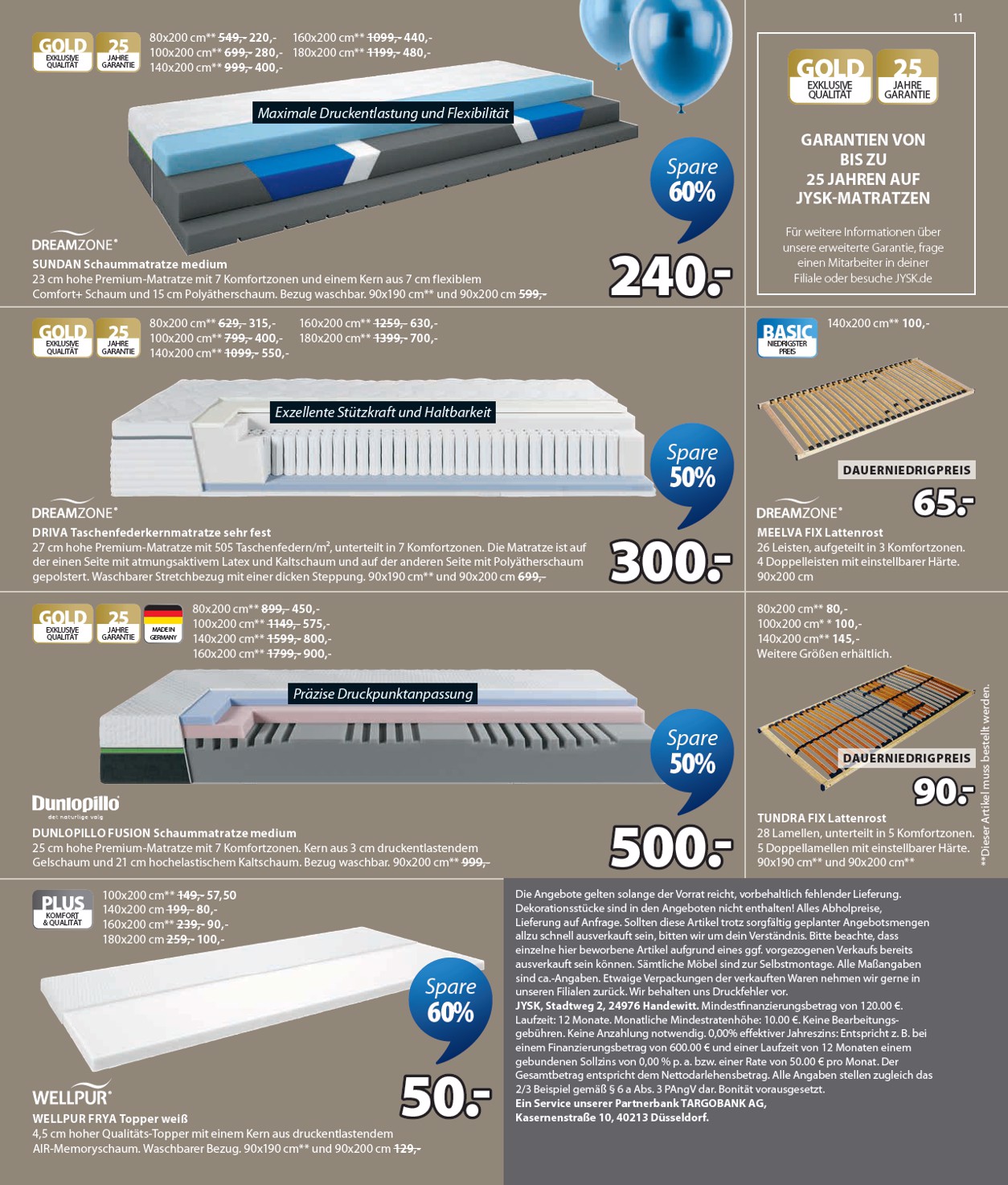 JYSK lädt zur großen Geburtstagsfeier ein und beschenkt seine Kunden mit sensationellen Rabatten von bis zu 60%! Im Mittelpunkt der Feierlichkeiten steht der erholsame Schlaf, und die aktuellen JYSK Prospekt 21.03.2026 – 02.05.2026 Angebote Angebote zum Blättern Angebote machen Träume wahr. Ein absolutes Highlight ist die DREAMZONE SVINNA Schaummatratze, die jetzt für nur 200 € statt 449 € erhältlich ist. Diese hochwertige Matratze mit Gelschaum und 7 Komfortzonen verspricht eine gleichmäßige Verteilung des Körpergewichts und sorgt für eine ungestörte Nachtruhe. Nutzen Sie die Gelegenheit, Ihr Schlafzimmer zu einem unschlagbaren Preis aufzuwerten.