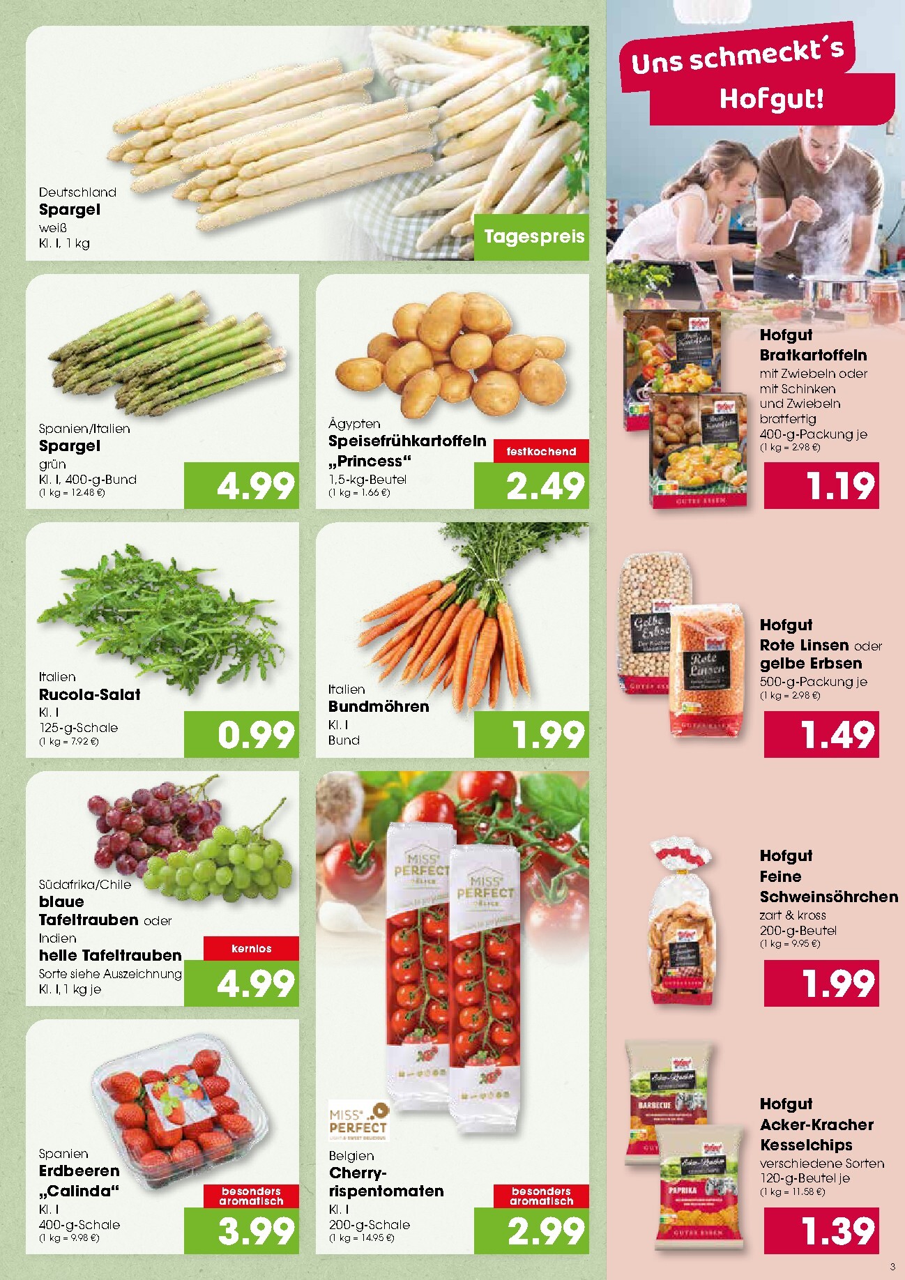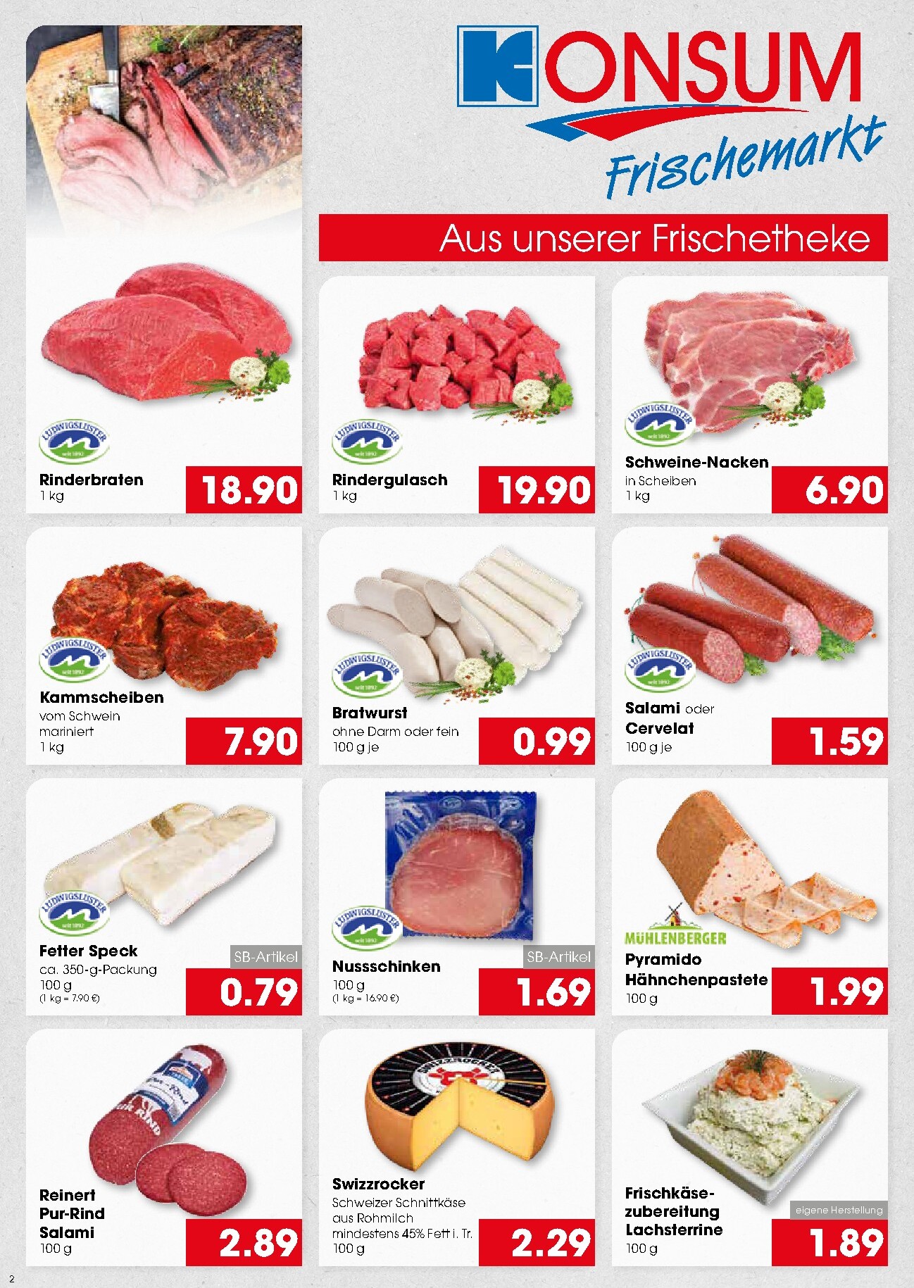 Die Frischetheke beeindruckt mit einer Vielfalt an Qualitätsprodukten. Vom saftigen Rinderbraten für 18,90 €/kg bis zum marinierten Kammscheiben vom Schwein für 7,90 €/kg ist für jeden Geschmack etwas dabei. Auch Wurstliebhaber kommen mit Salami oder Cervelat für 1,59 € je 100g auf ihre Kosten. Die aktuellen Konsum Leipzig Prospekt 30.03.2026 – 04.04.2026 Angebote Angebote zum Blättern präsentieren zudem frisches Saisongemüse wie deutschen Spargel zum Tagespreis oder italienischen grünen Spargel für 4,99 €. Die Miss Perfect Cherry-Rispentomaten runden das Frische-Angebot für 2,99 € ab.