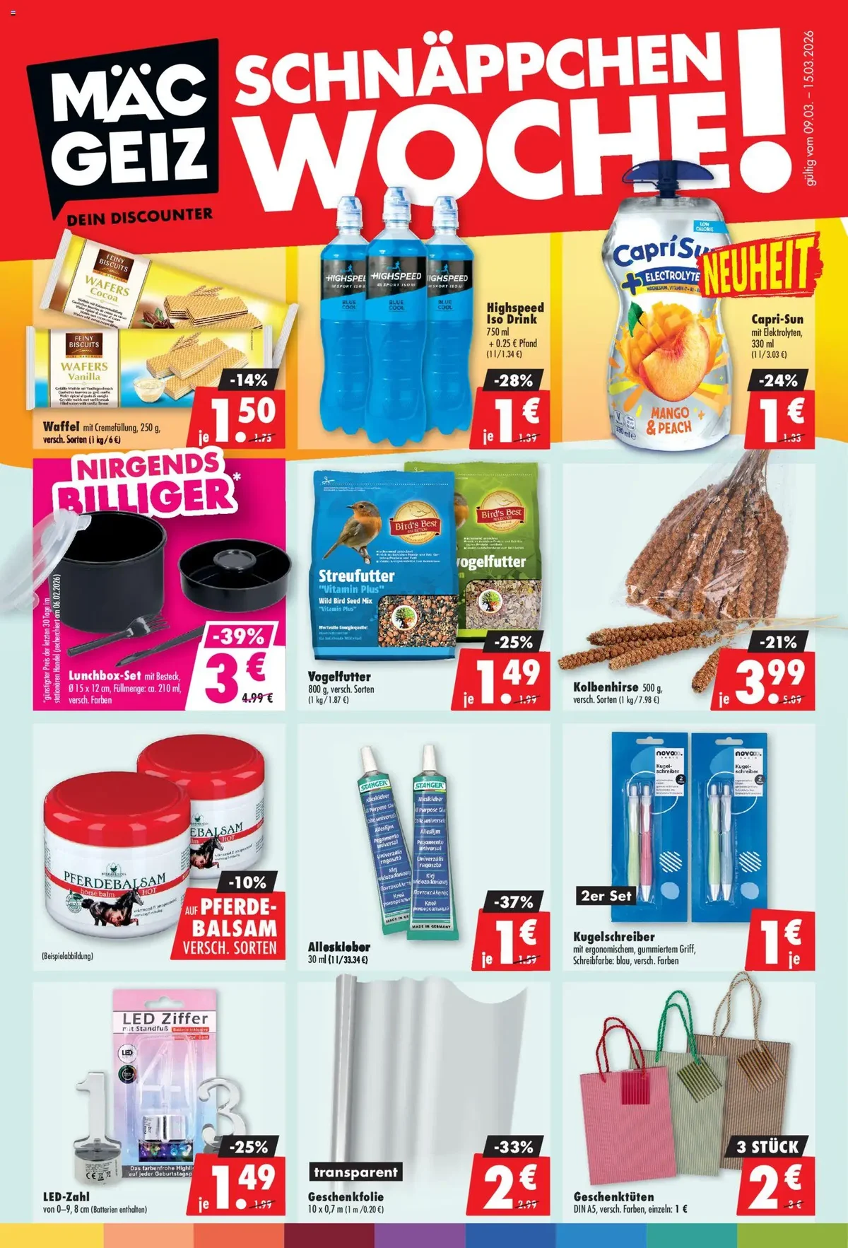 Der neue Mac Geiz Flyer ist da und verspricht ab Montag, dem 09.03.2026, wieder fantastische "Schnäppchen Angebote ab Montag"! Kunden können sich auf eine breite Palette an reduzierten Artikeln freuen, die den Alltag erleichtern und das Portemonnaie schonen. Wer auf der Suche nach tollen Deals ist, sollte den Mac Geiz Prospekt ab 09.03.2026 nicht verpassen. Von Lebensmitteln bis hin zu praktischen Haushaltshelfern – hier ist für jeden etwas dabei.