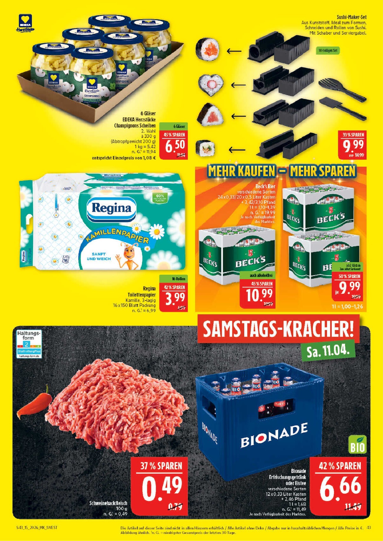 Die Angebotsvielfalt im Lebensmittelbereich ist beeindruckend. Für Pasta-Liebhaber gibt es 10 Packungen EDEKA Herzstück Teigwaren für nur 9,00 €. Ein weiteres Top-Angebot ist die Weihenstephan Haltbare Milch, bei der Sie mit der App für 6 Packungen nur 5,55 € bezahlen. Fleischliebhaber können sich über frischen Schweinenacken für unschlagbare 0,66 € pro 100 g freuen. Für den süßen Genuss zwischendurch ist die Ritter Sport Schokolade in verschiedenen Sorten für nur 0,99 € pro 100-g-Tafel erhältlich. Auch Fitness-Begeisterte kommen auf ihre Kosten: Der ESN Designer Protein Bar ist mit der App für nur 1,79 € zu haben.