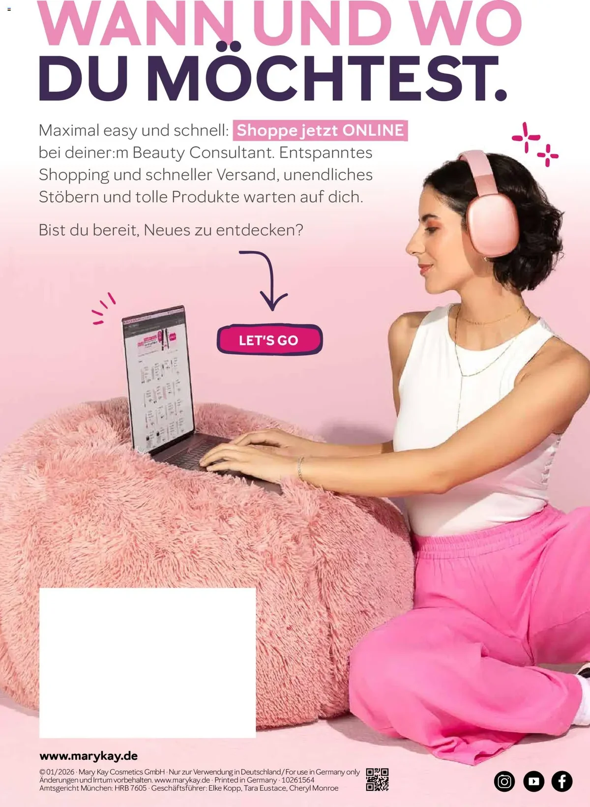 Verpassen Sie nicht die Gelegenheit, den neuen Mary Kay Prospekt ab 15.03.2026 zu durchstöbern und sich von der Qualität und Vielfalt der Mary Kay Produkte begeistern zu lassen. Ob Sie eine neue Pflegeroutine suchen, Ihr Make-up-Repertoire erweitern möchten oder einfach nur Inspiration suchen – dieser Prospekt bietet Ihnen alle Informationen. Bleiben Sie auf dem Laufenden und entdecken Sie alle aktuellen Angebote und Neuheiten.