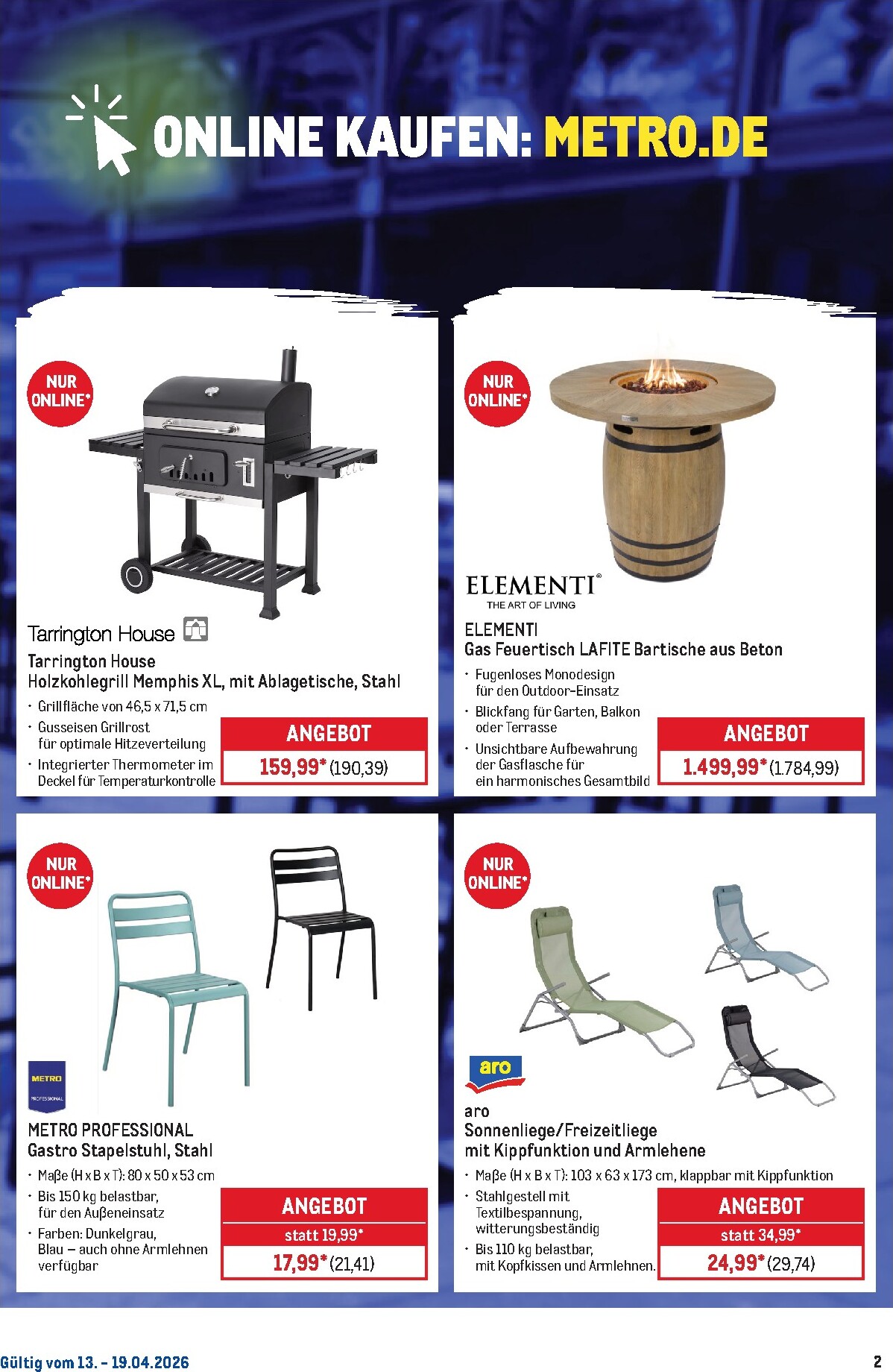 Mit den steigenden Temperaturen rückt auch die Outdoor-Saison in den Fokus. METRO bietet fantastische Online-Angebote, um Ihren Garten, Balkon oder Ihre Terrasse in eine Wohlfühloase zu verwandeln. Der Metro Prospekt 13.04.2026 – 19.04.2026 Angebote Angebote zum Blättern präsentiert Highlights für unvergessliche Momente im Freien. Ein absolutes Muss für jeden Grillmeister ist der Tarrington House Holzkohlegrill Memphis XL für nur 159,99 € (netto). Mit seiner großen Grillfläche, dem Gusseisen-Grillrost und dem integrierten Thermometer gelingen perfekte Grillergebnisse. Dieses Angebot ist ideal, um sich auf lange Sommerabende mit Freunden und Familie vorzubereiten und köstliche Gerichte unter freiem Himmel zu genießen.