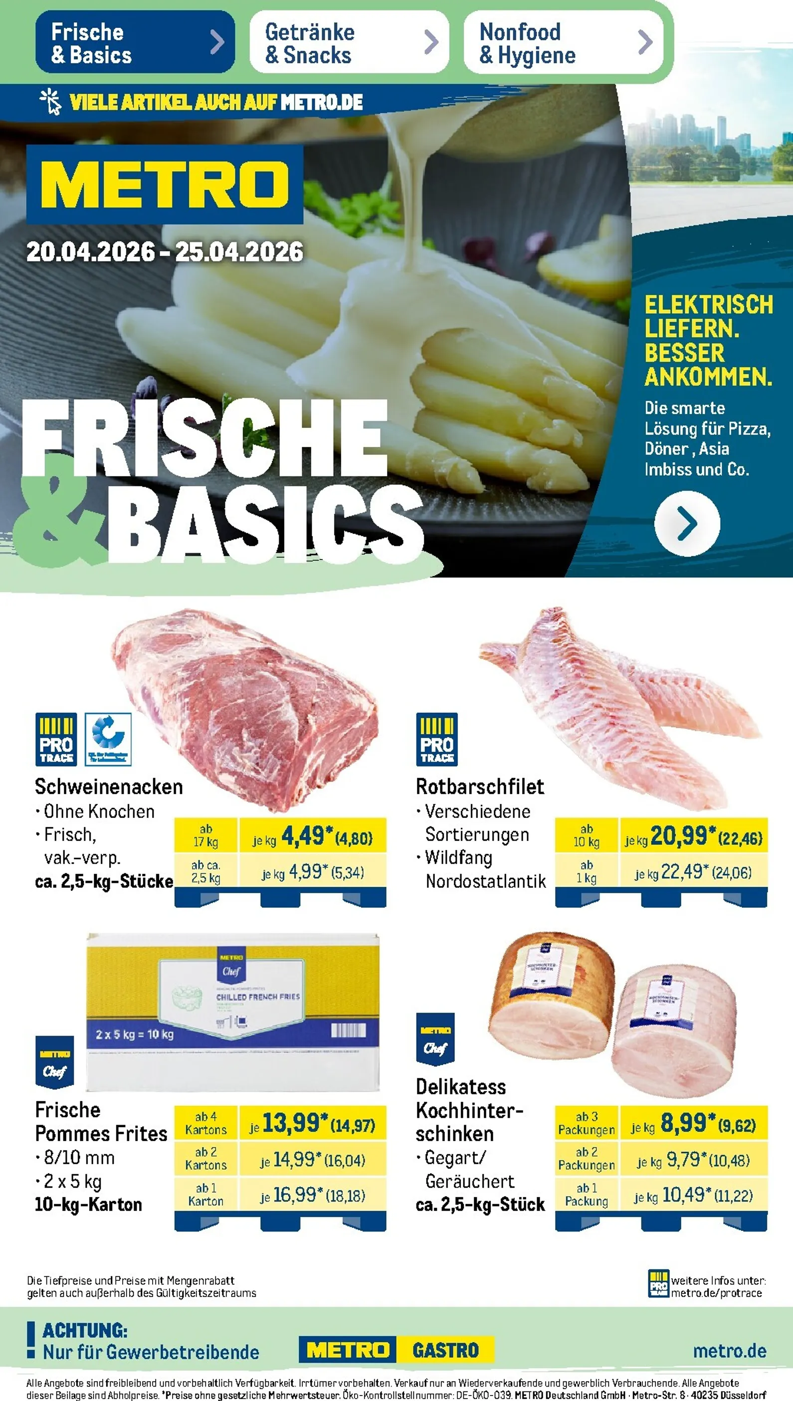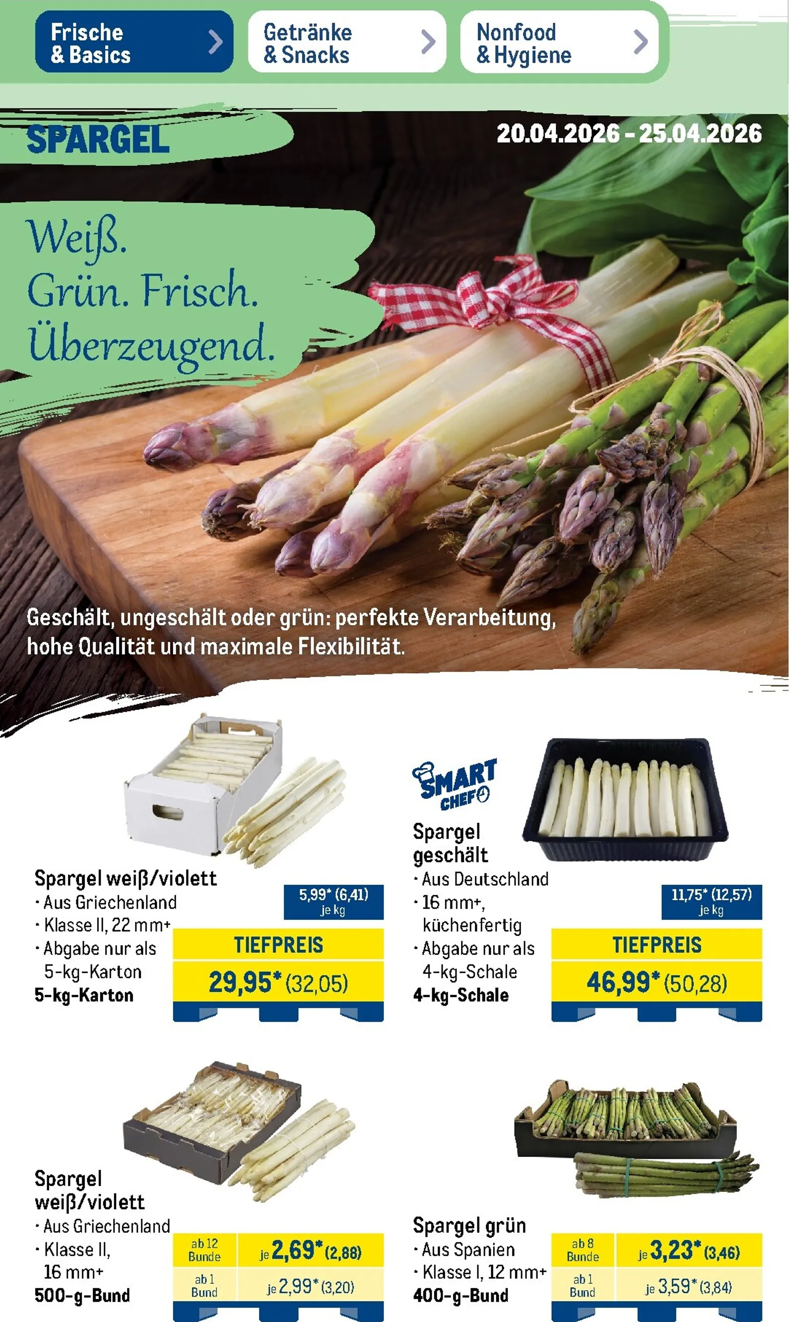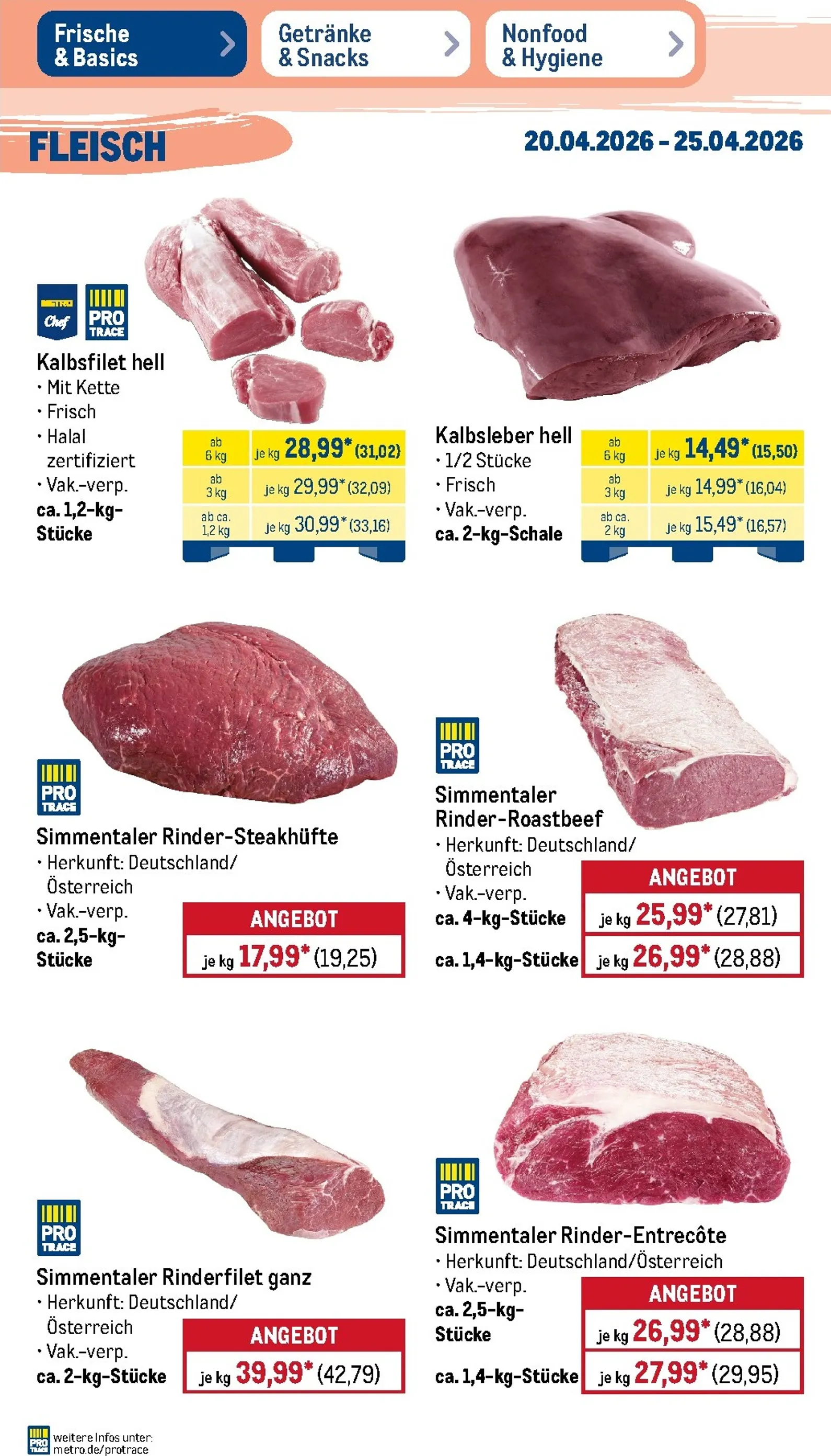 Abgerundet wird die exzellente Auswahl durch feines Kalbsfilet und frische Kalbsleber, beide auch Halal-zertifiziert. Diese Produkte eignen sich ideal für die gehobene Gastronomie. Die aktuellen Angebote stellen sicher, dass für jeden Betrieb das Passende dabei ist. Schauen Sie sich den vollständigen Metro Prospekt ab 20.04.2026 an, um alle Aktionen zu entdecken. Den neuesten Metro Prospekt finden Sie immer online, um keine Spargelegenheit zu verpassen.