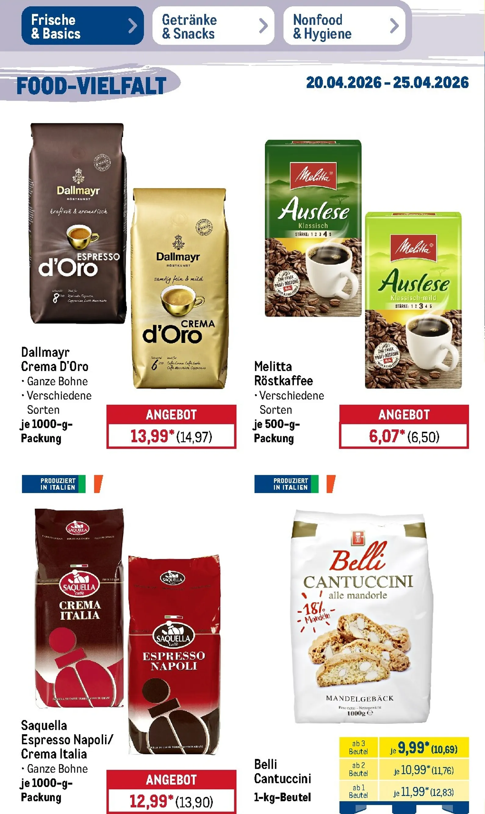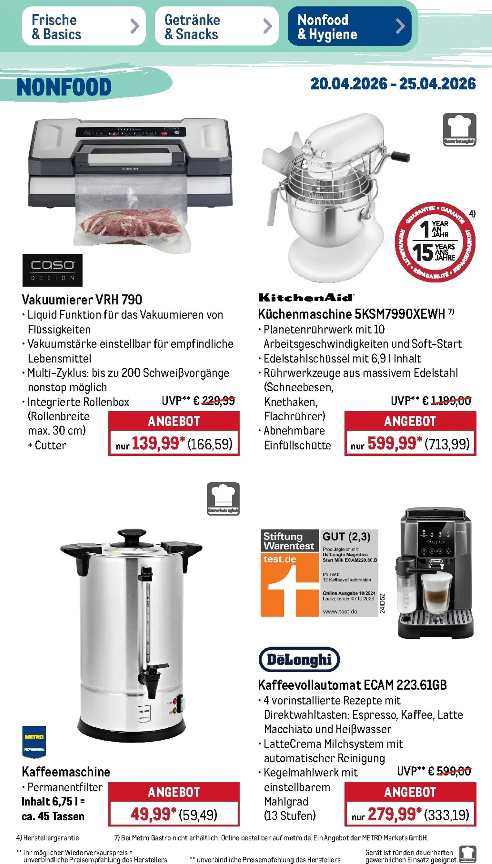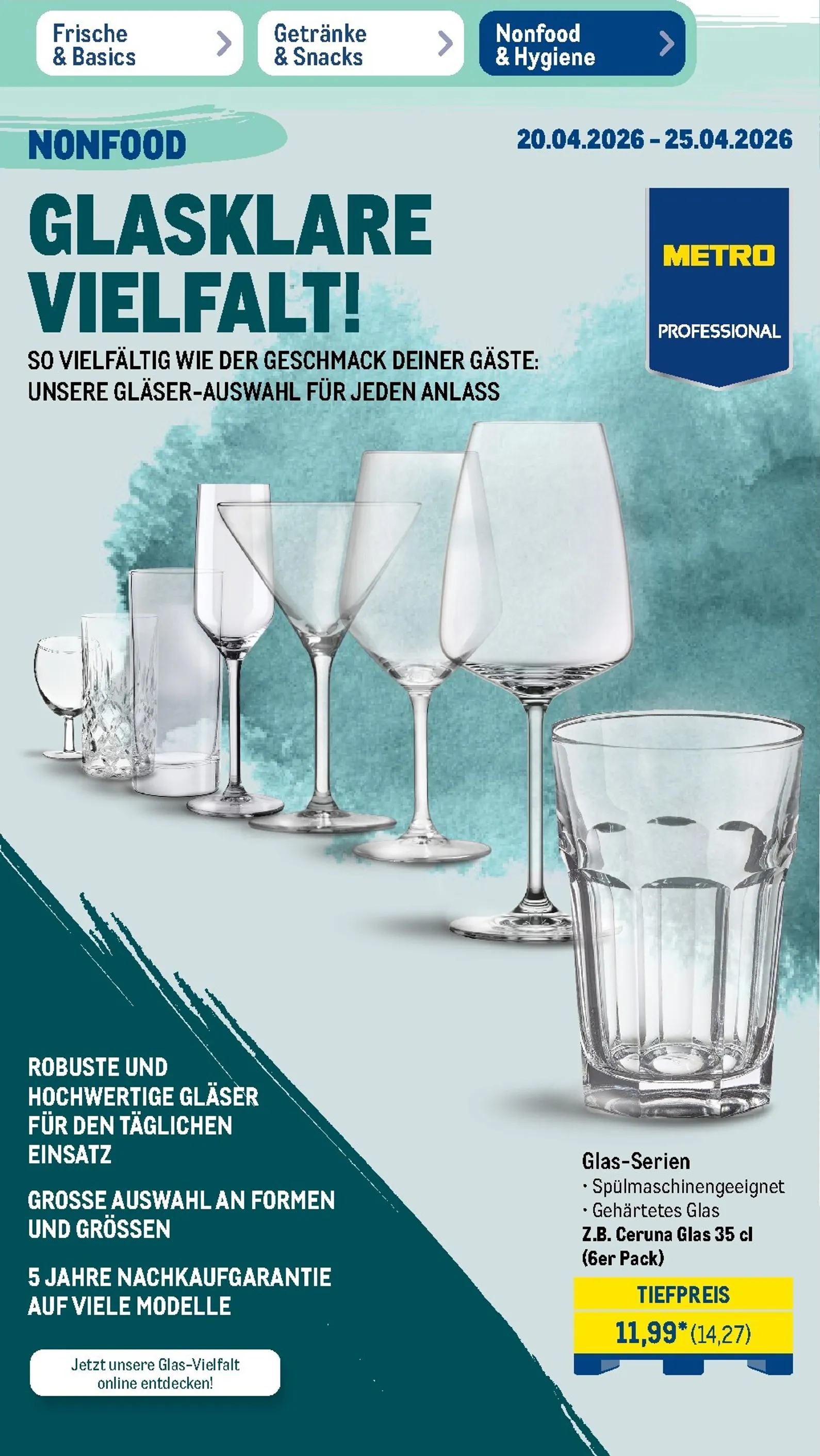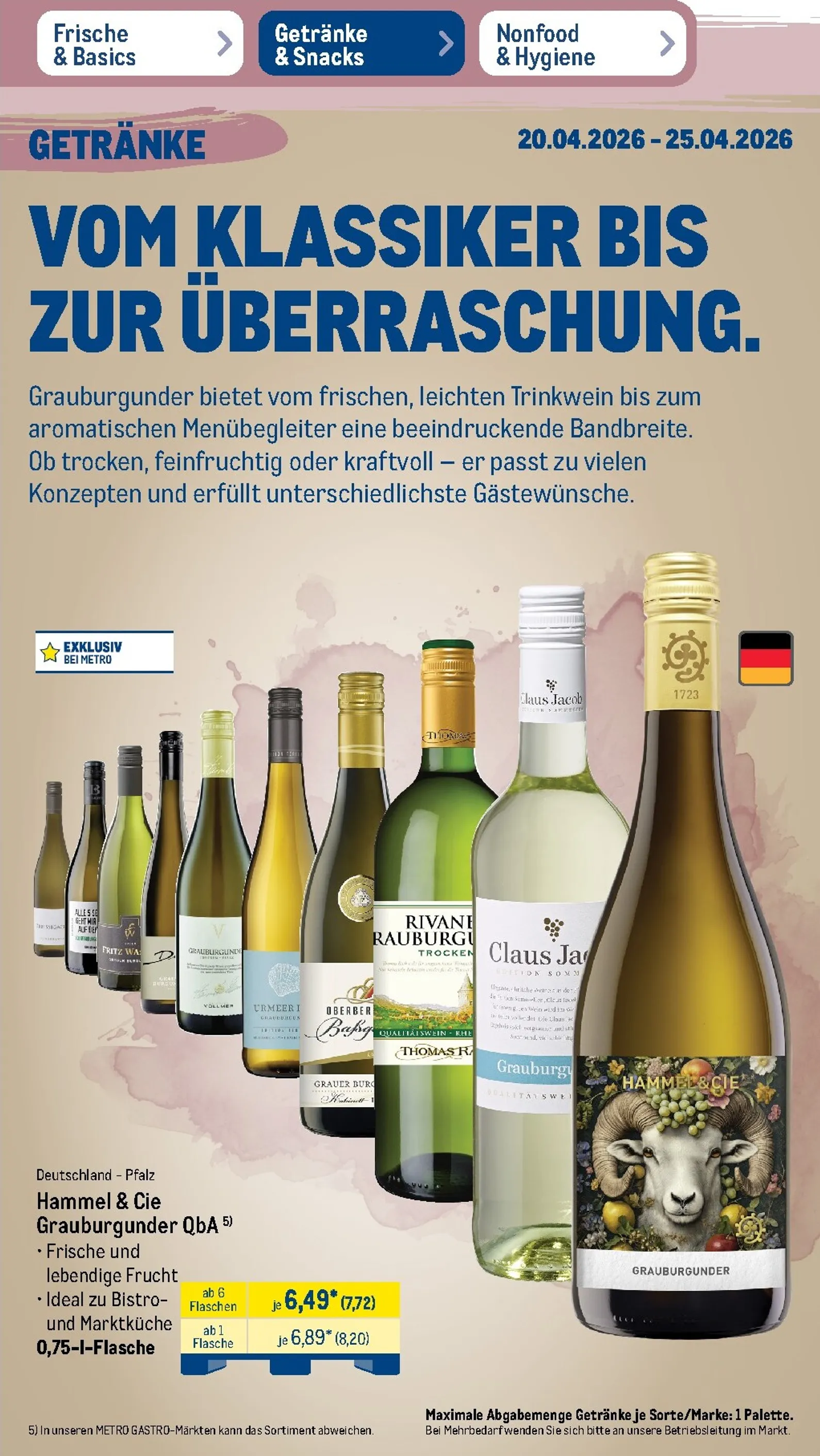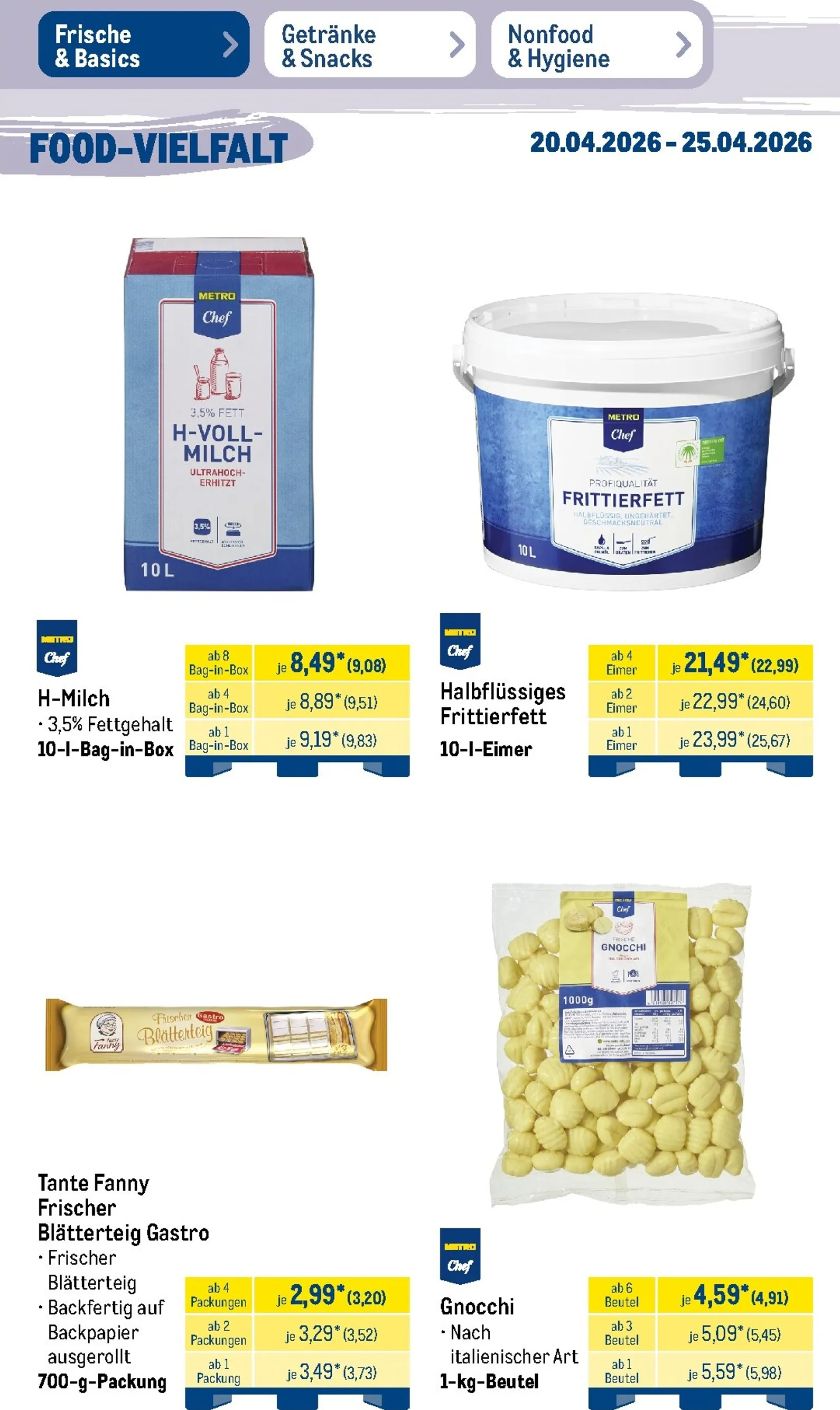 Vom 20. bis 25. April 2026 startet Metro mit dem Motto „Frische & Basics“ in die neue Saison. Diese Angebote sind perfekt für Gastronomen, die ihre Terrassen für den Frühling vorbereiten. Die Auswahl in dieser Woche ist ideal, um die Speisekarte mit saisonalen Highlights zu füllen. Nutzen Sie den aktuellen Metro Prospekt ab 20.04.2026 für Ihren Einkauf und profitieren Sie von erstklassiger Qualität zu professionellen Preisen.