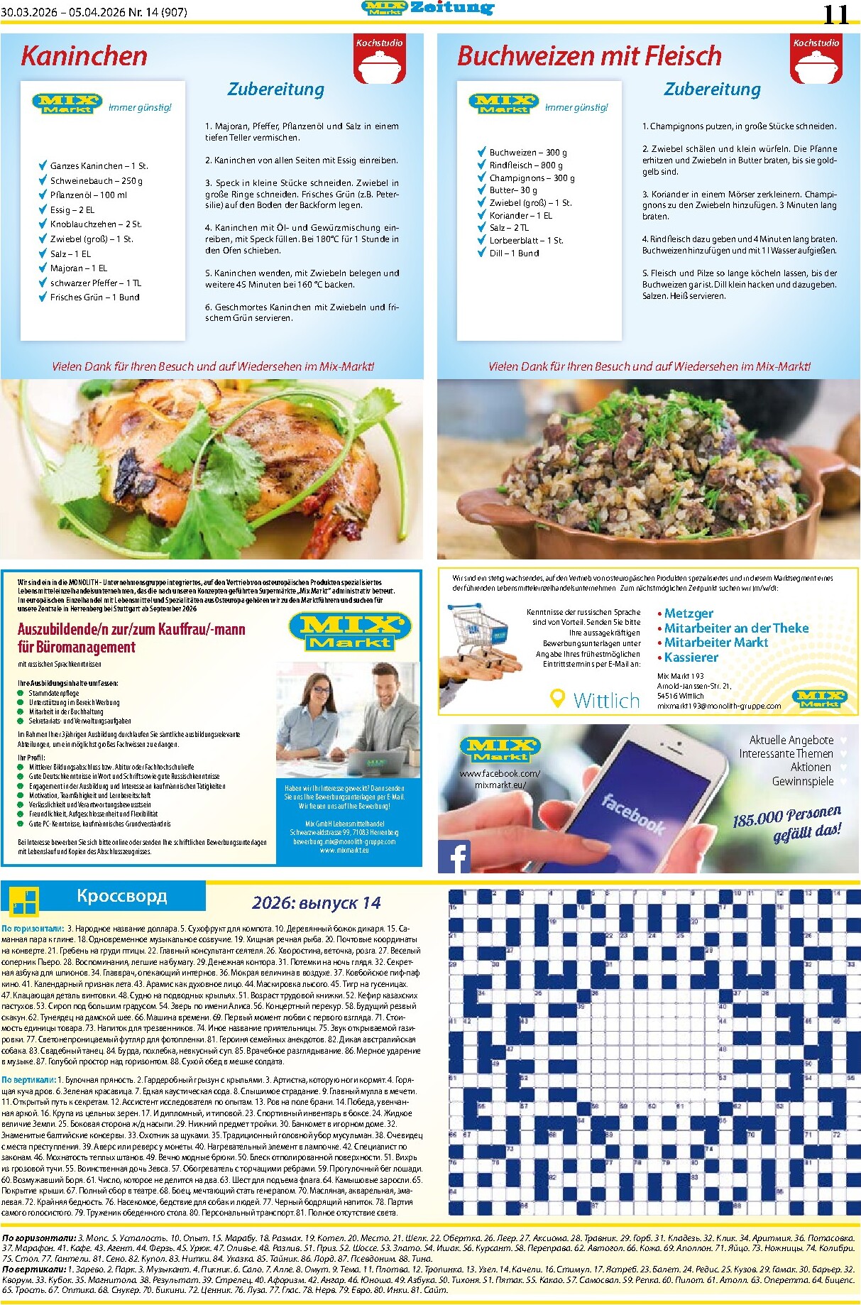 Der Frühling ist da und mit ihm die festliche Osterzeit! Mix Markt läutet die Feiertage mit einer Fülle an unwiderstehlichen Angeboten ein, gültig vom 30. März bis zum 5. April 2026. Bereiten Sie sich auf ein unvergessliches Osterfest vor und entdecken Sie die kulinarischen Schätze dieser Woche. Im aktuellen Mix Markt Prospekt 30.03.2026 – 05.04.2026 zum Blättern Online Online finden Sie alles, was das Herz begehrt, um traditionelle Ostergerichte zu zaubern. Ein Highlight ist die Gebäckmischung „Jubilejnoe“ zum Osterfest in der 1-kg-Packung für nur 4,89 €, perfekt für die Kaffeetafel. Der traditionelle Hefezopf „Paska“ für 2,99 € darf ebenfalls nicht fehlen.